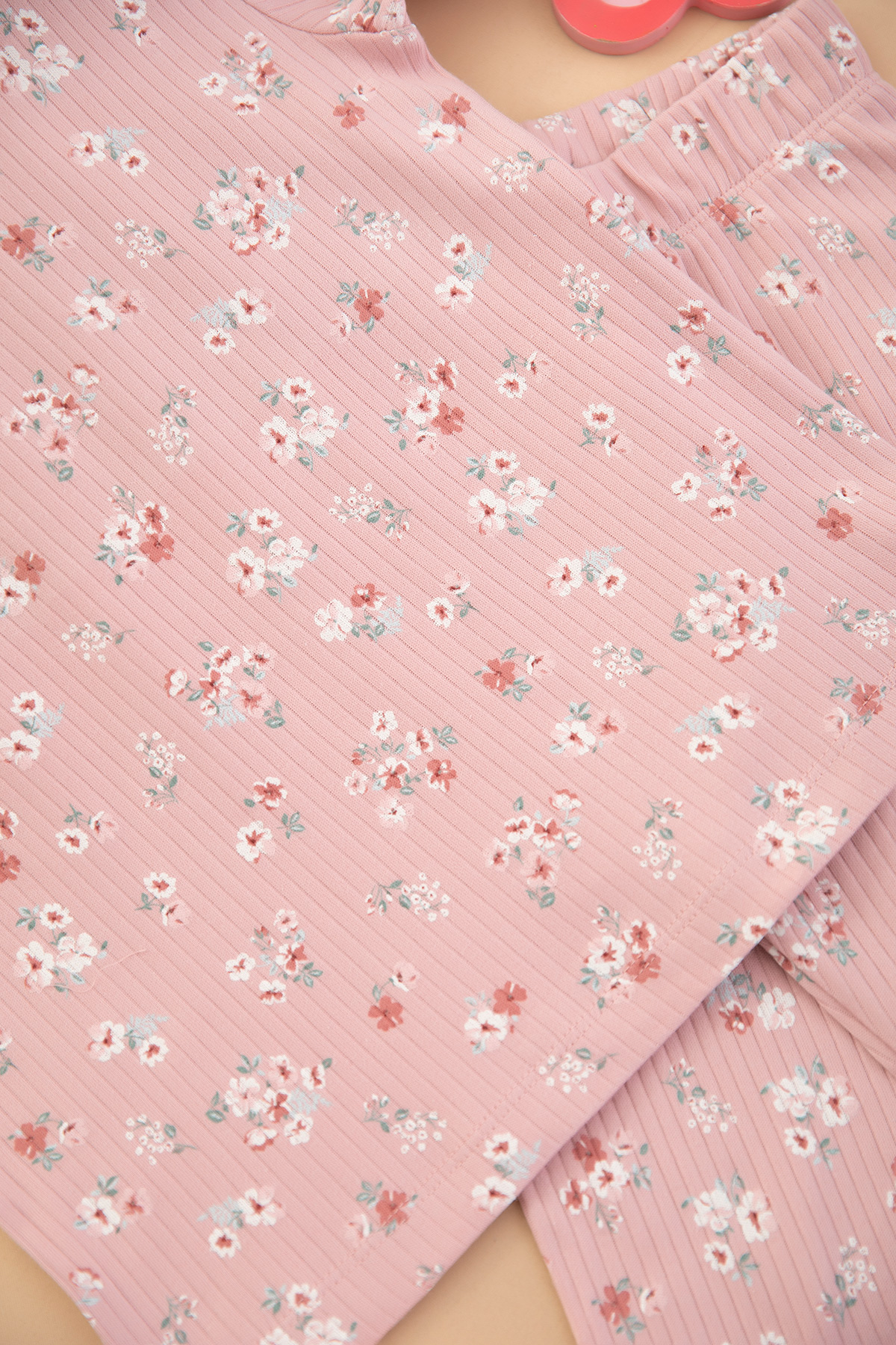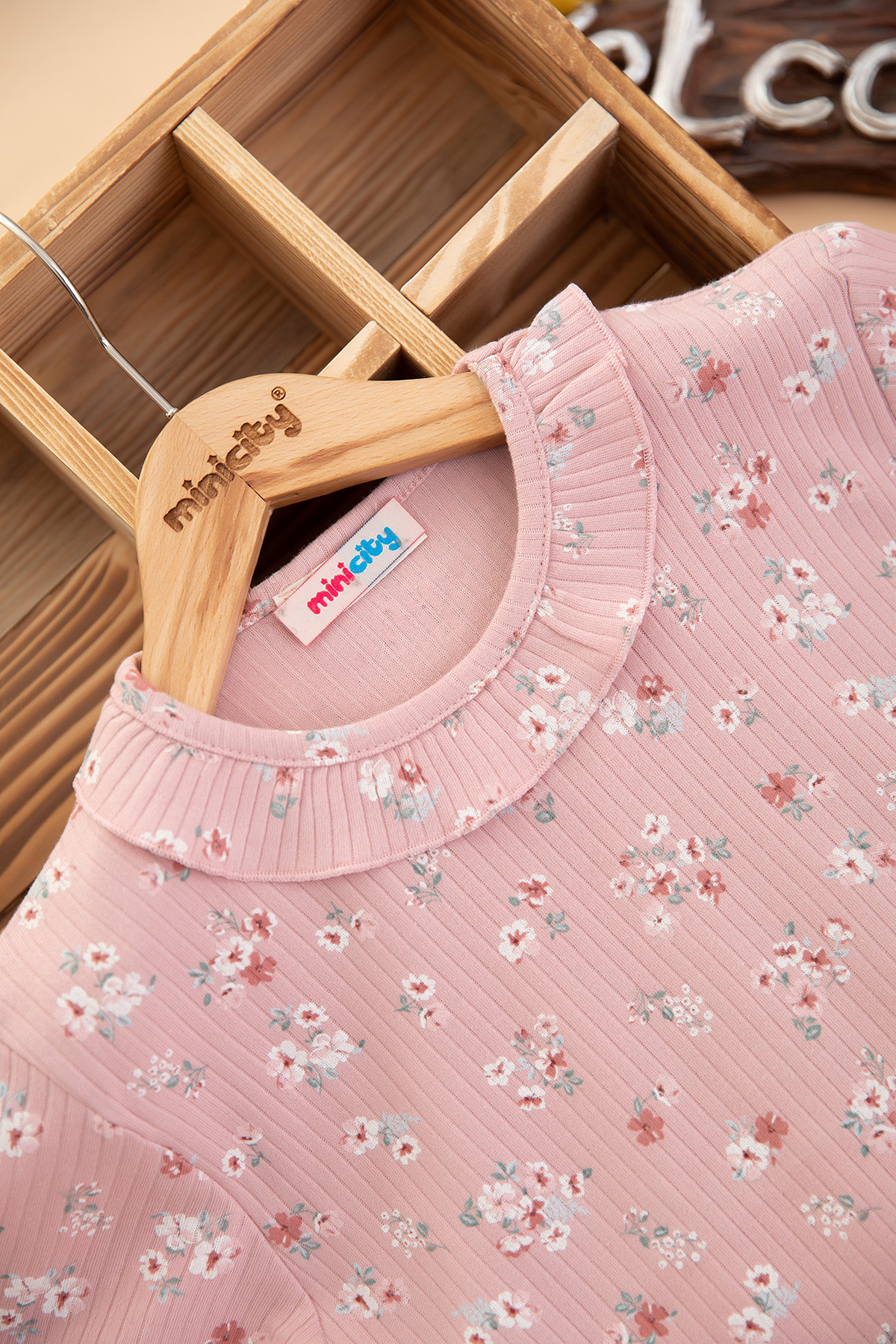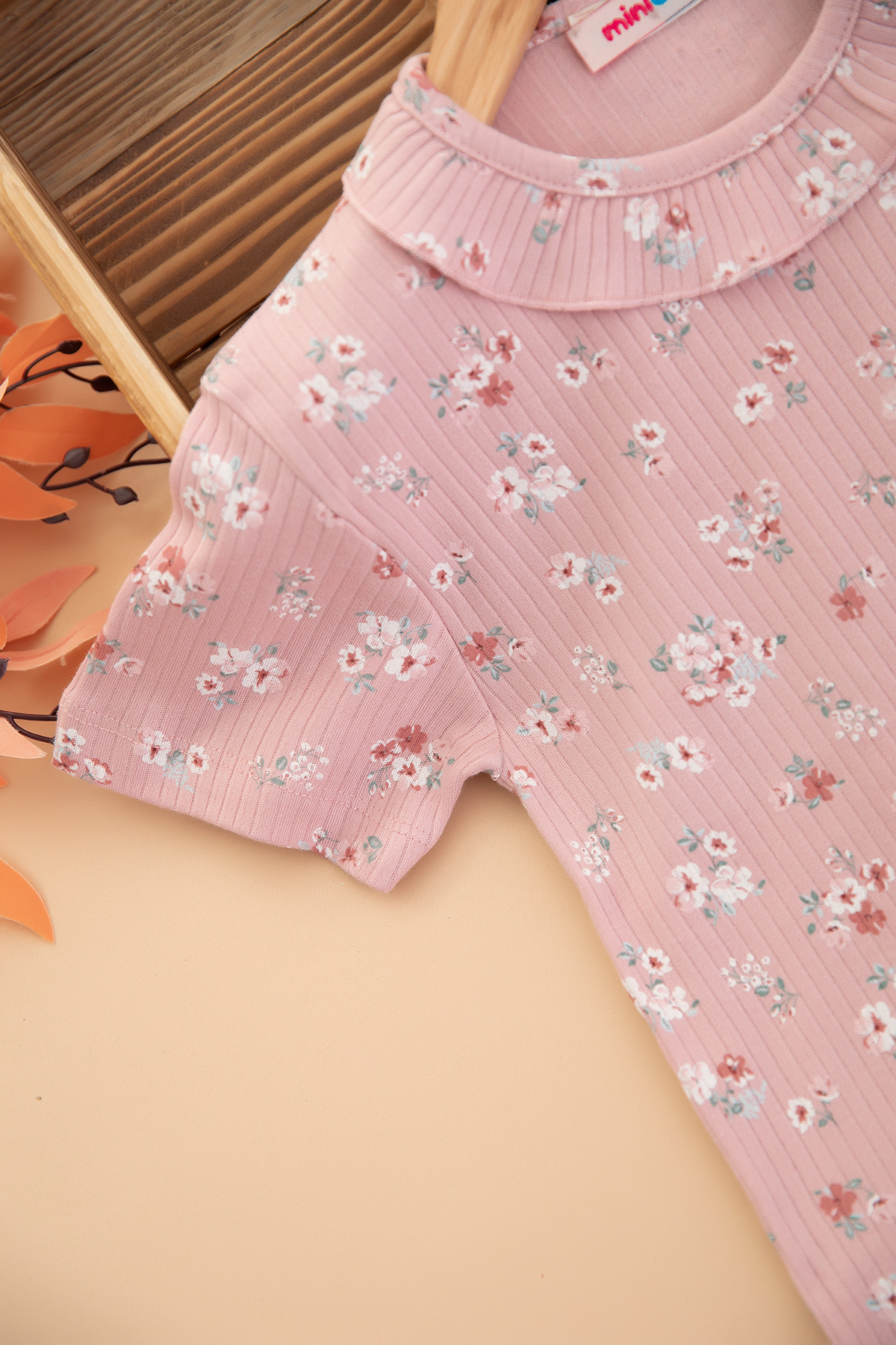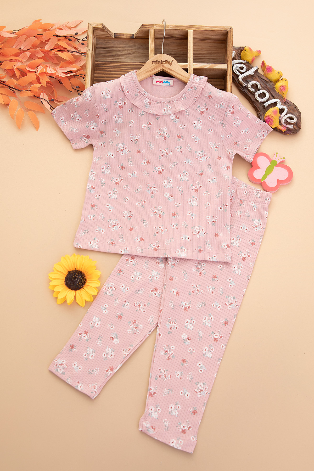 Kız Çocuk Çiçekli Yaka Fırfırlı Takım - 21212 (4-12 Yaş)
