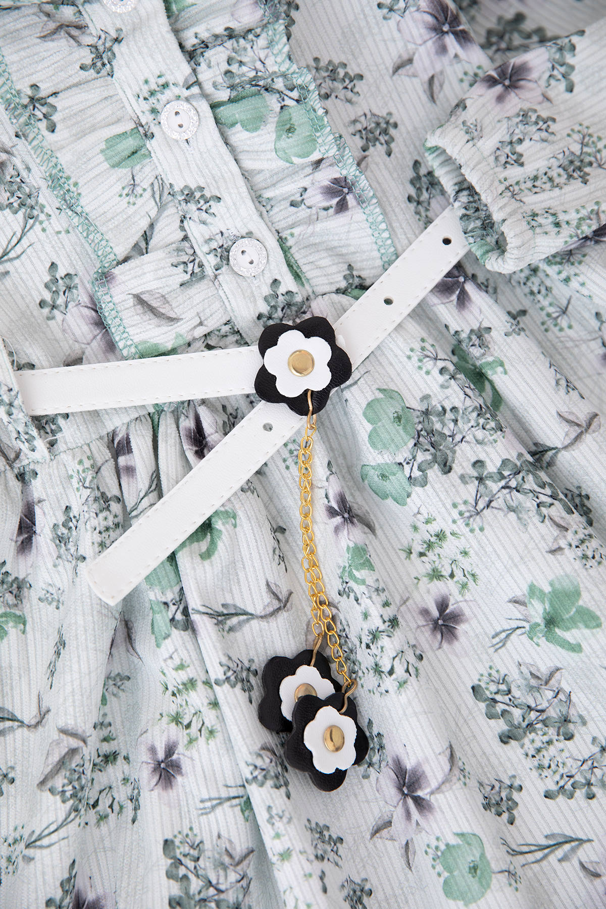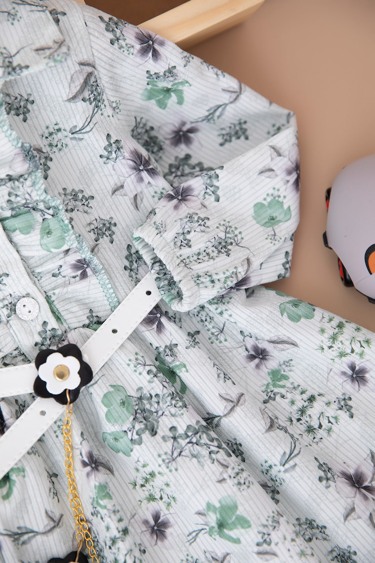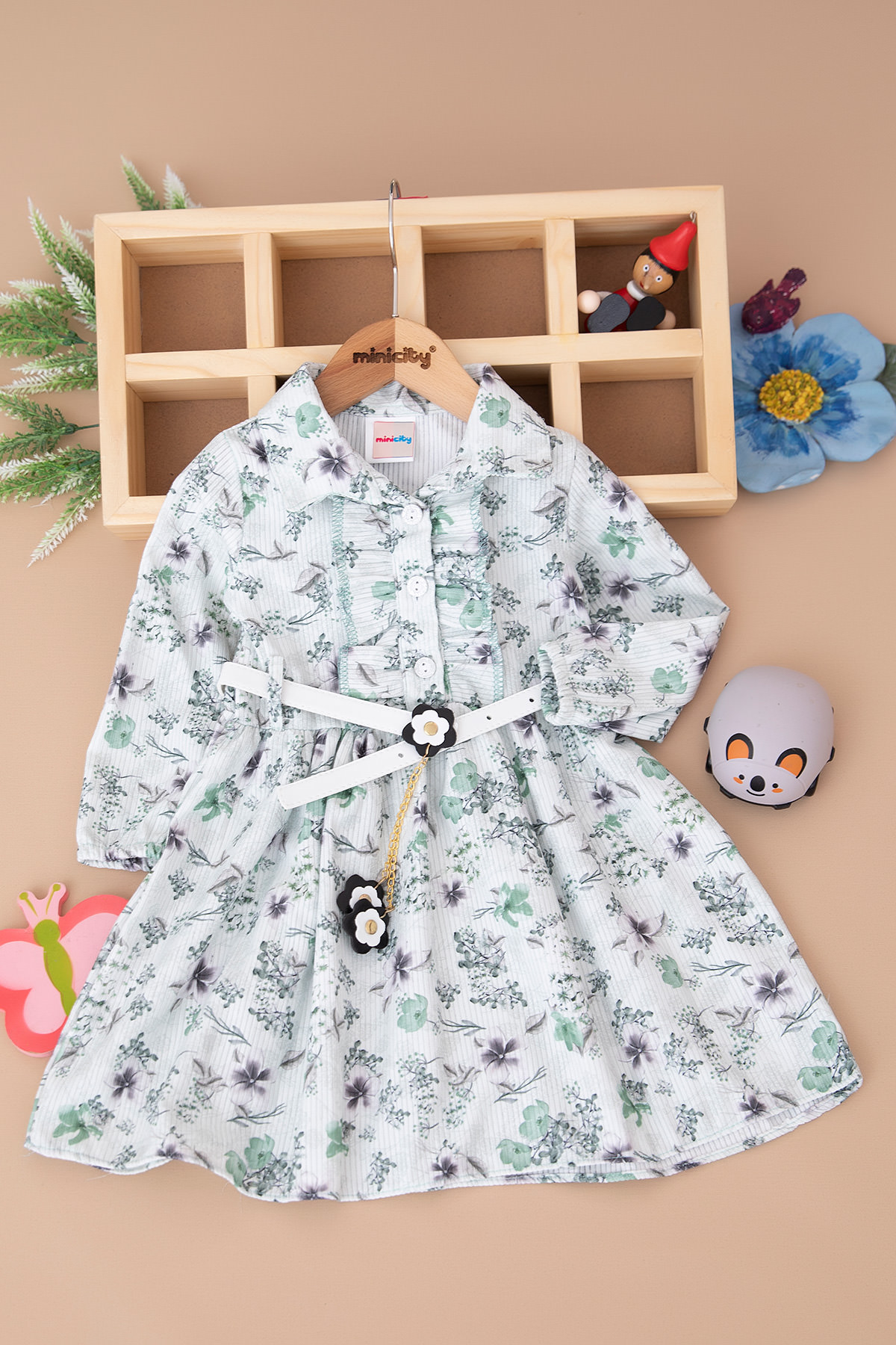 Kız Çocuk Çiçekli Yakalı Elbise - 402 (1-3 Yaş)