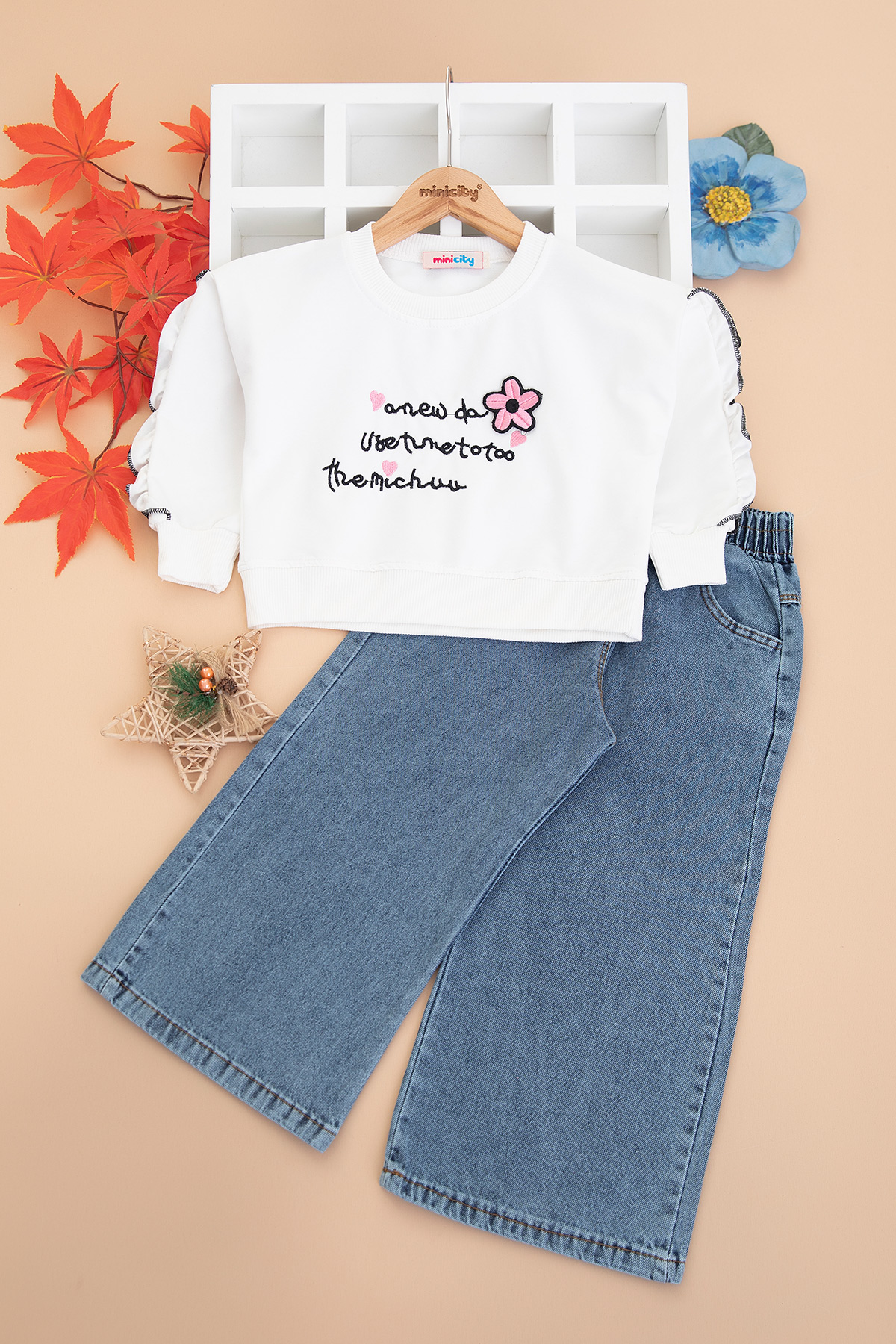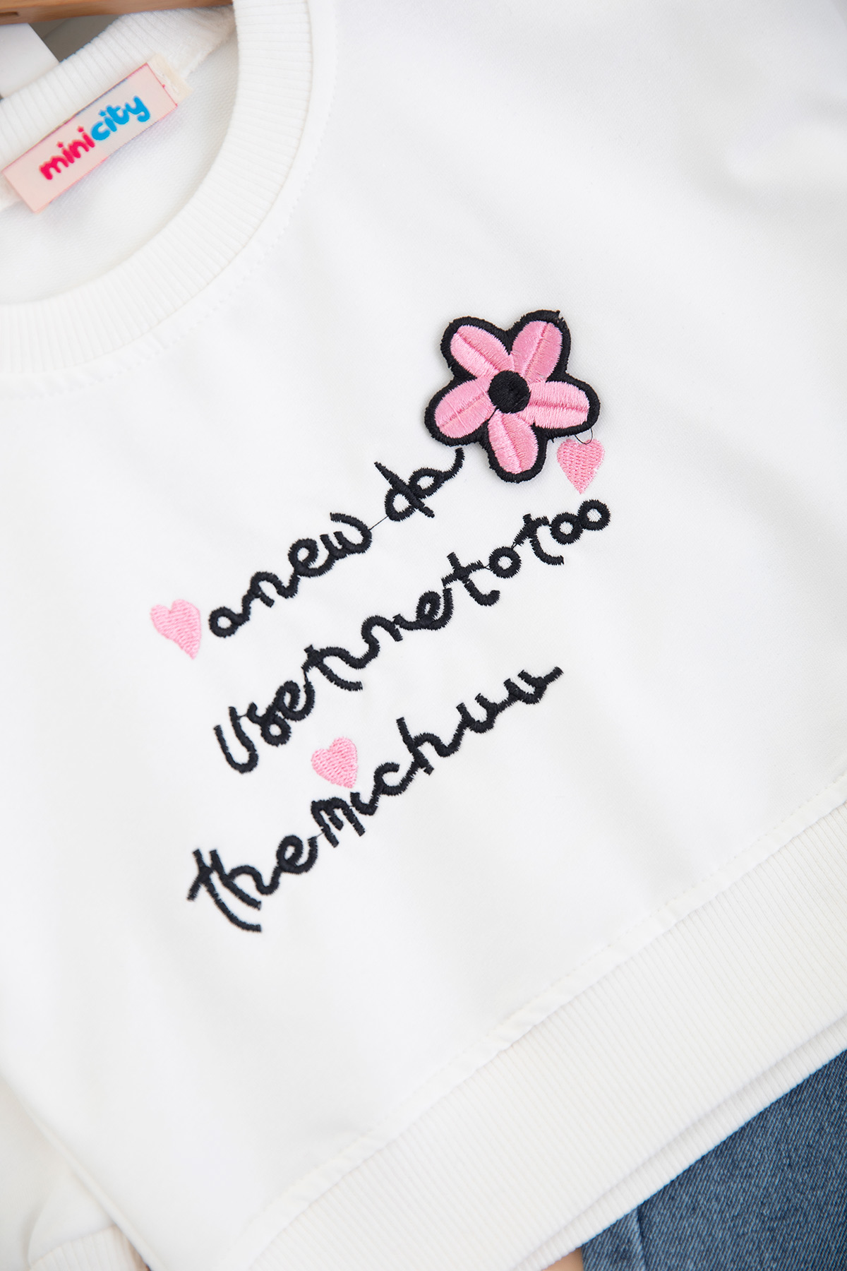 Kız Çocuk Çiçekli Yazı Nakışlı Pantolon Takım - 2702 (3-7 Yaş)