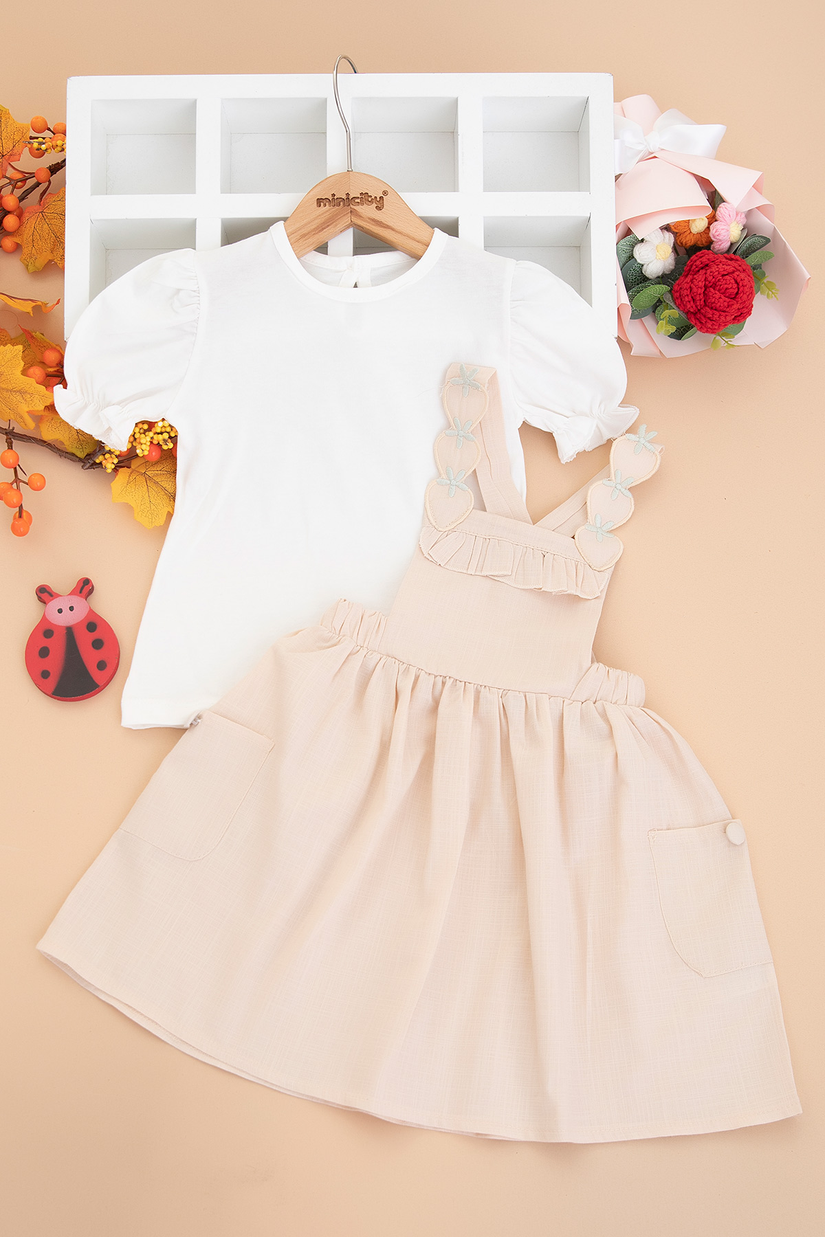Kız Çocuk Çilek Askılı Keten Salopet - 5164 (2-5 Yaş)