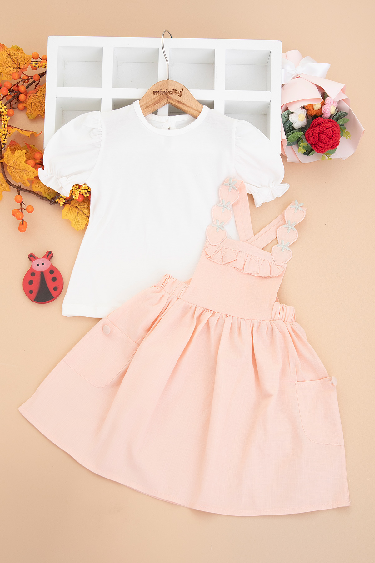 Kız Çocuk Çilek Askılı Keten Salopet - 5164 (2-5 Yaş)