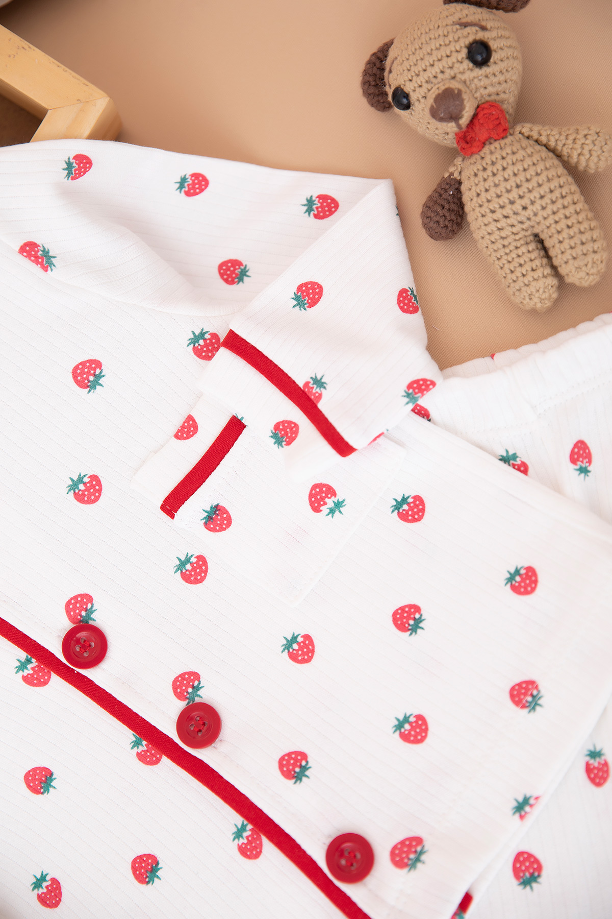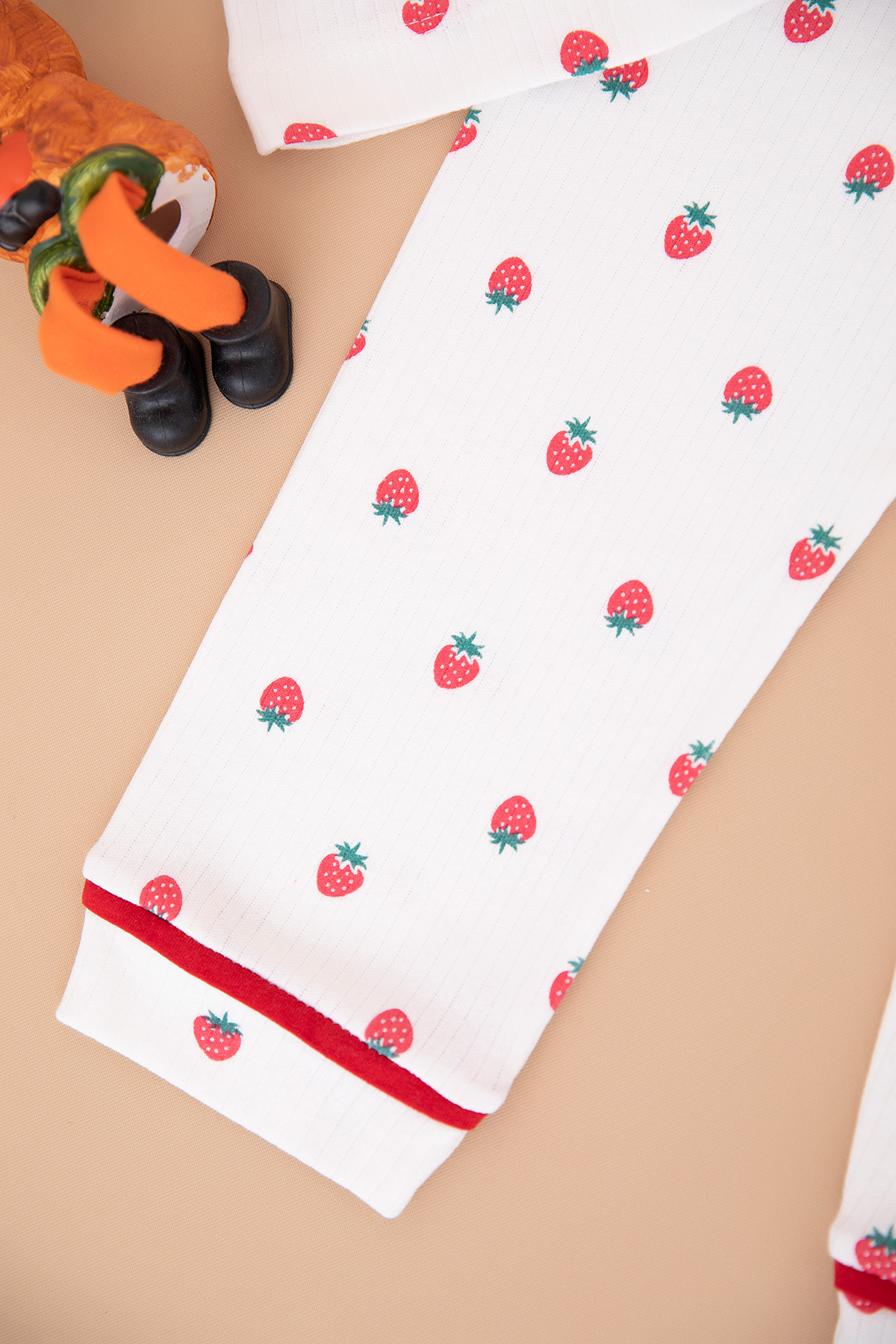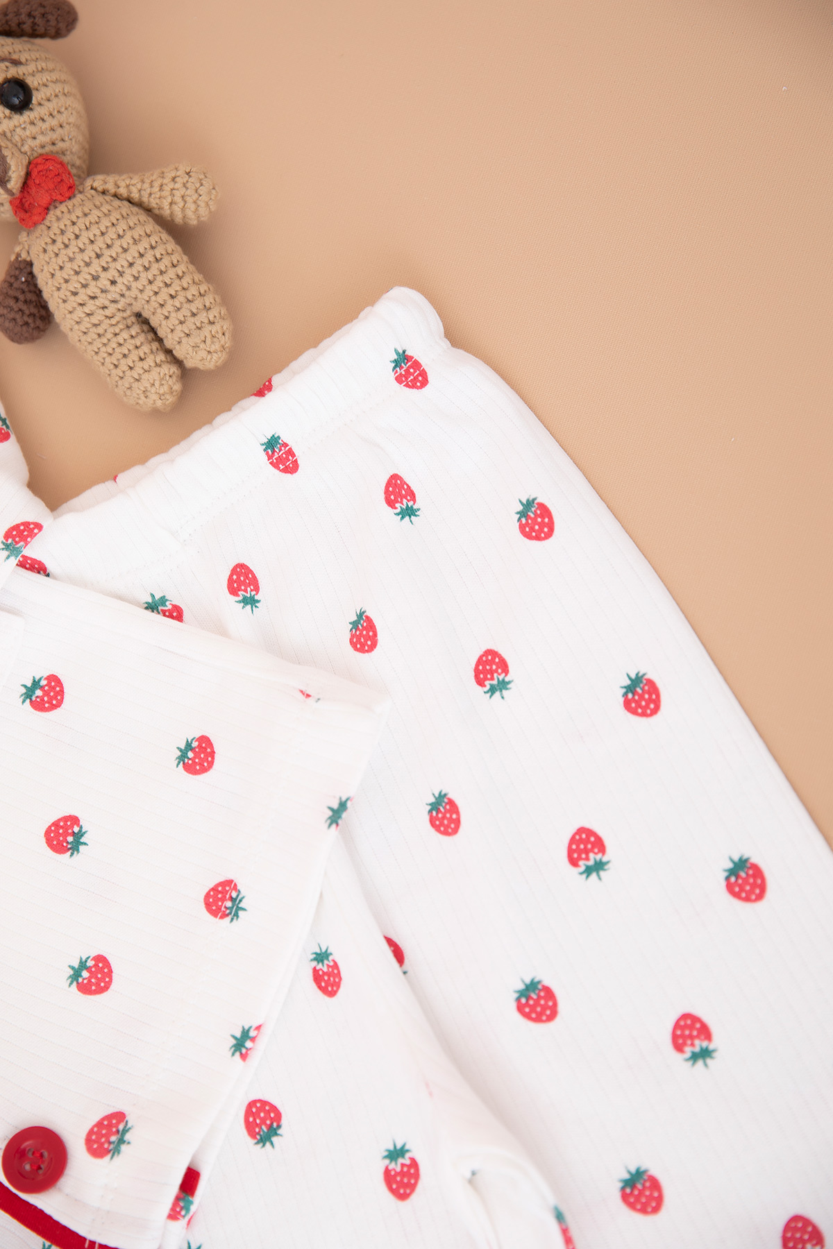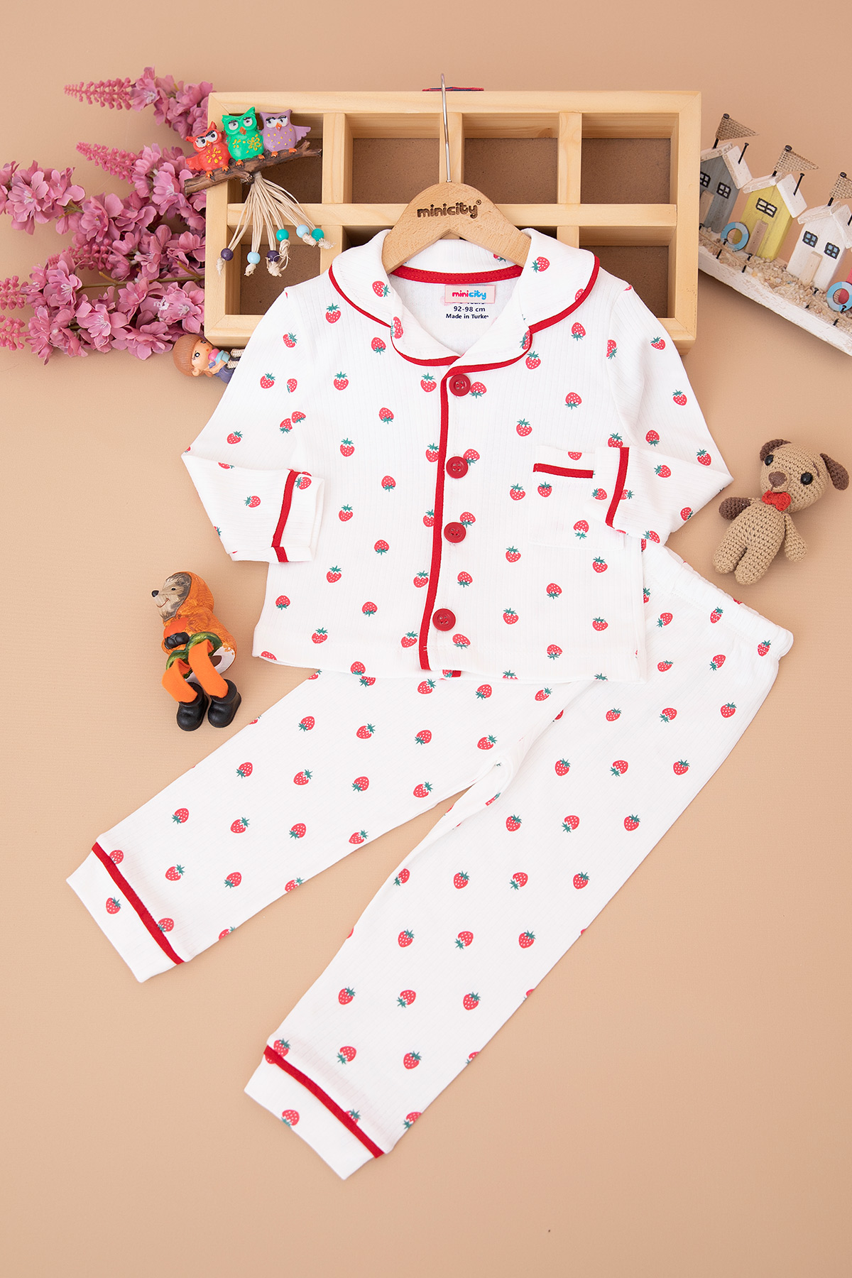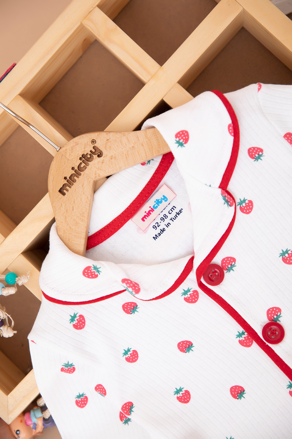 Kız Çocuk Çilek Baskılı Pijama Takımı - 068 (3-6 Yaş)