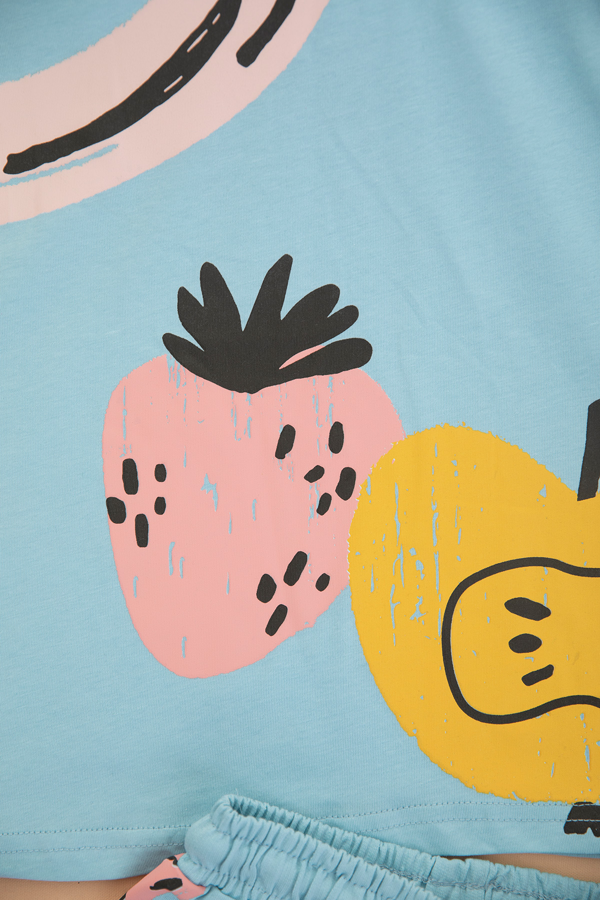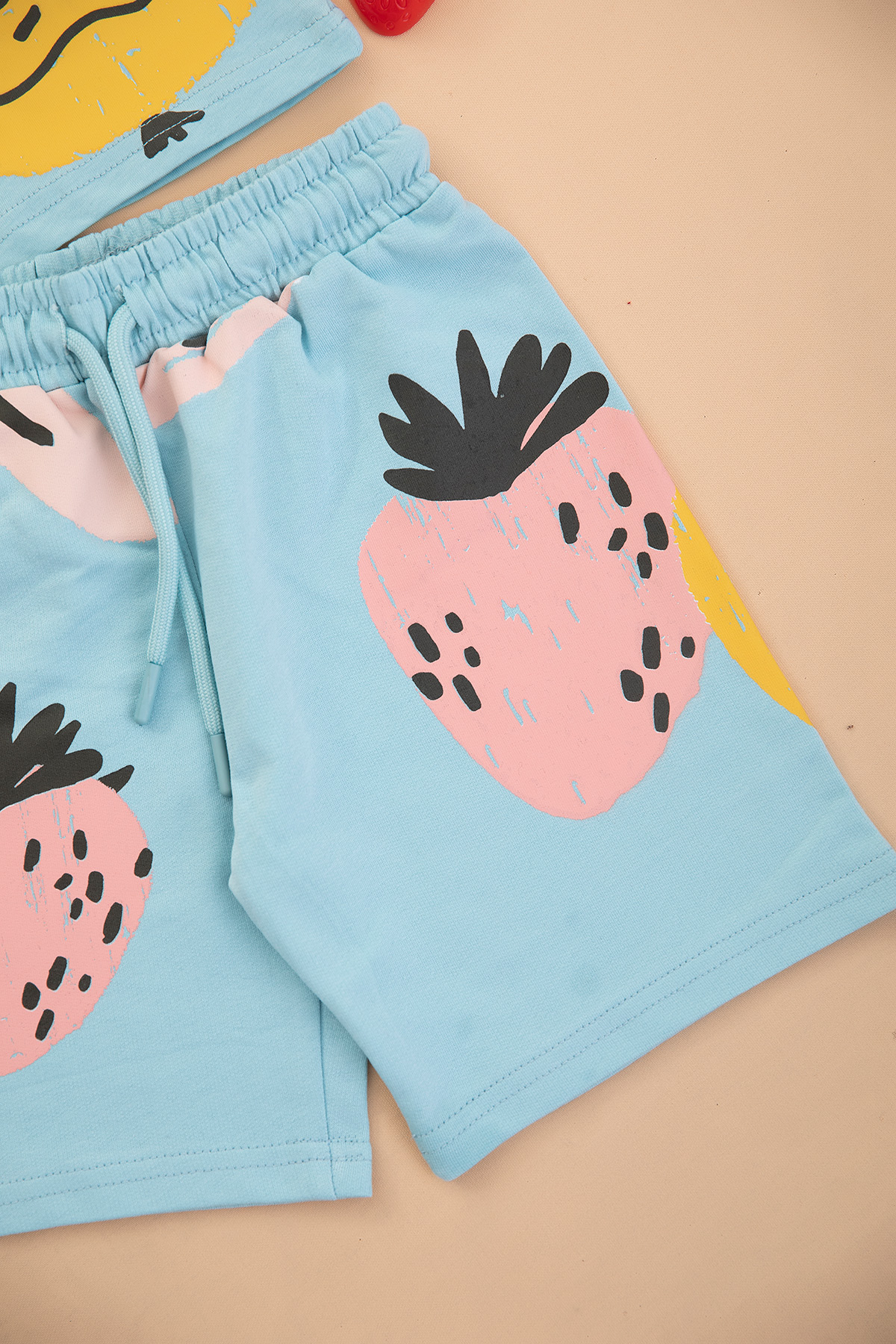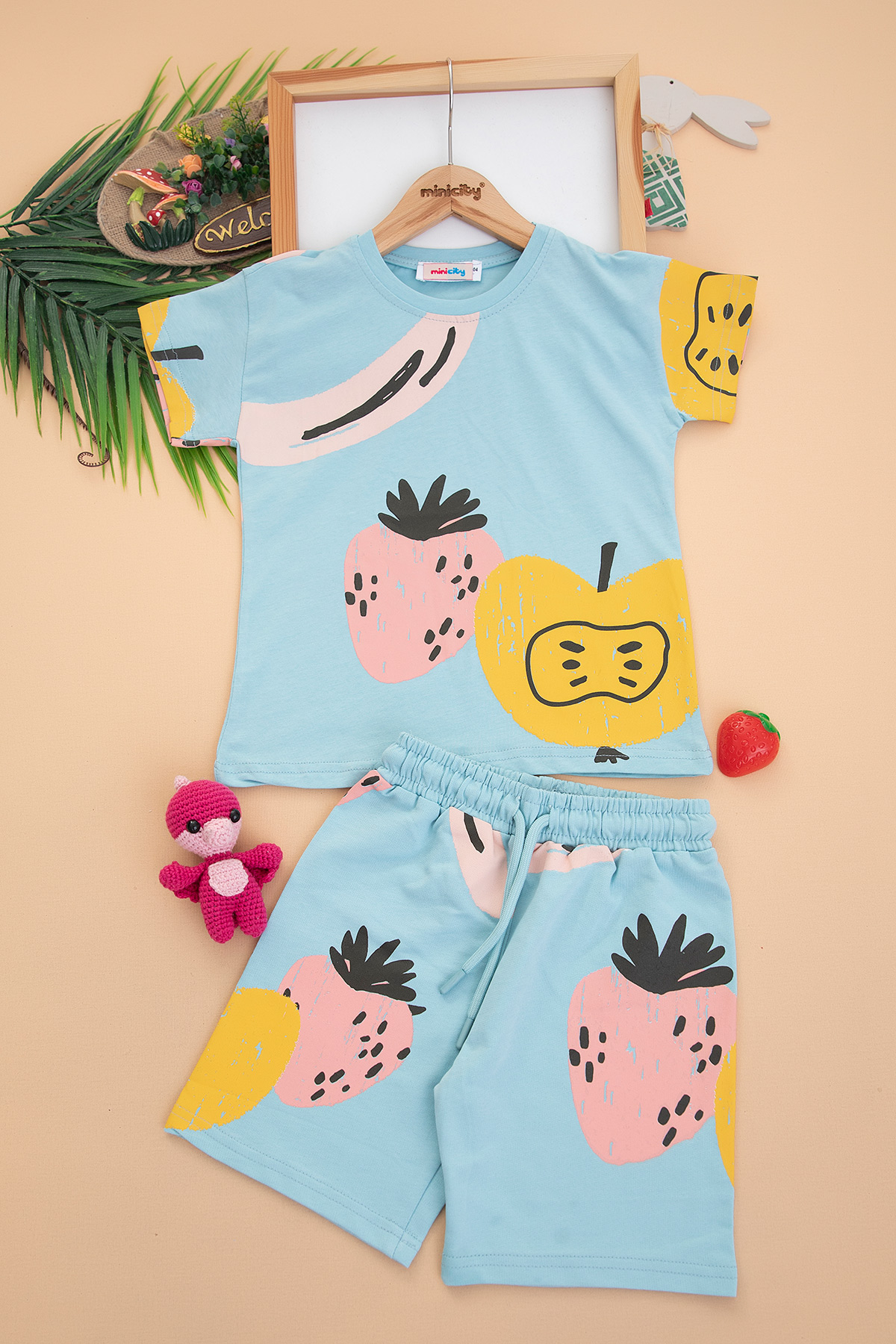 Kız Çocuk Çilek Kalpli Baskılı Şortlu Takım - 2349 (3-10 Yaş)