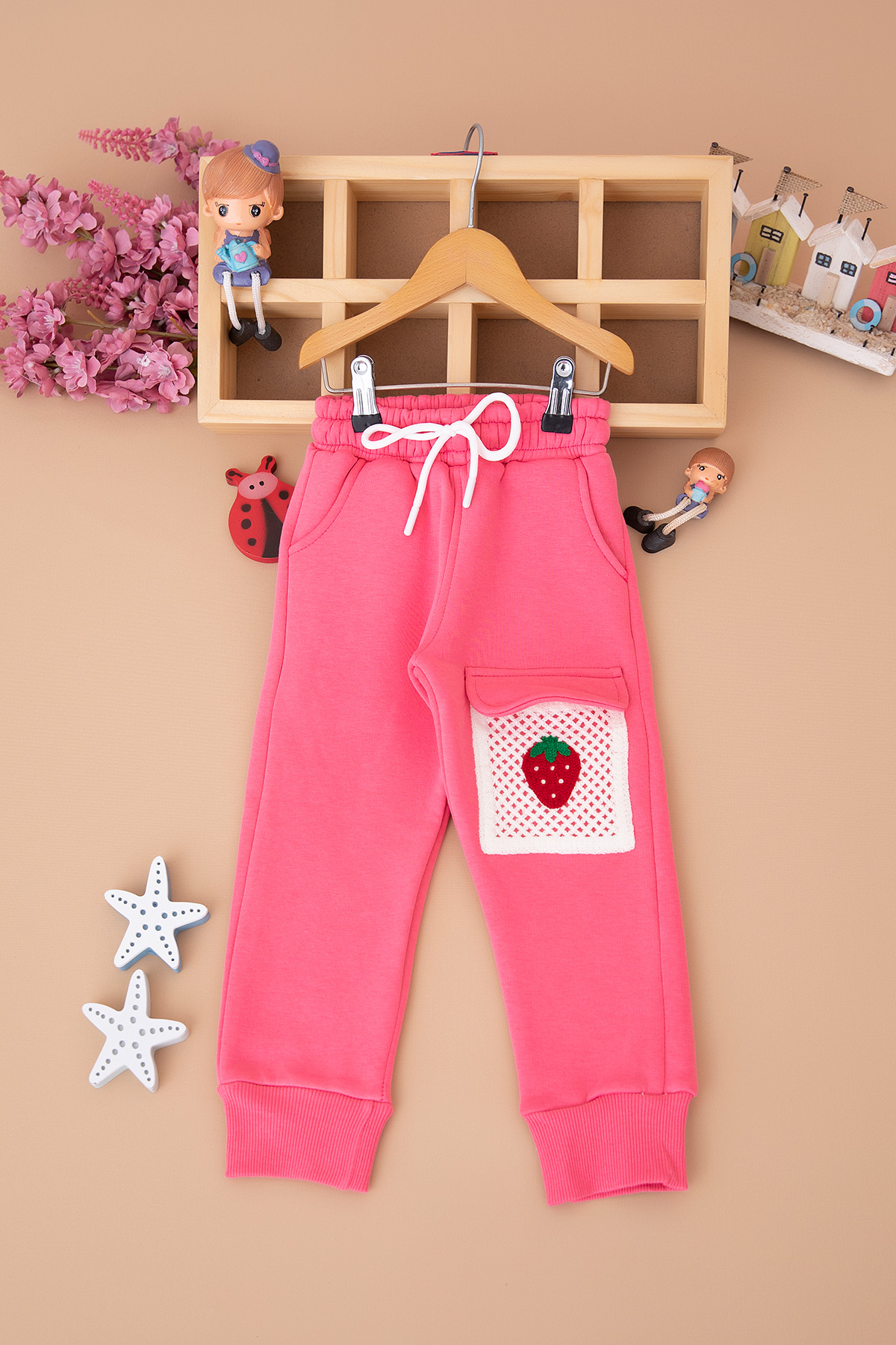 Kız Çocuk Çilek Nakışlı Cepli Üçip Tek Alt - 4101 (8-12 Yaş)