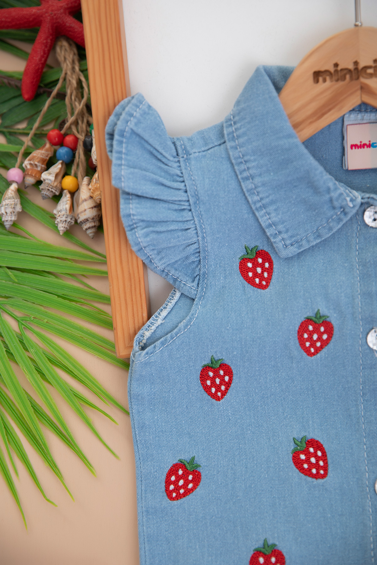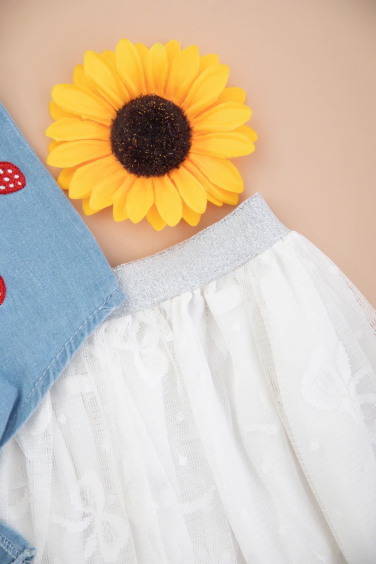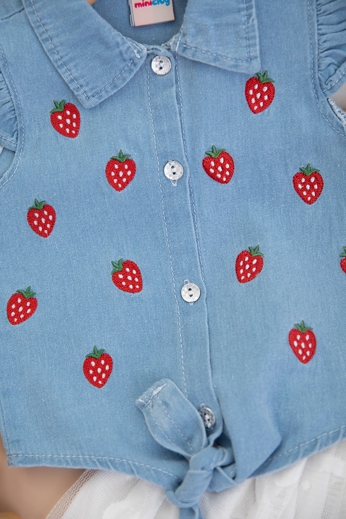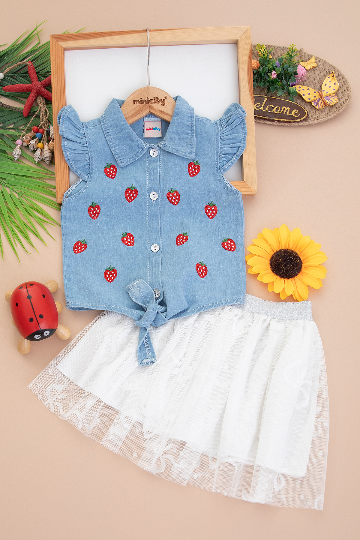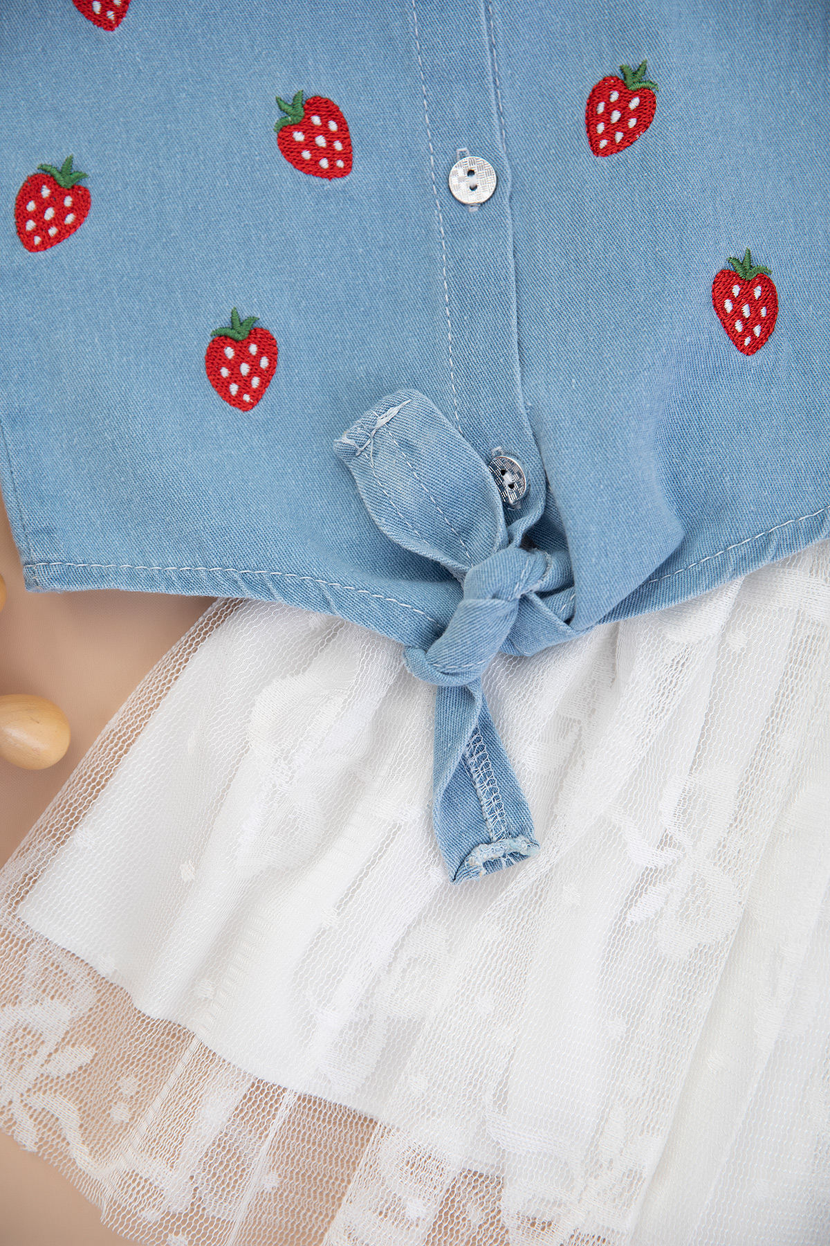 Kız Çocuk Çilek Nakışlı Dantel Etek Takım - 8103 (2-5 Yaş)
