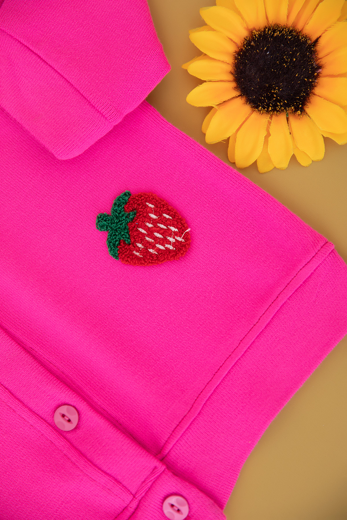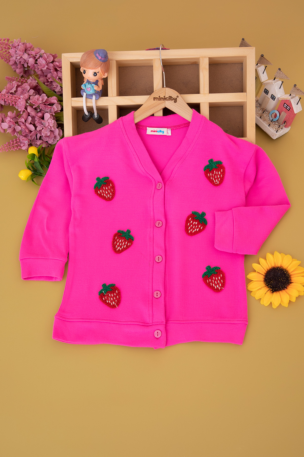 Kız Çocuk Çilek Nakışlı Düğmeli Triko Hırka - 60920 (5-12 Yaş)