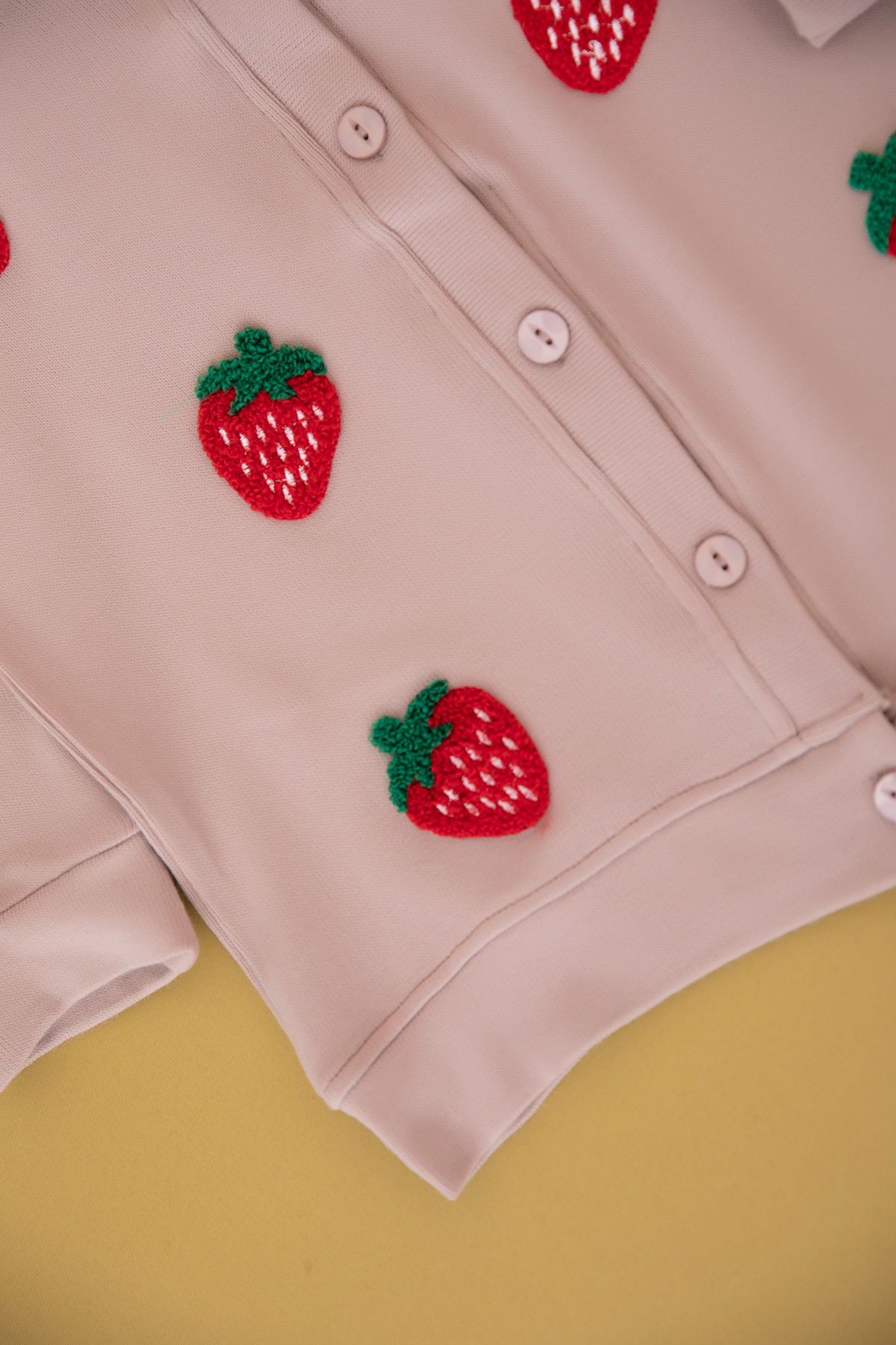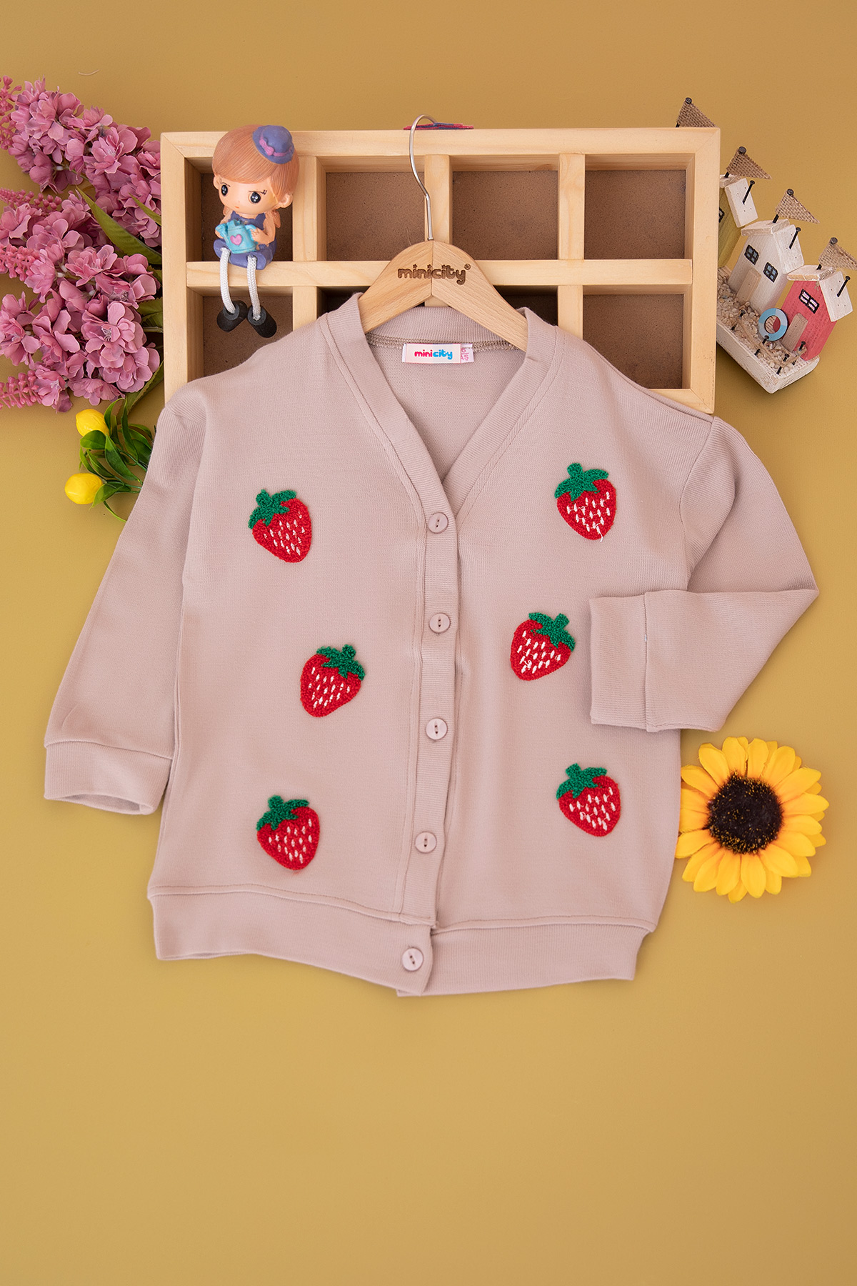 Kız Çocuk Çilek Nakışlı Düğmeli Triko Hırka - 60920 (5-12 Yaş)
