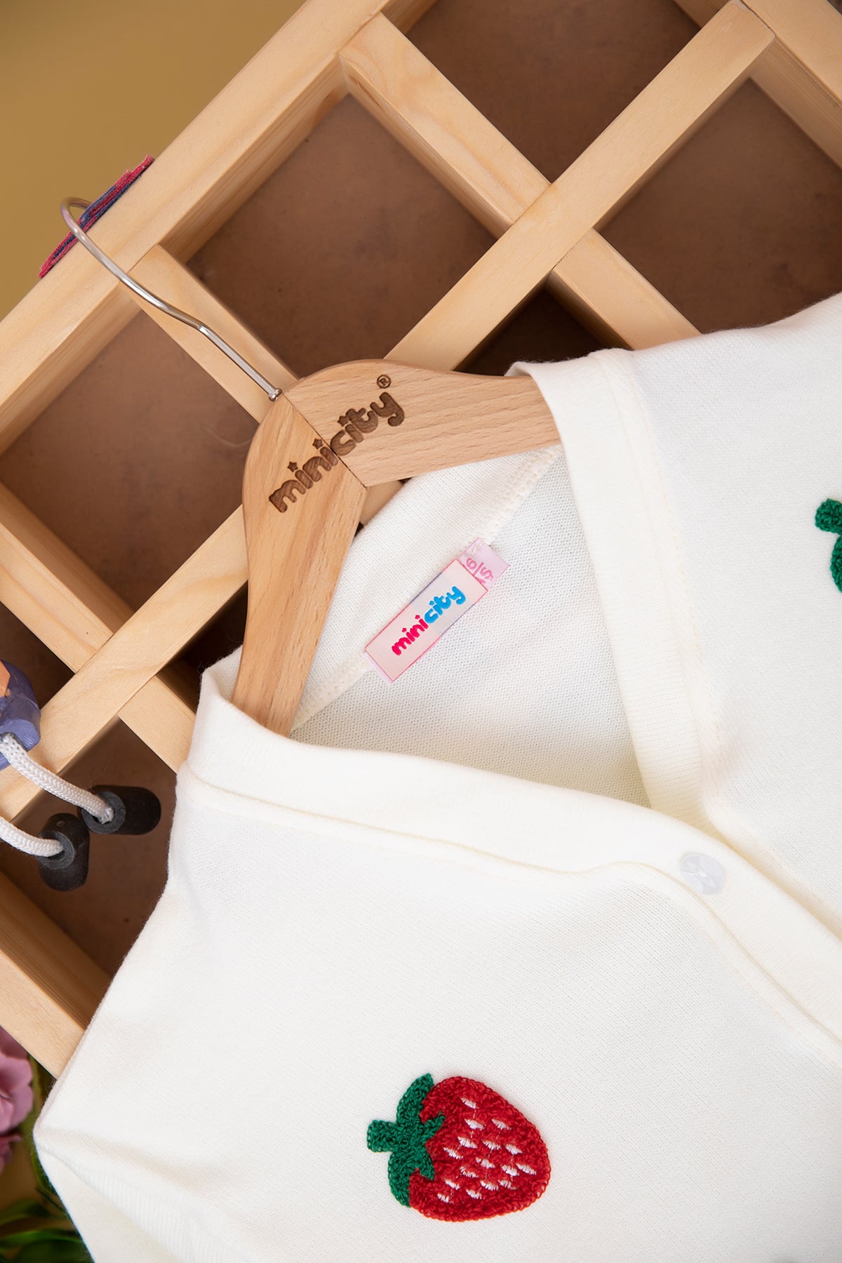 Kız Çocuk Çilek Nakışlı Düğmeli Triko Hırka - 60920 (5-12 Yaş)
