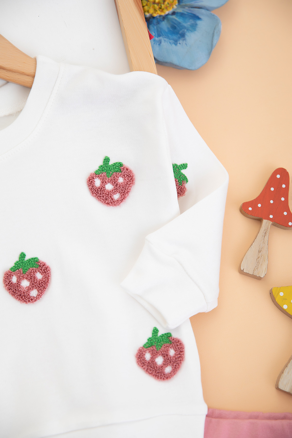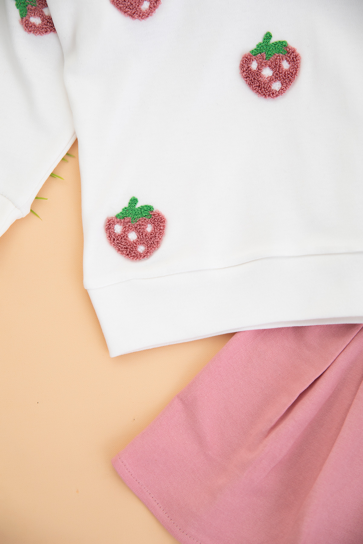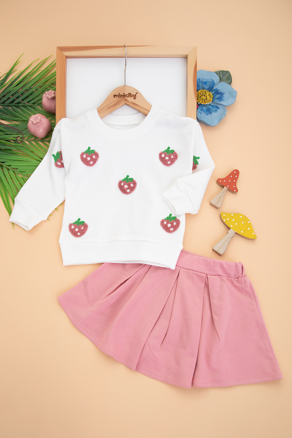 Kız Çocuk Çilek Nakışlı Etekli Takım - 3012 (1-4 Yaş)