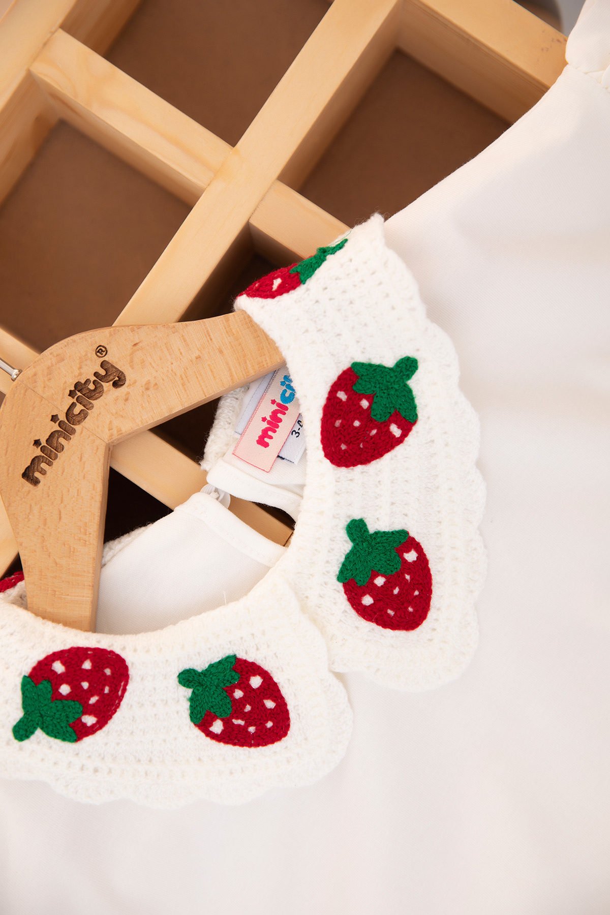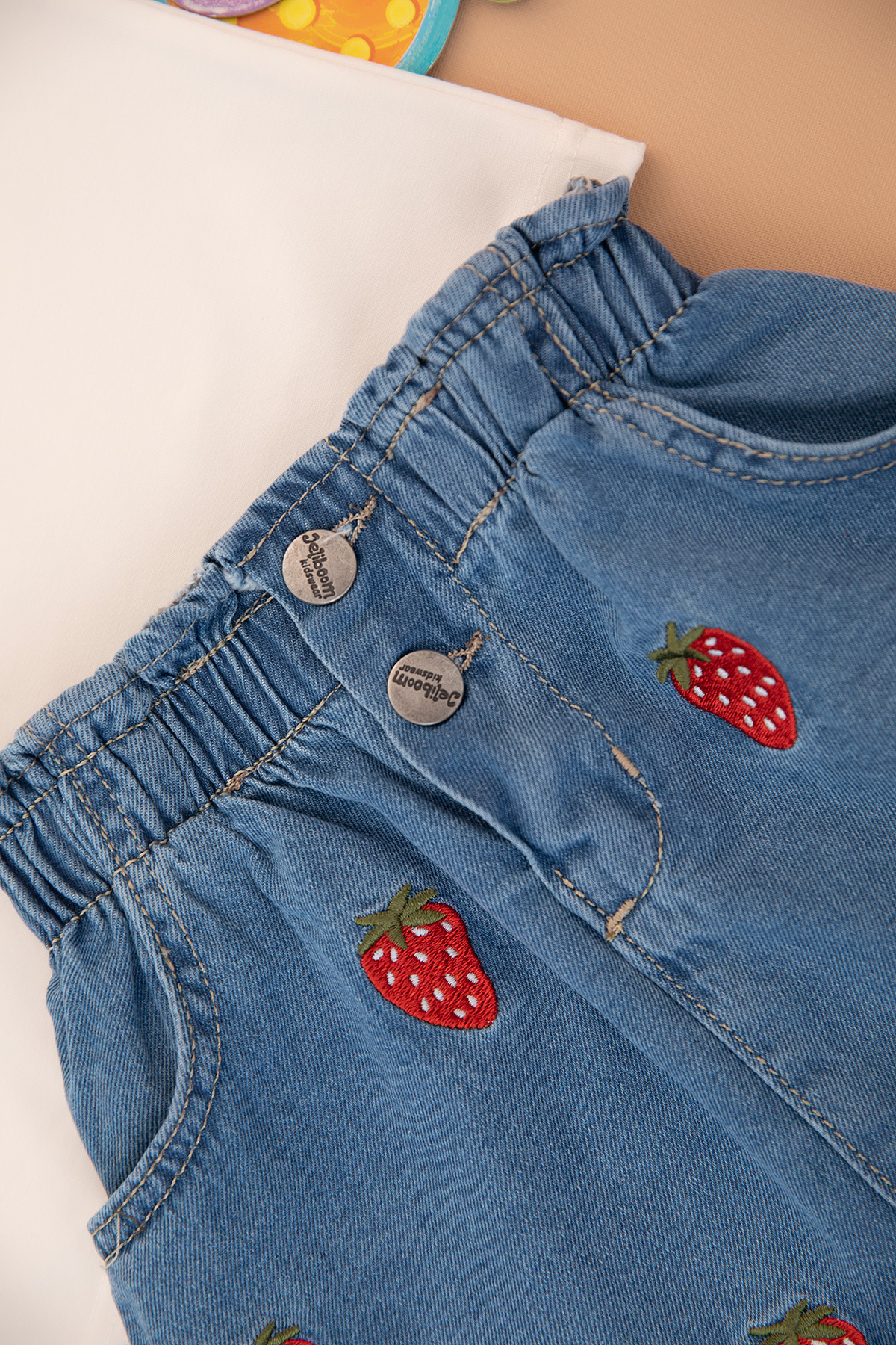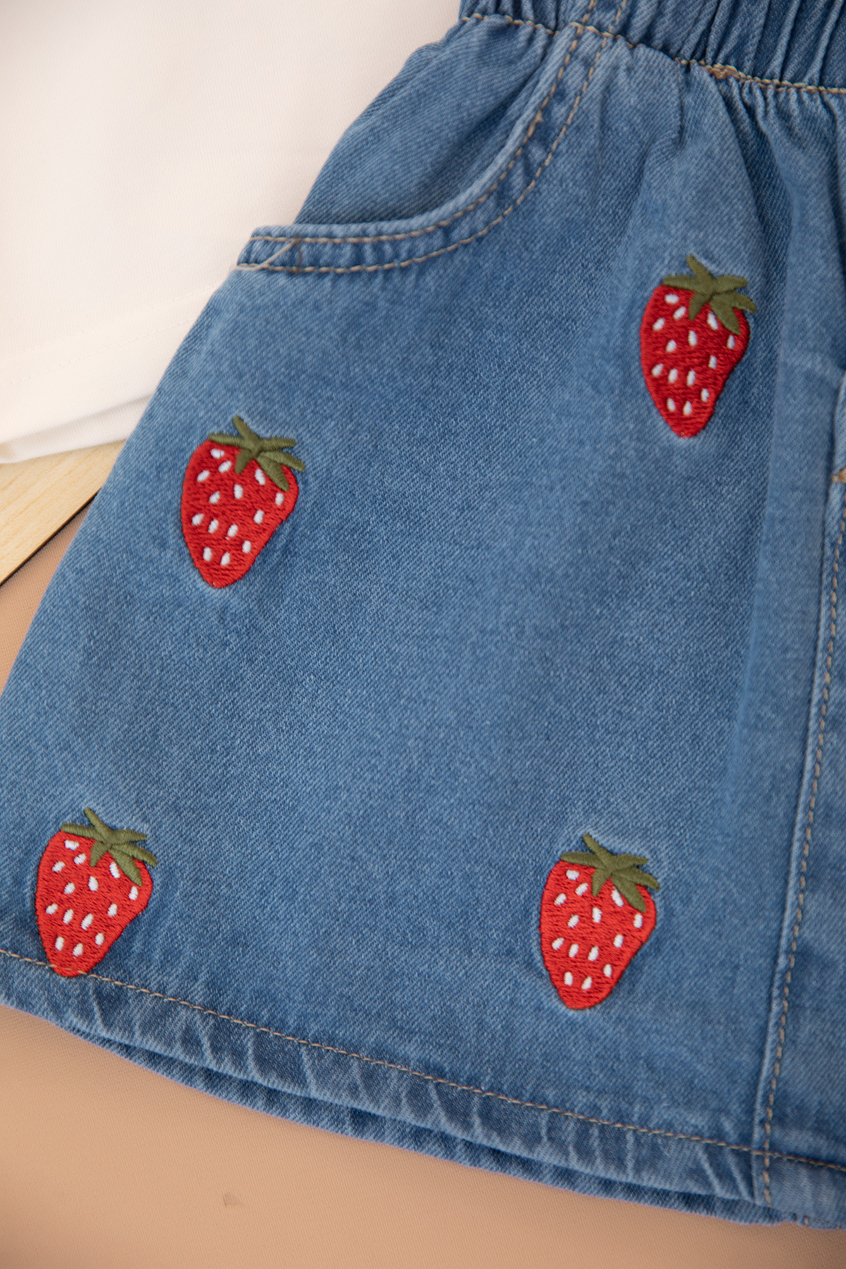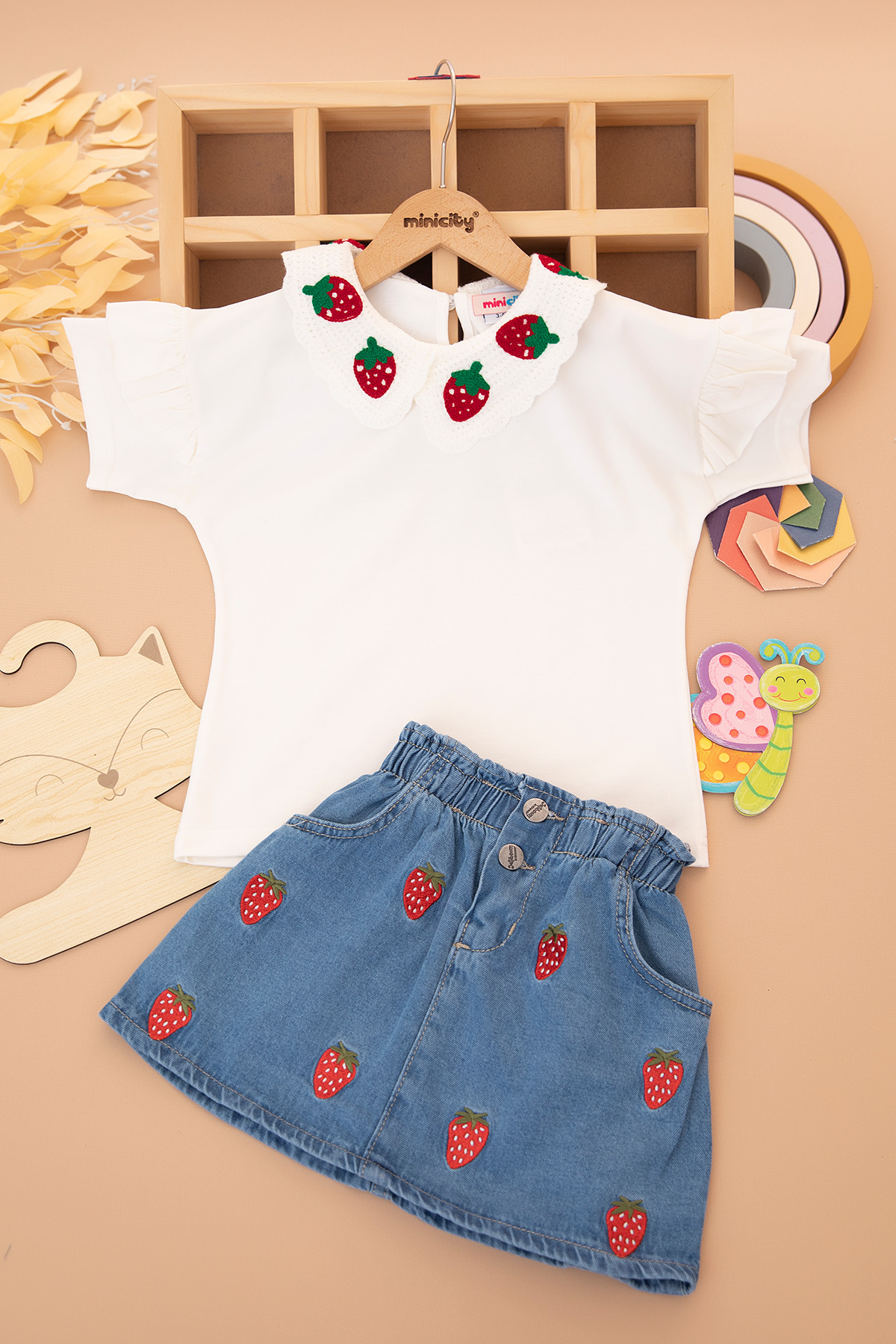 Kız Çocuk Çilek Nakışlı Kot Etekli Takım - K-5991 (3-10 Yaş)