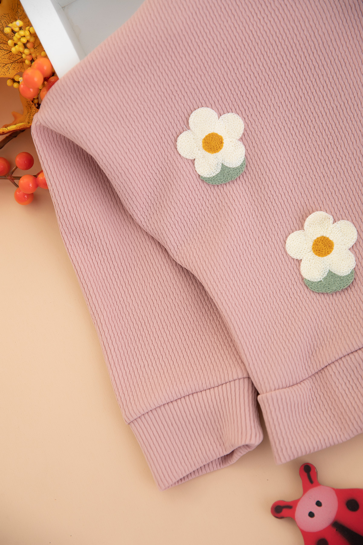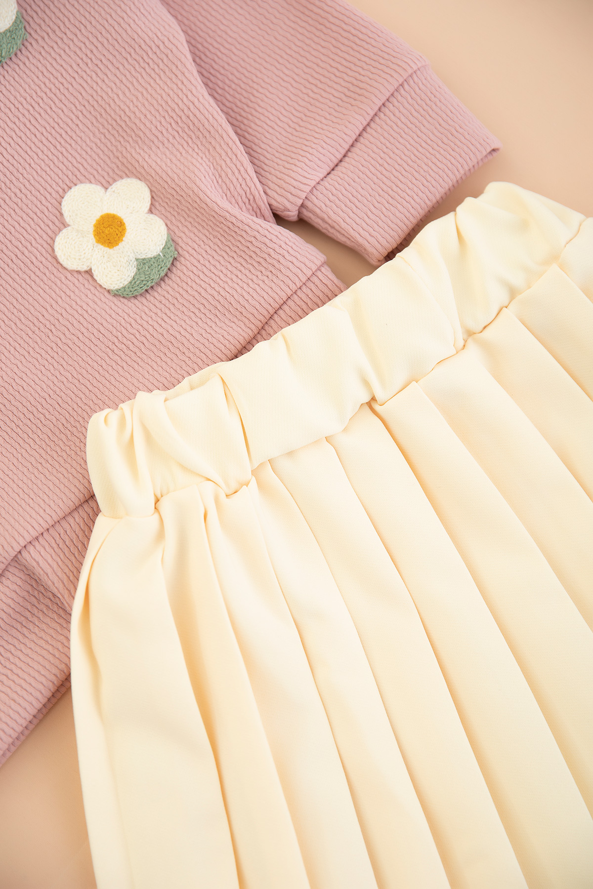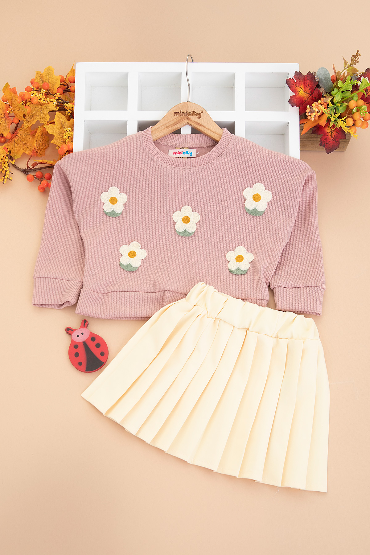 Kız Çocuk Çilek Nakışlı Pilise Etekli Takım - 14527 (3-7 Yaş)