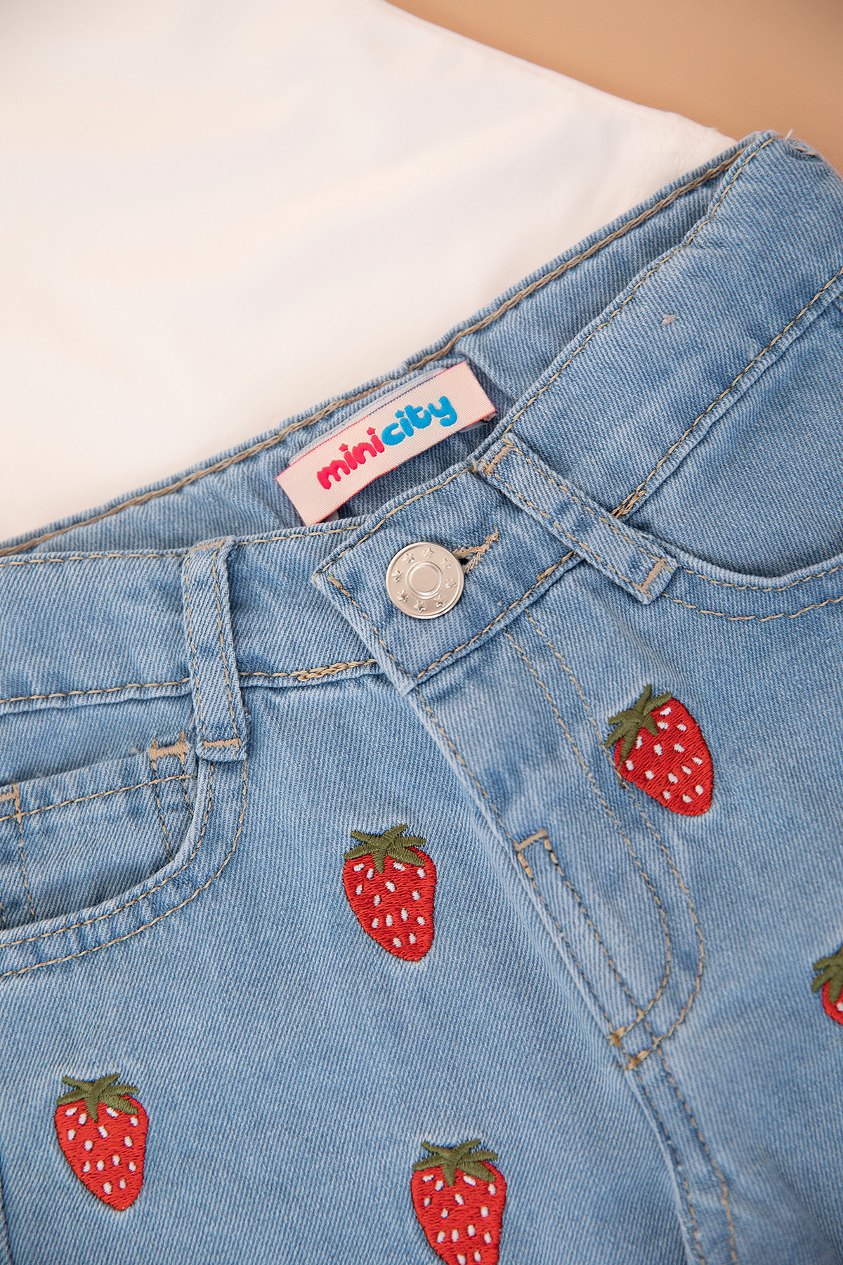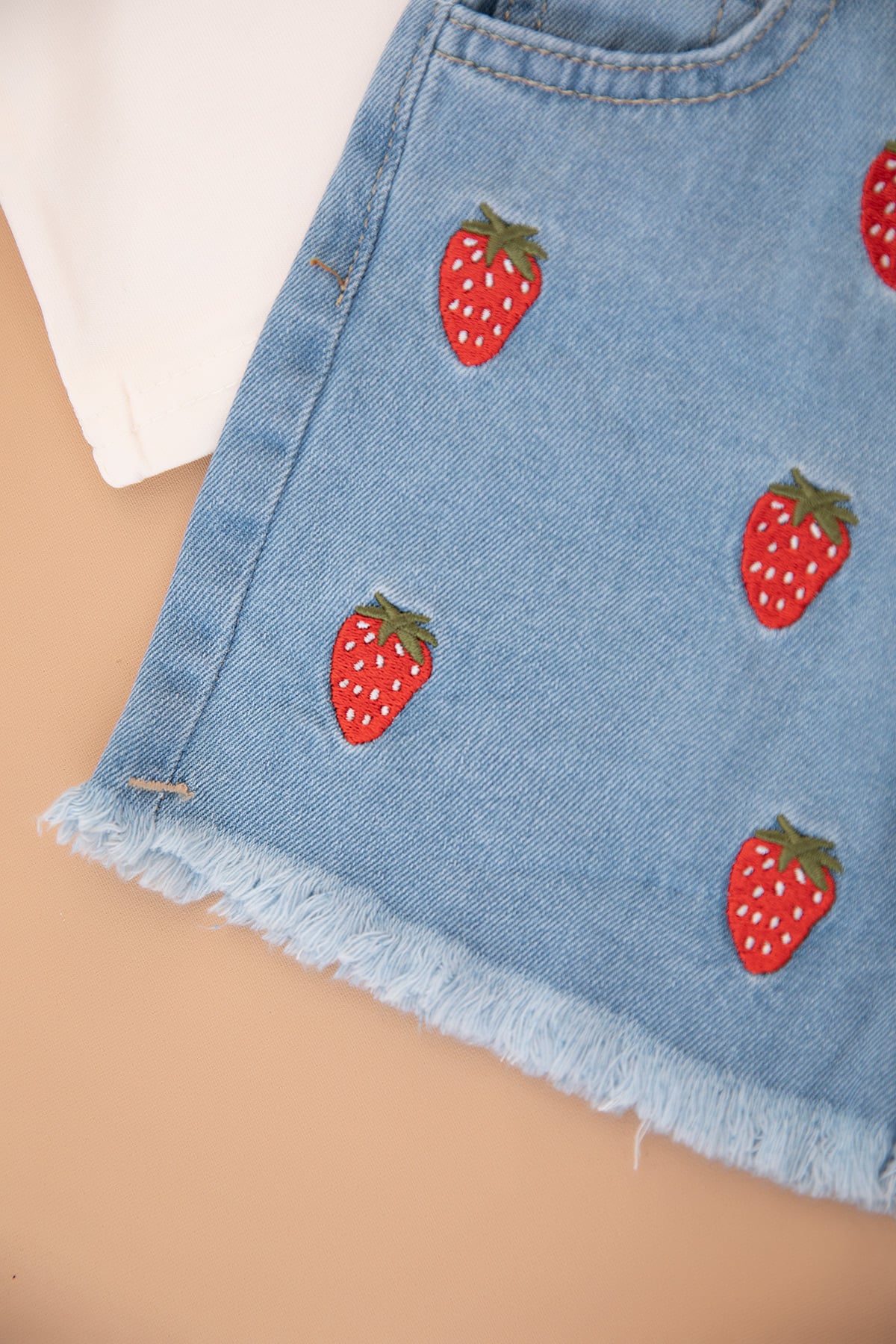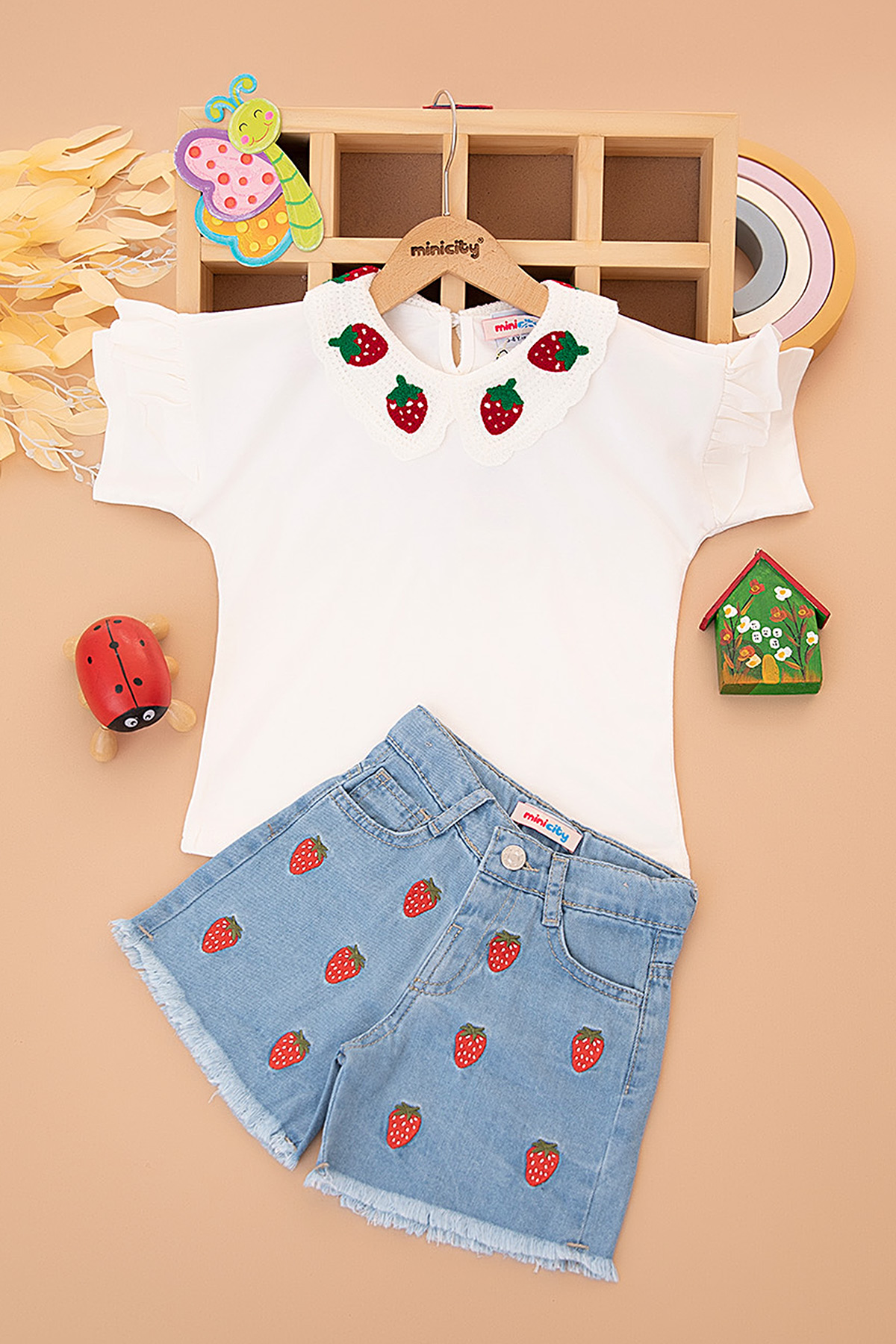 Kız Çocuk Çilek Nakışlı Şortlu Takım - K-5807 (3-10 Yaş)