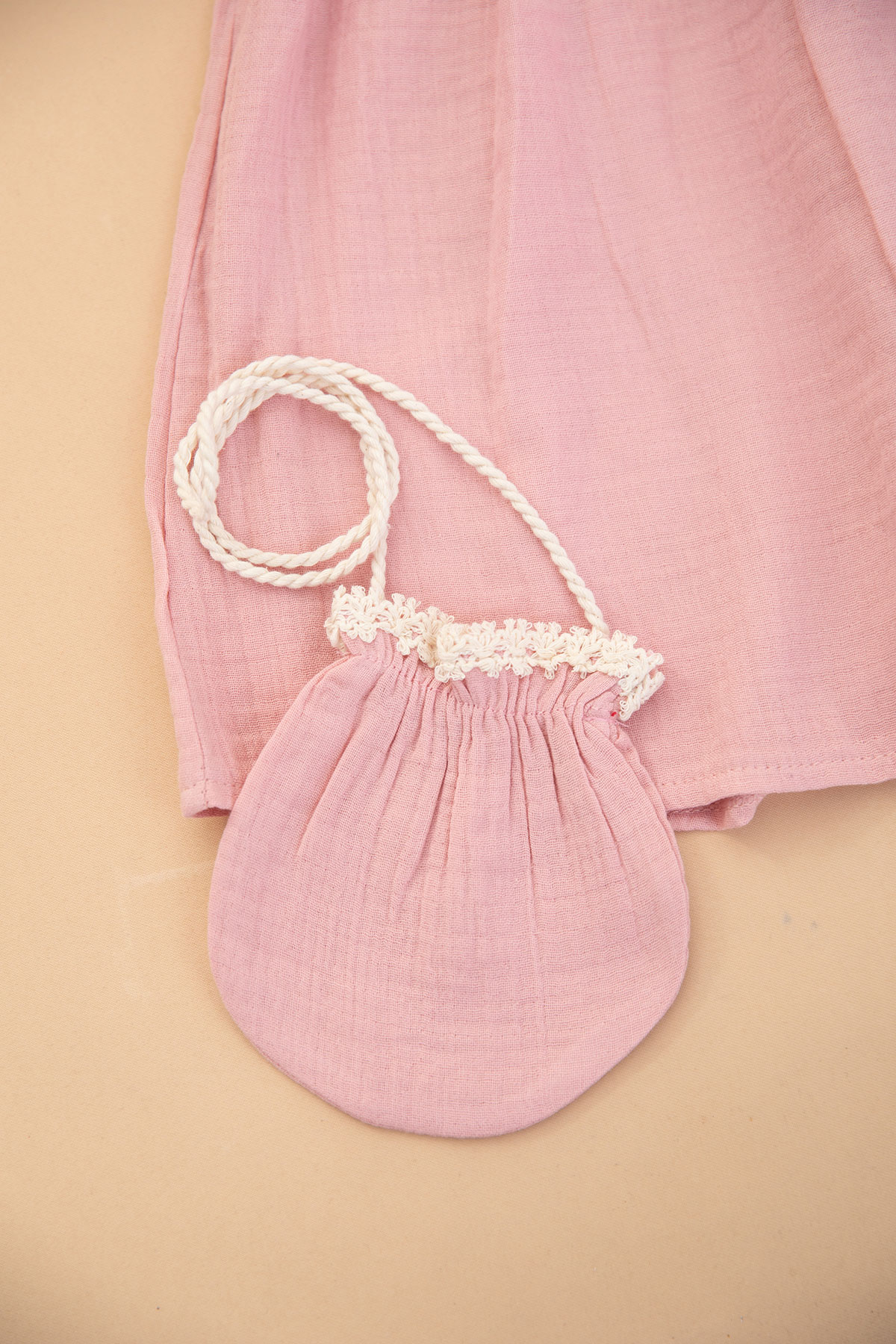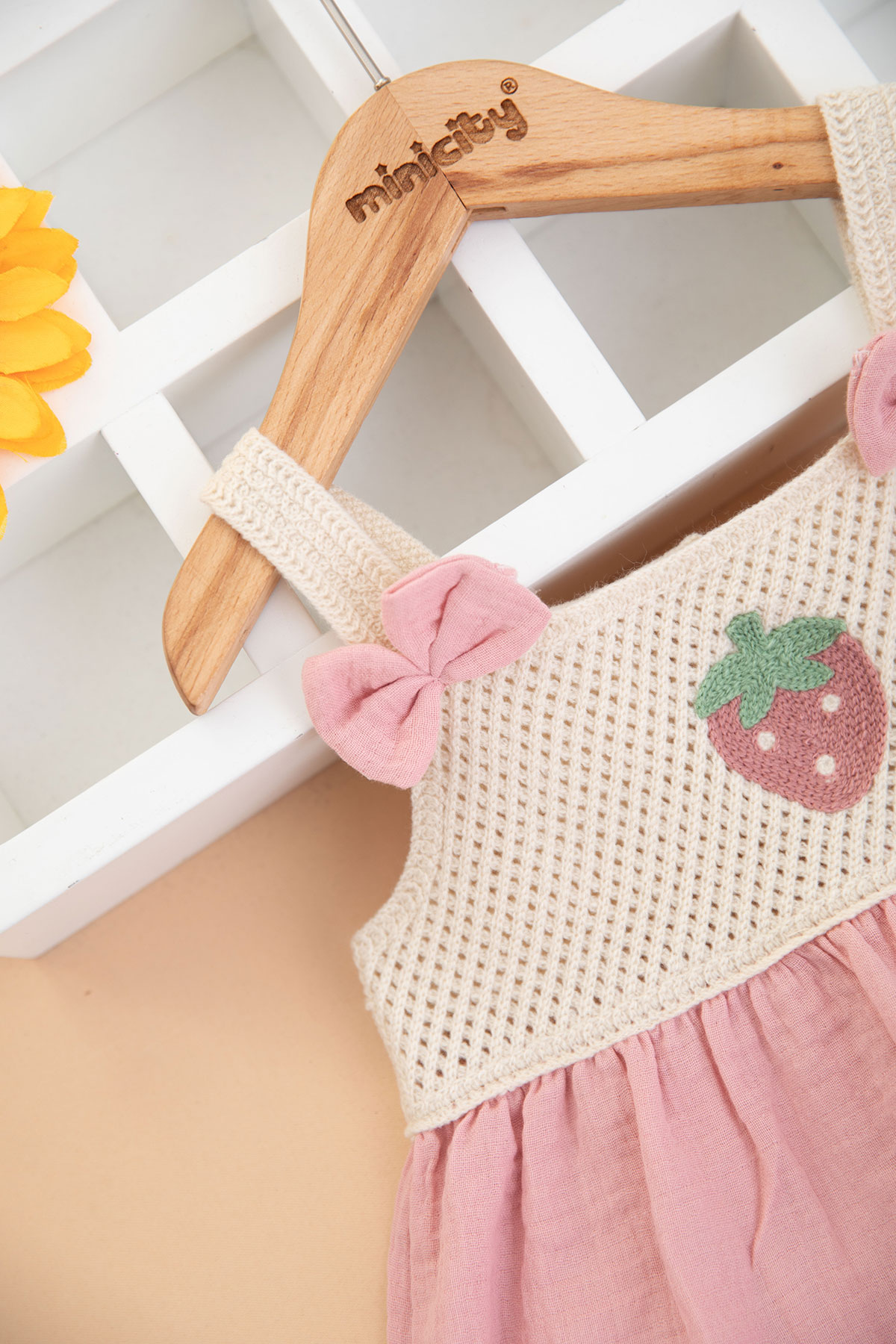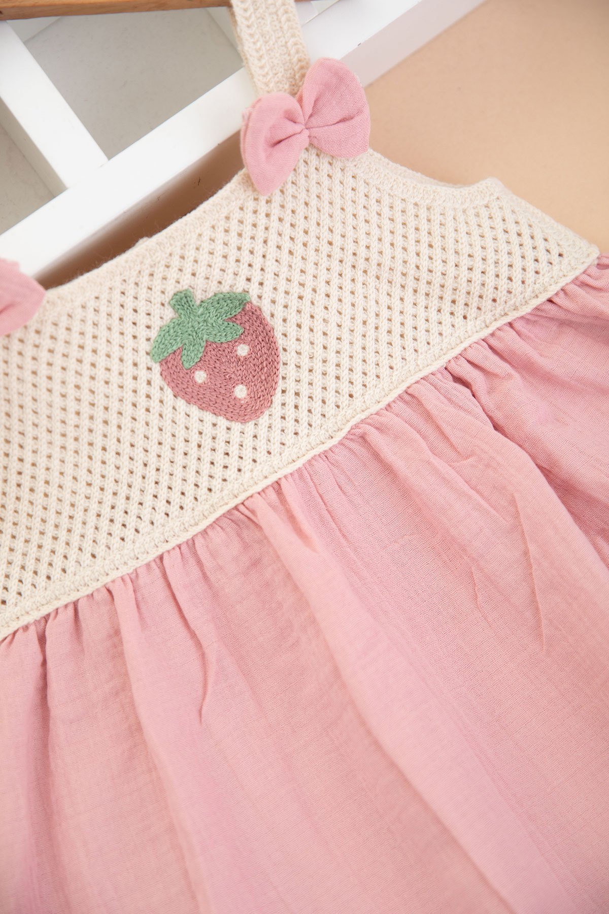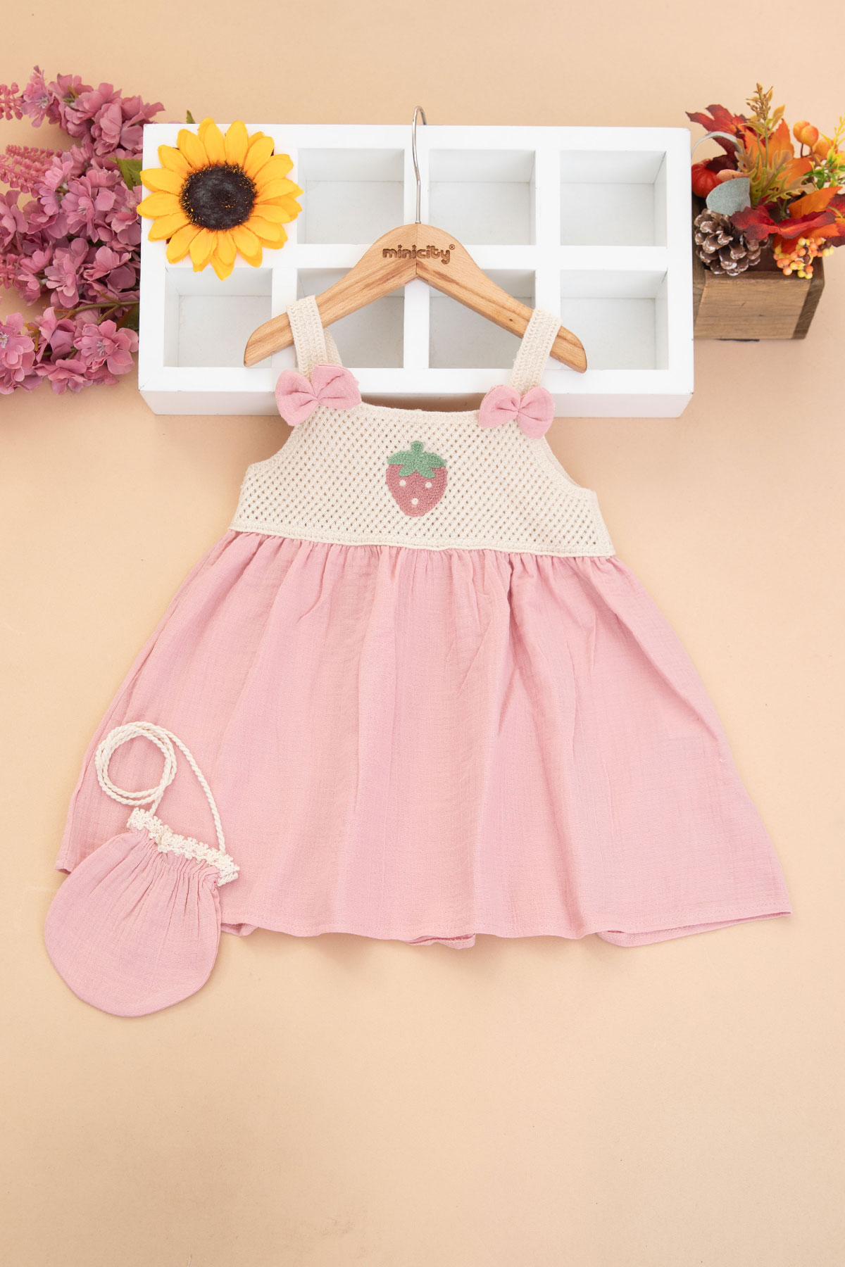 Kız Çocuk Çilek Robalı Süzeneli Müslin Çantalı Elbise - 5170 (2-5 Yaş)