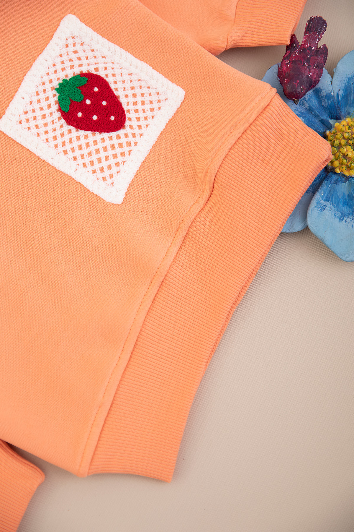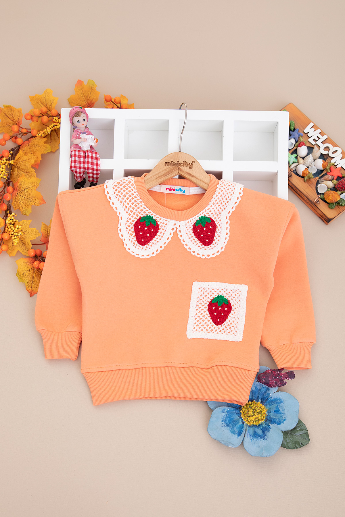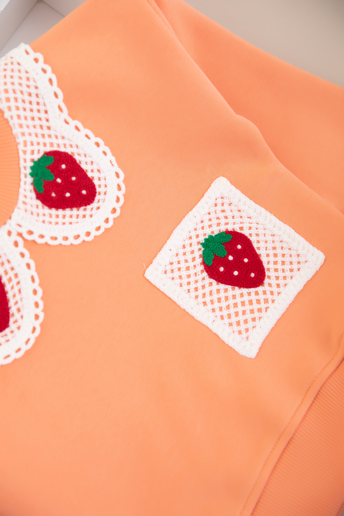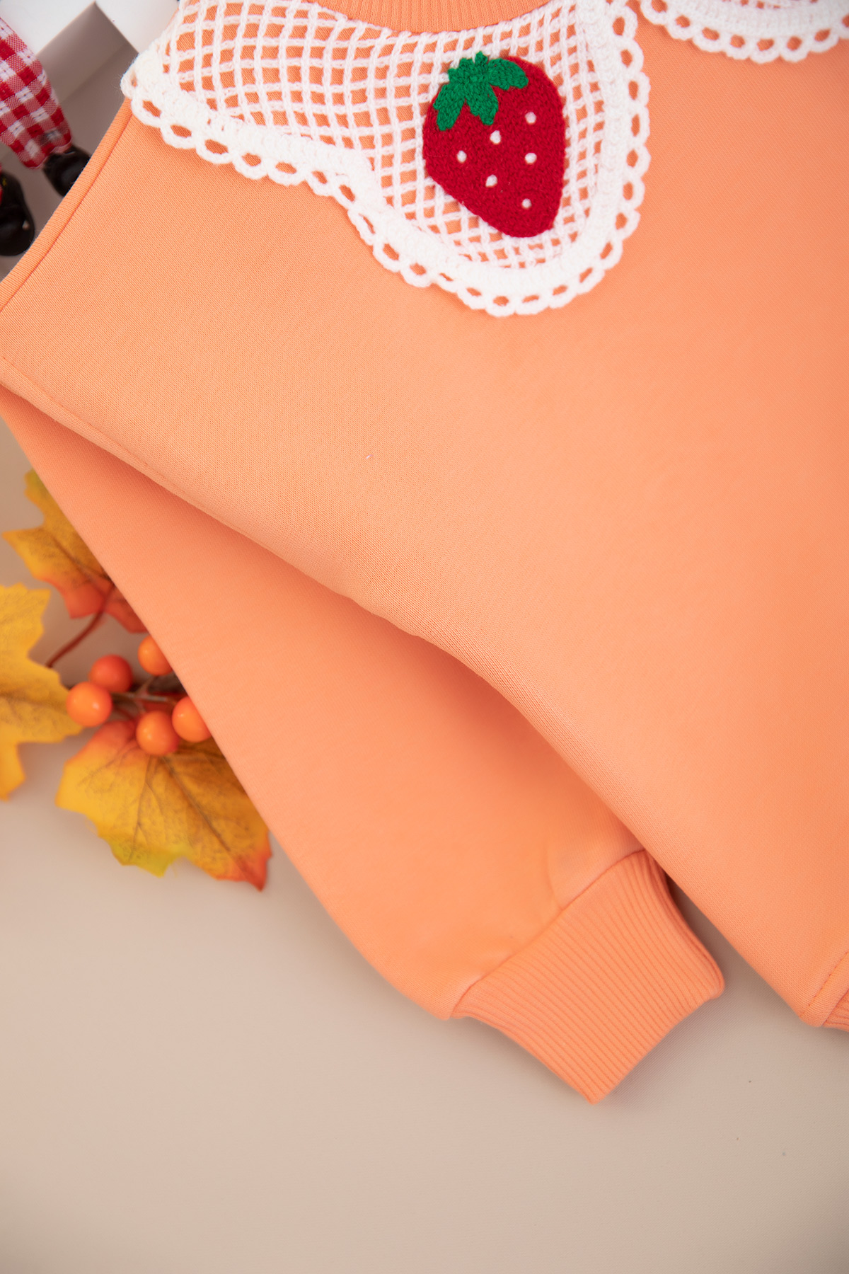 Kız Çocuk Çilek Yaka Cep Nakışlı Üçip Sweat - 4058 (8-12 Yaş)