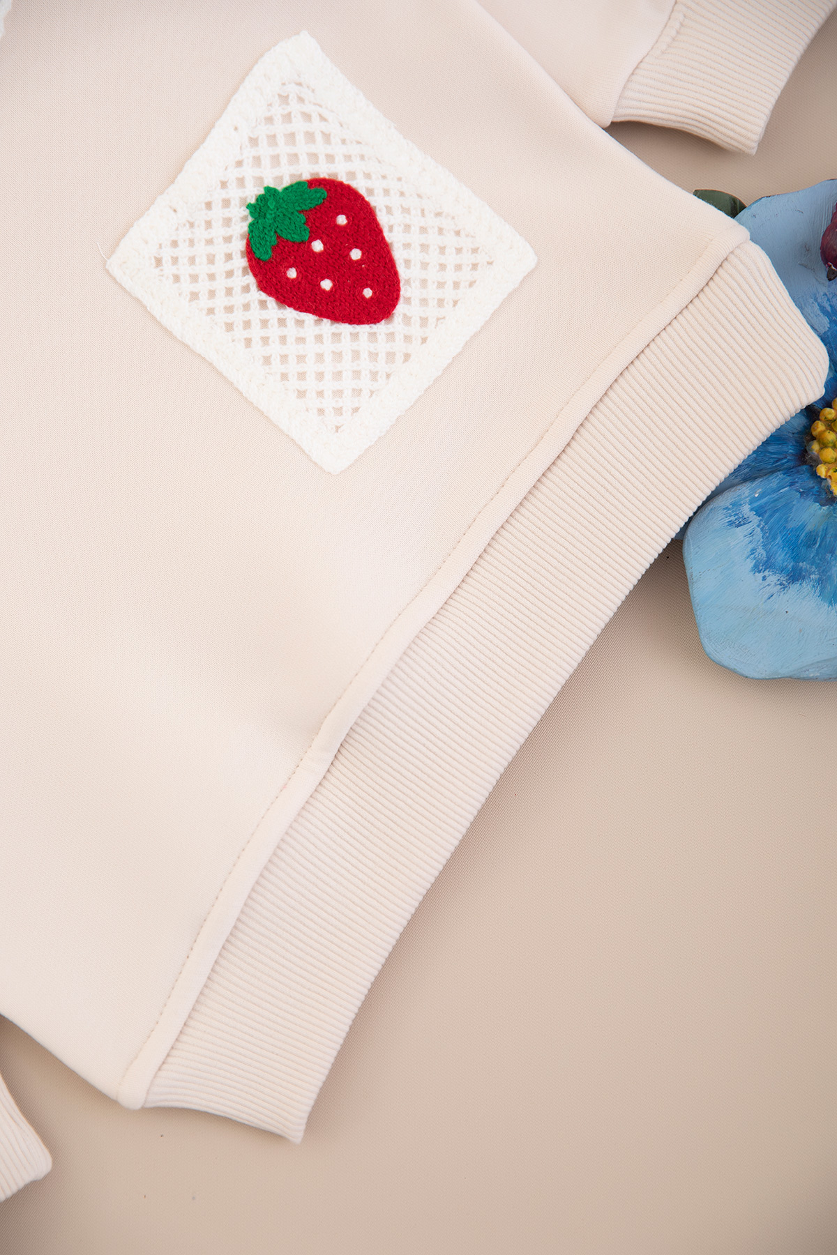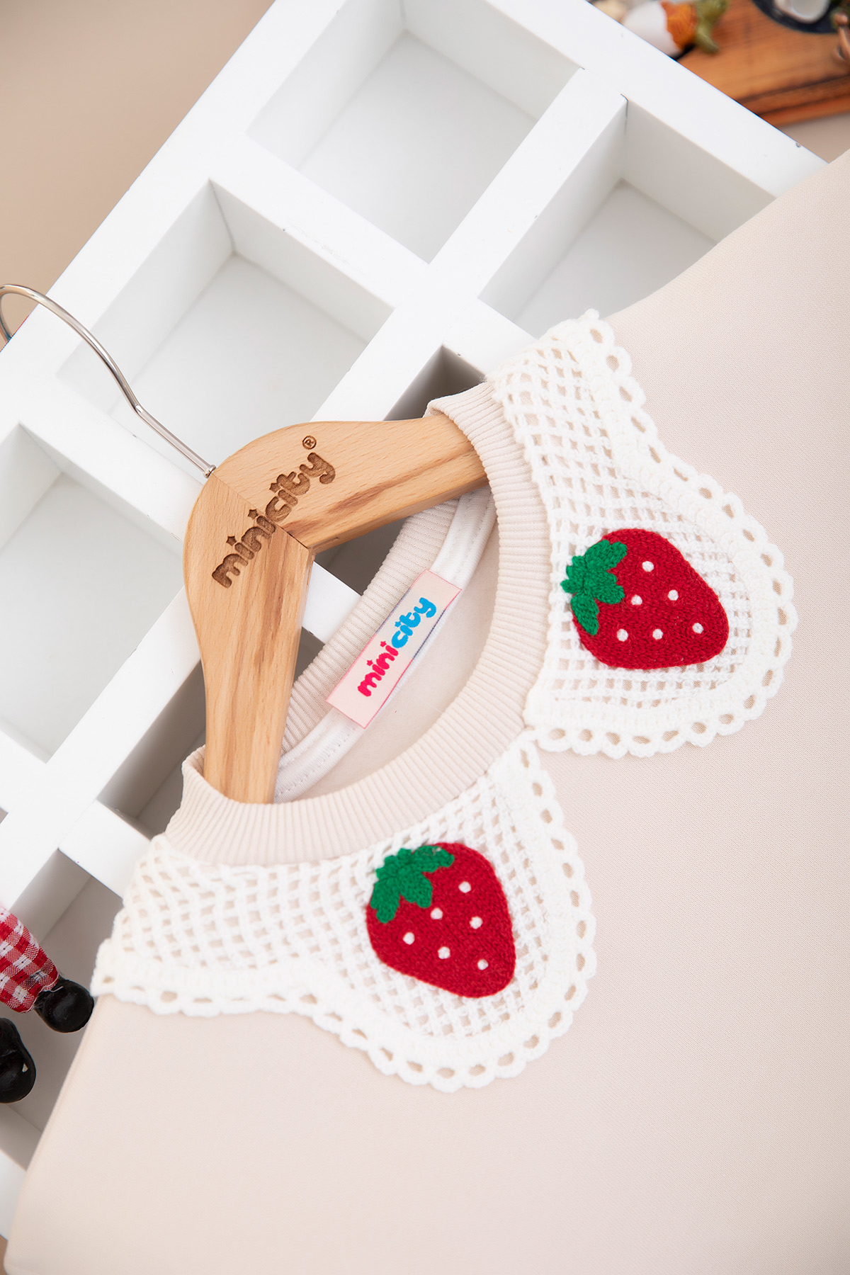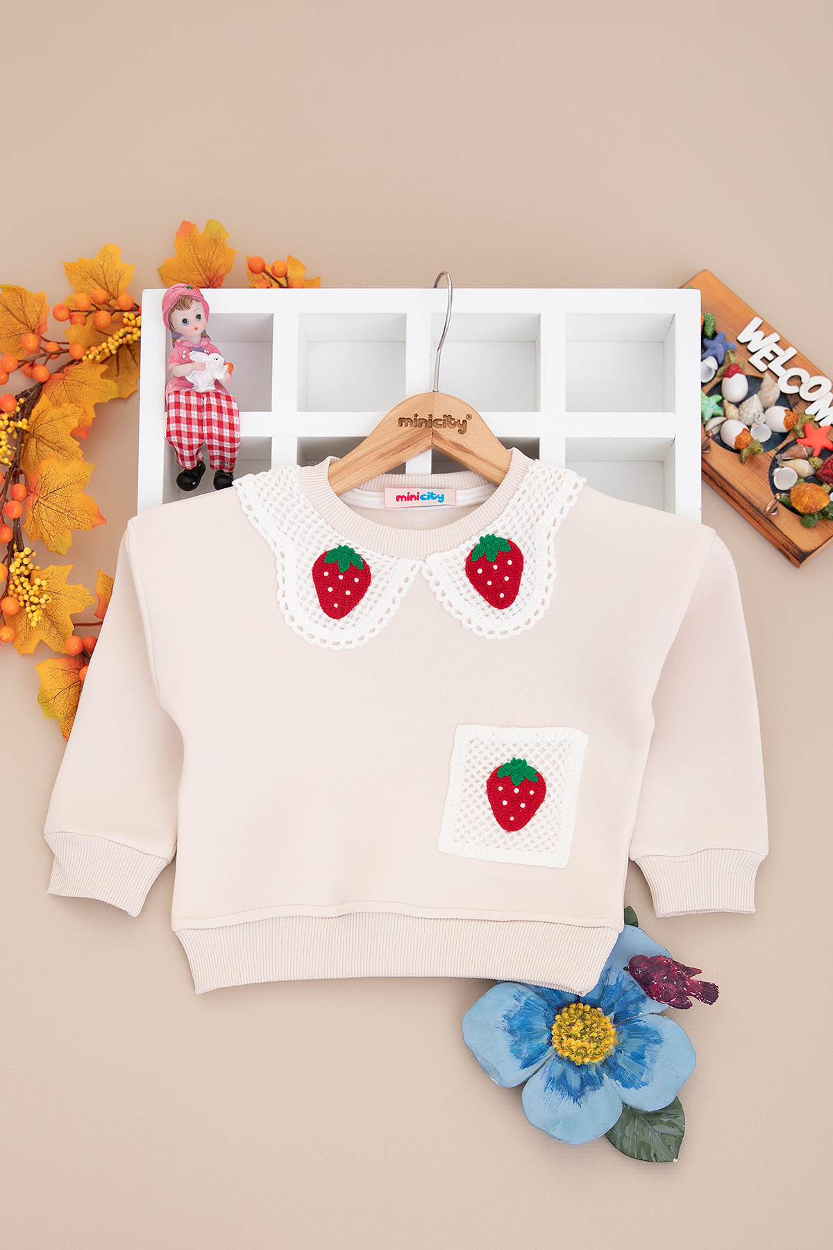 Kız Çocuk Çilek Yaka Cep Nakışlı Üçip Sweat - 4058 (8-12 Yaş)