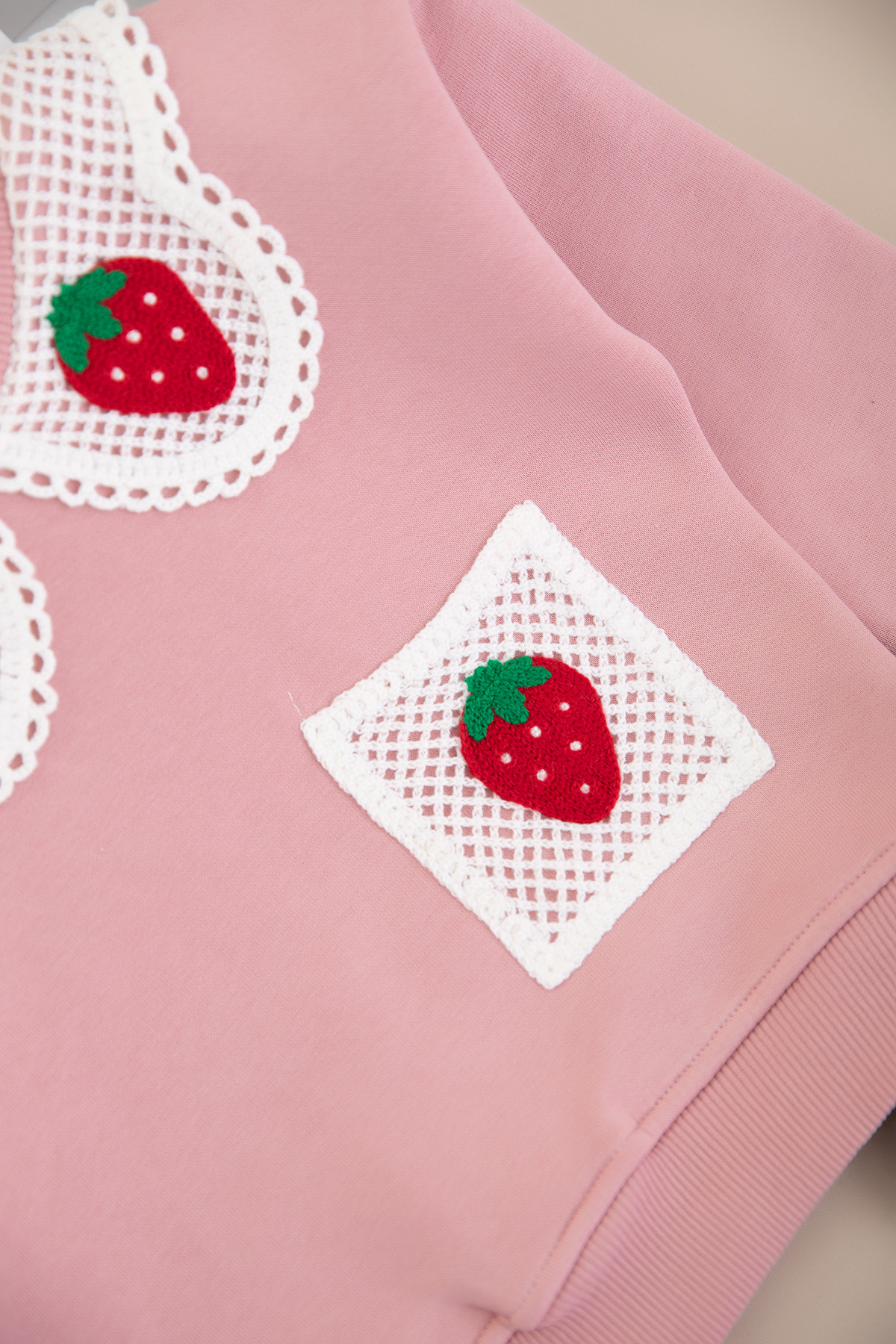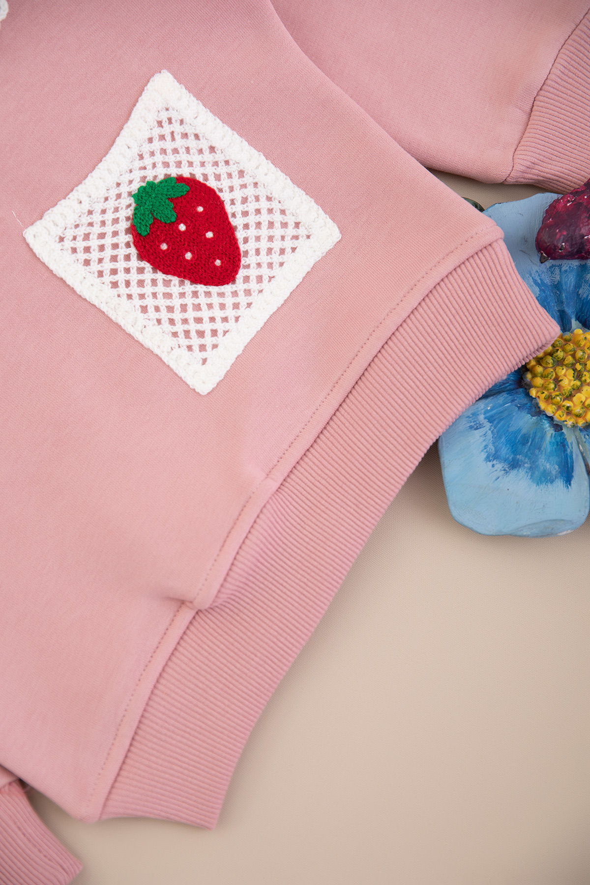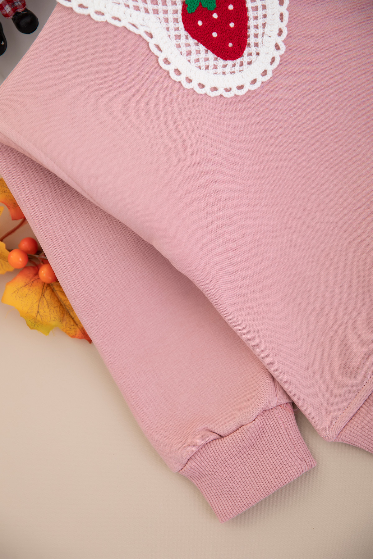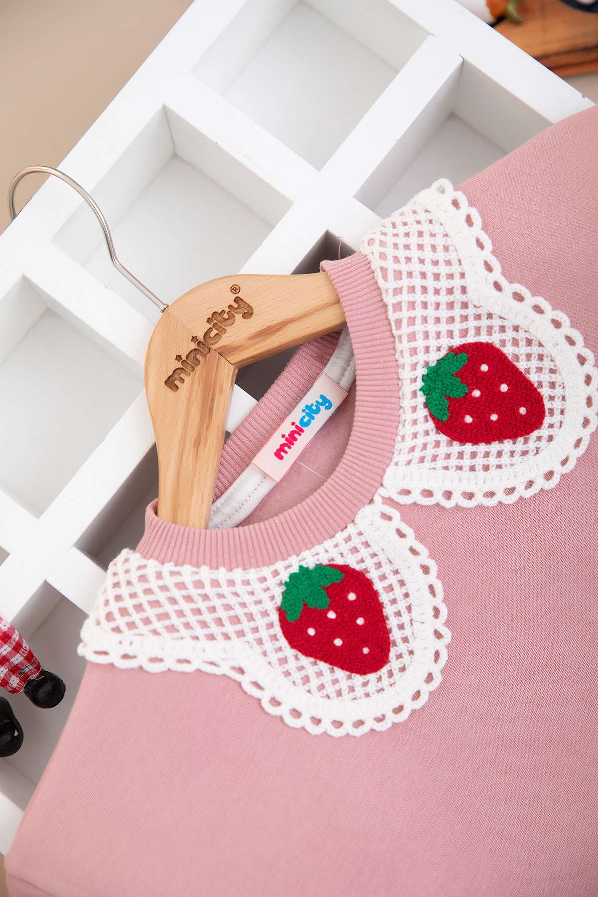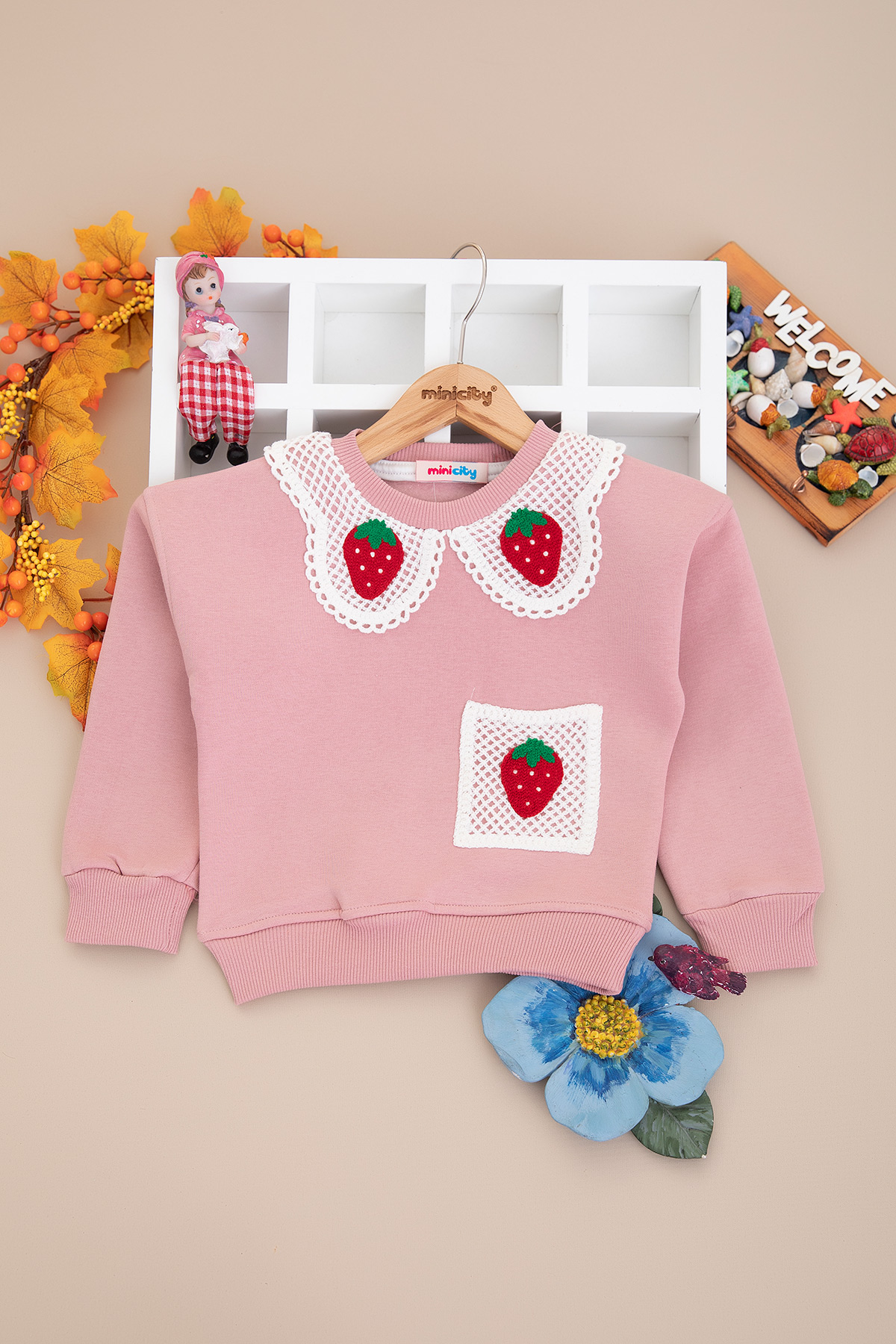Kız Çocuk Çilek Yaka Cep Nakışlı Üçip Sweat - 4058 (8-12 Yaş)