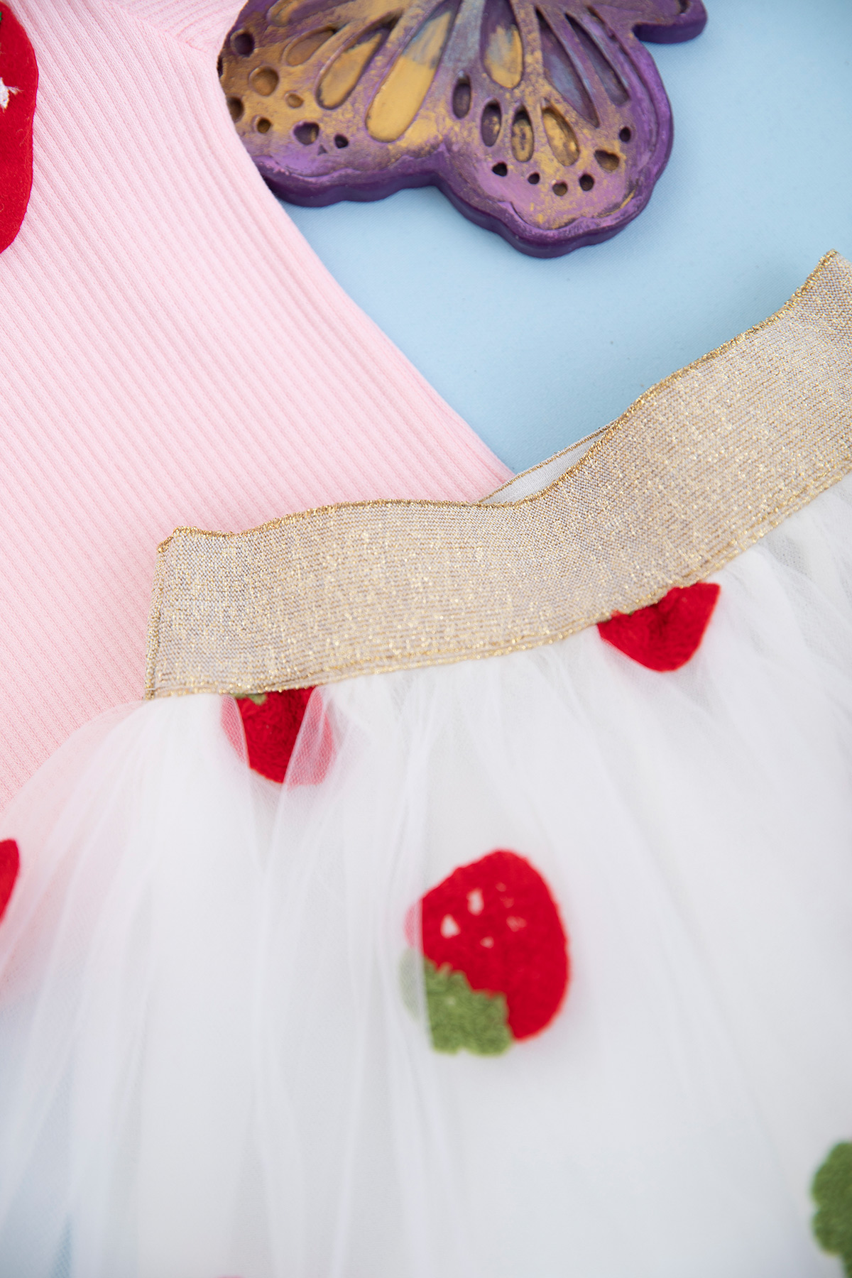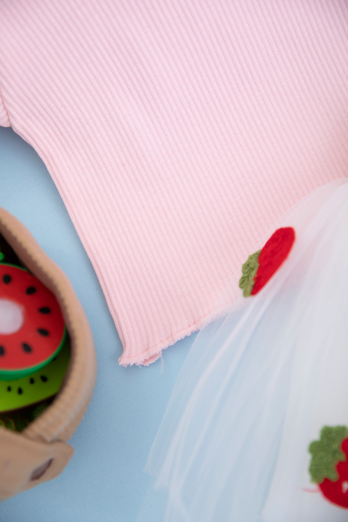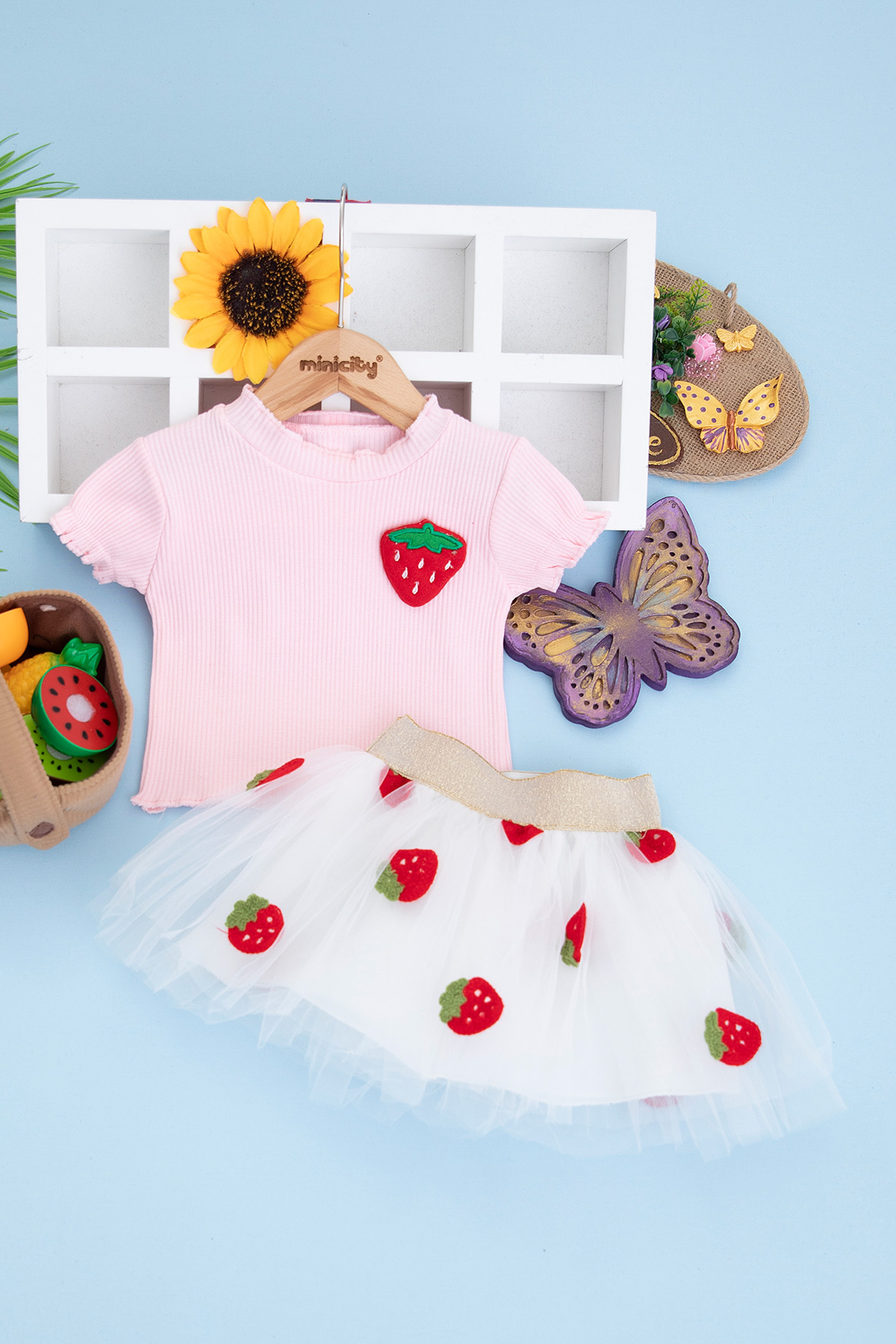 Kız Çocuk Çilekli Tütü Etekli Takım - 1304 (1-4 Yaş)