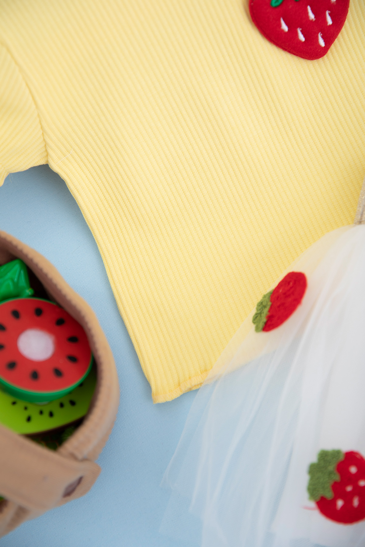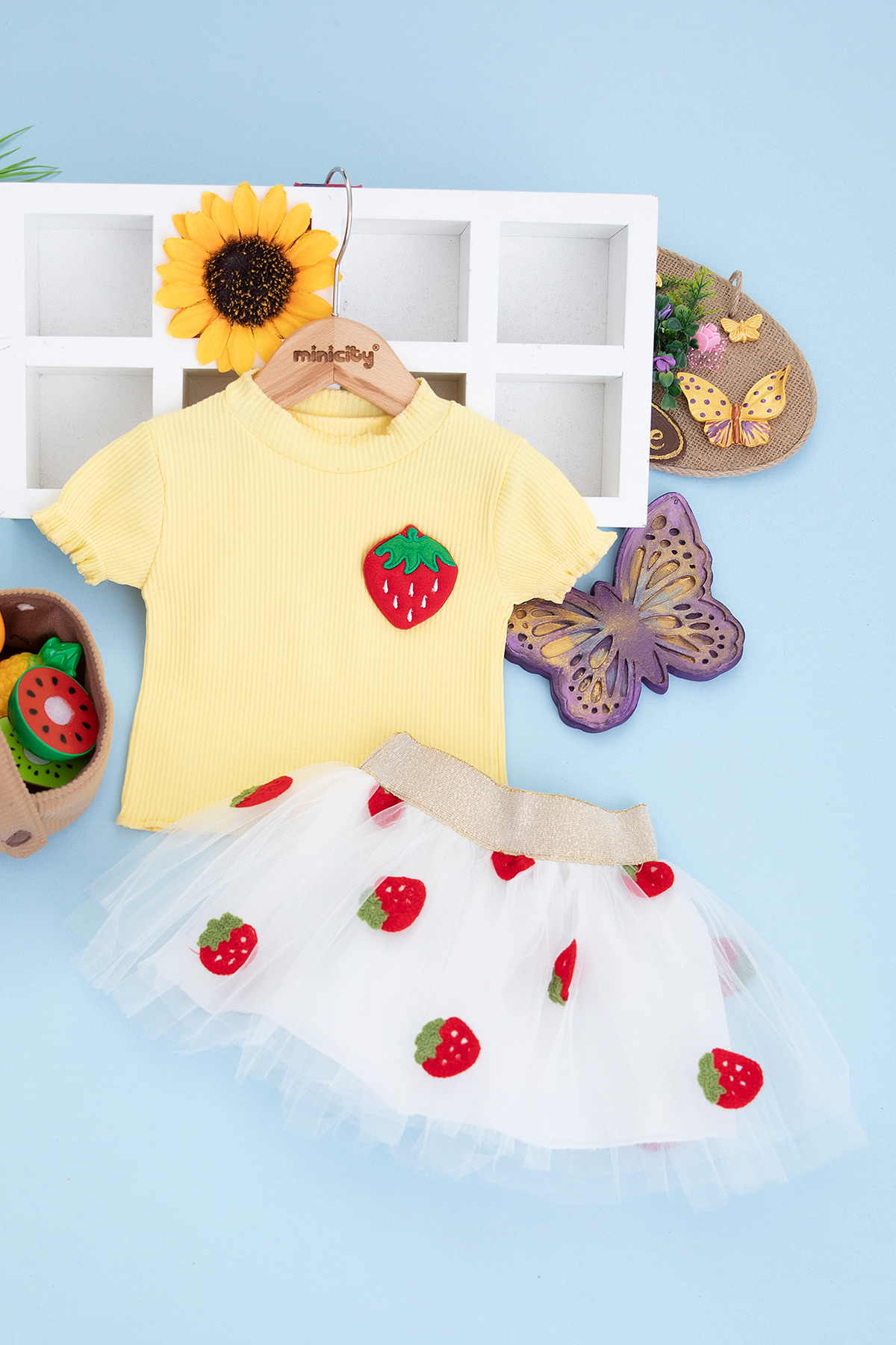 Kız Çocuk Çilekli Tütü Etekli Takım - 1304 (1-4 Yaş)