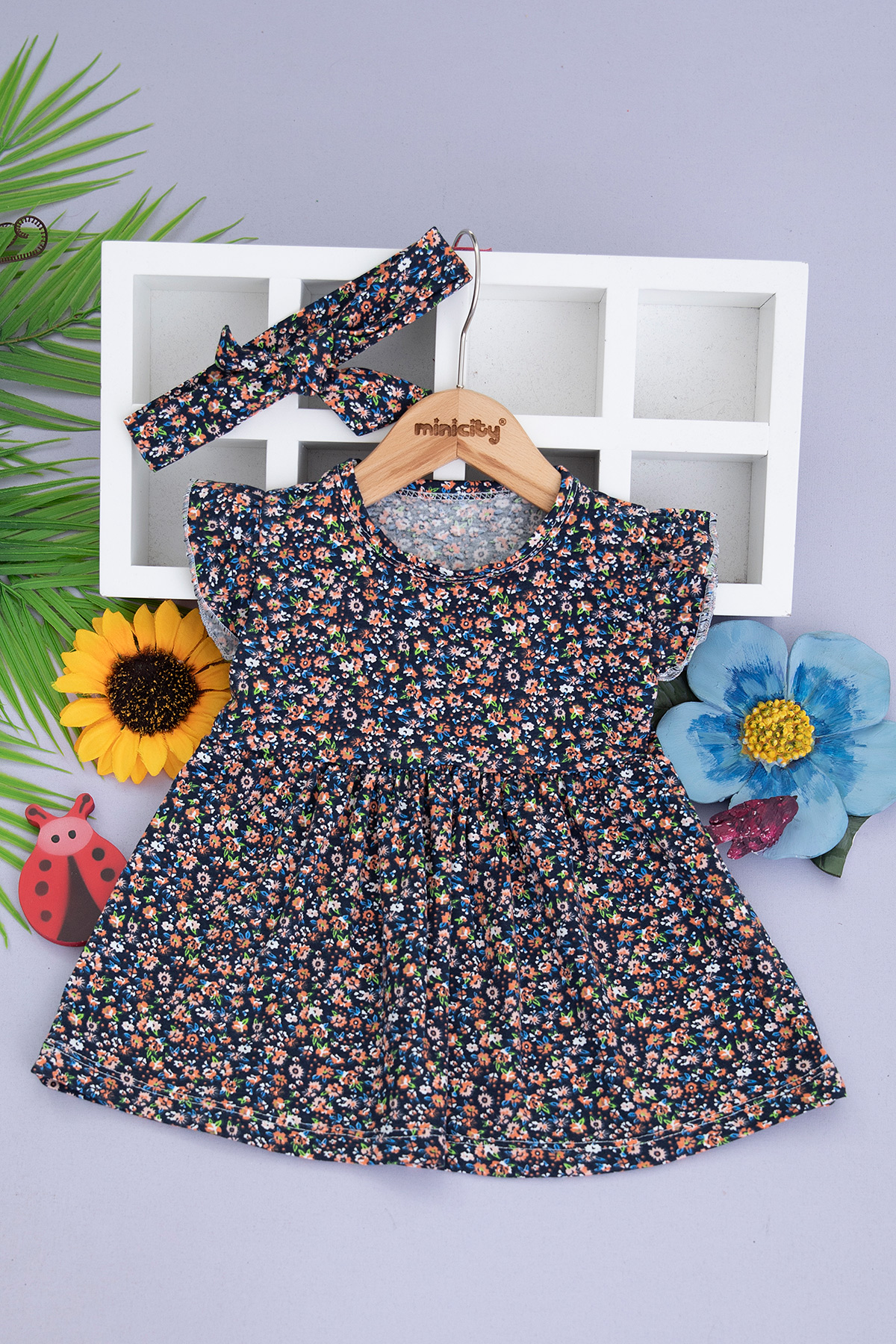 Kız Çocuk Çıtır Desenli Kolu Fırfırlı Elbise (1-4 Yaş)