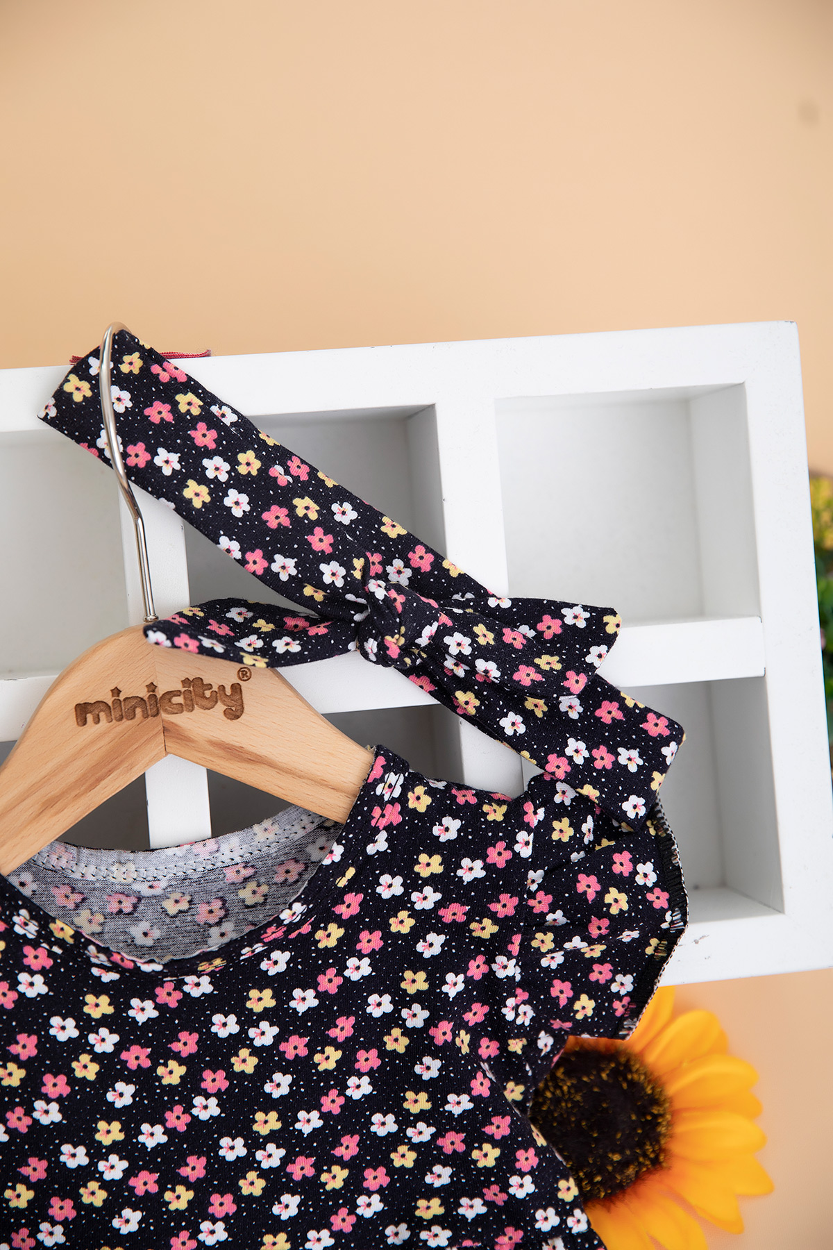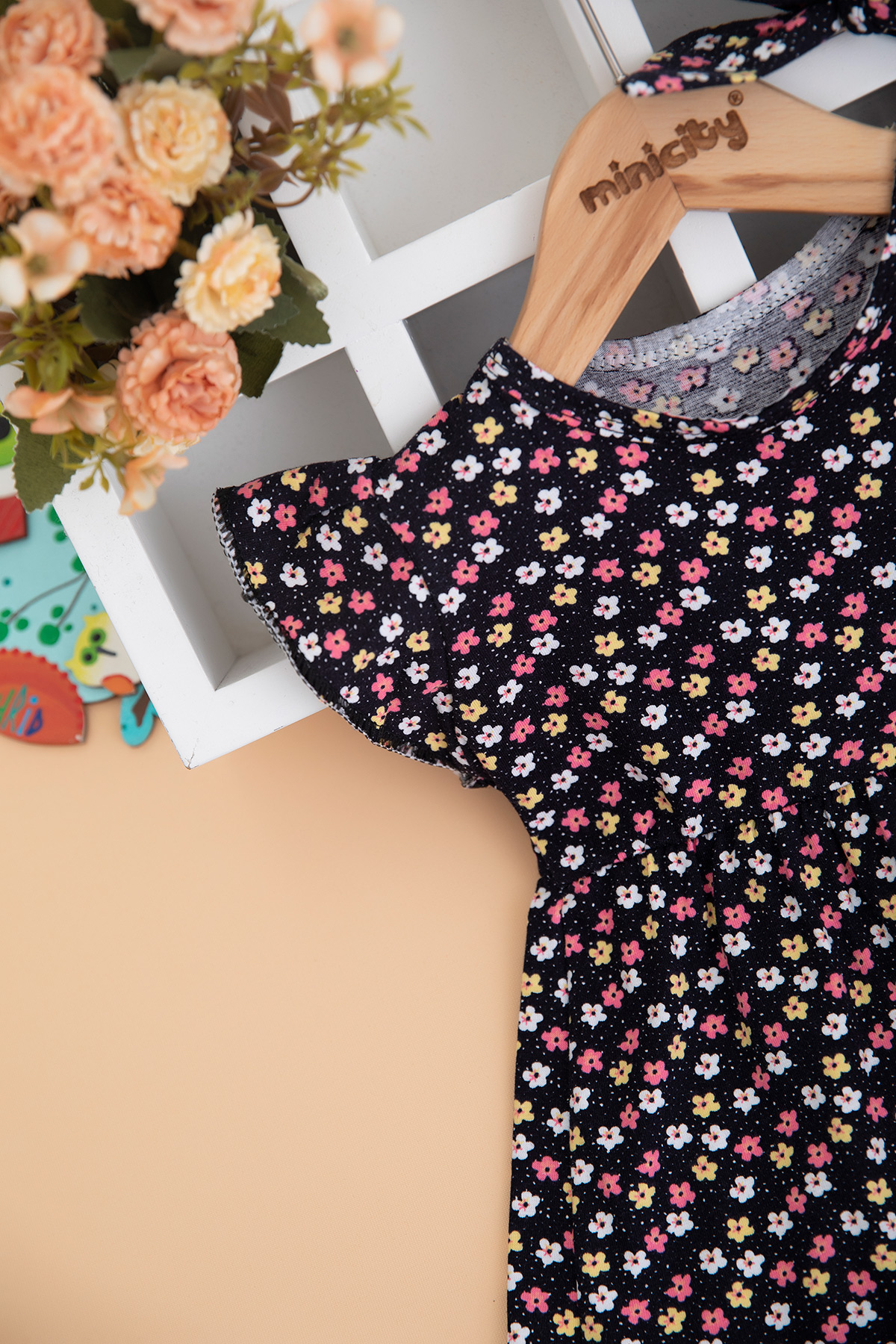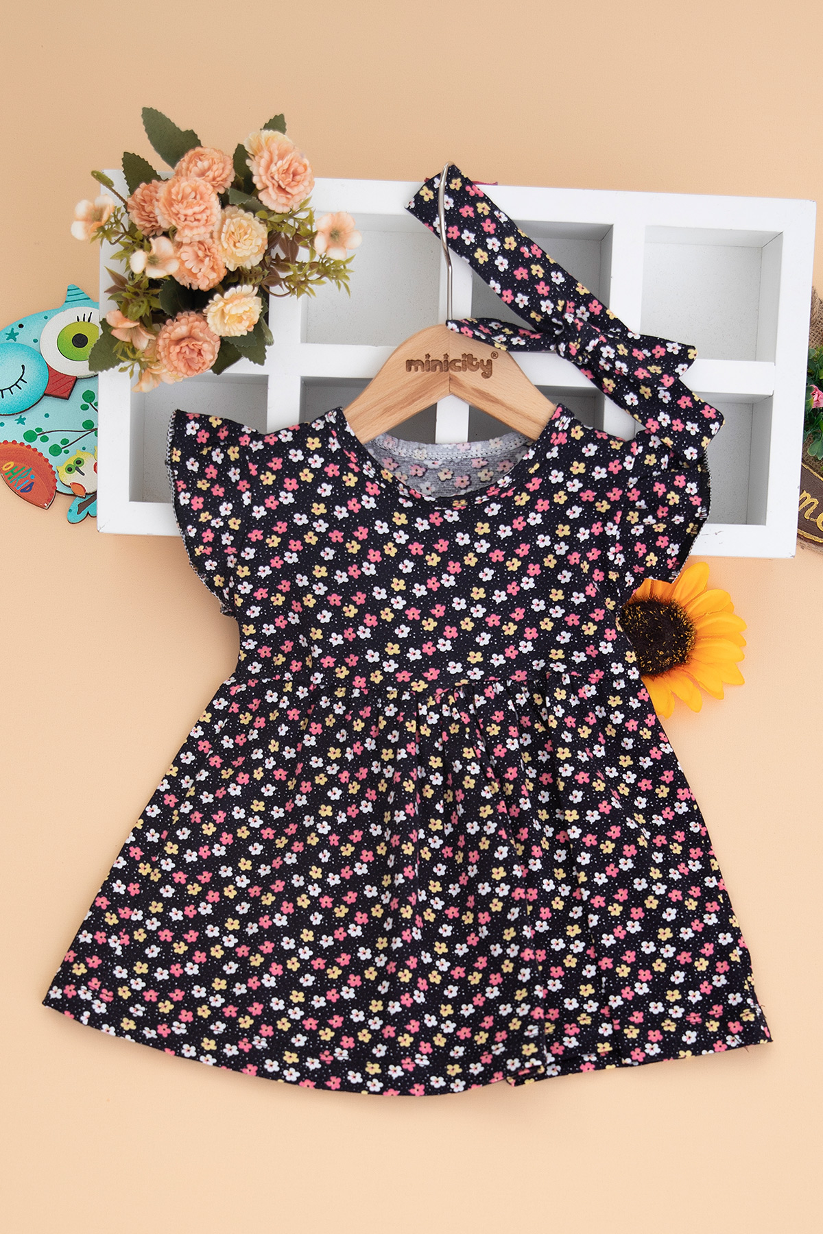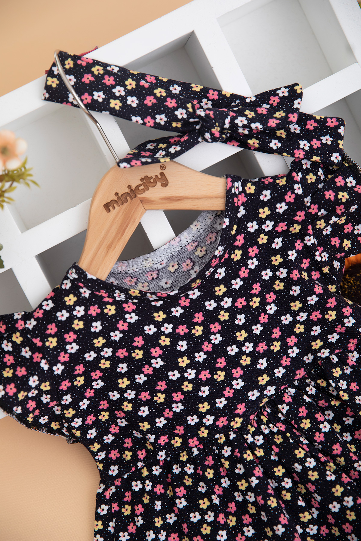 Kız Çocuk Çıtır Desenli Kolu Fırfırlı Elbise (1-4 Yaş)