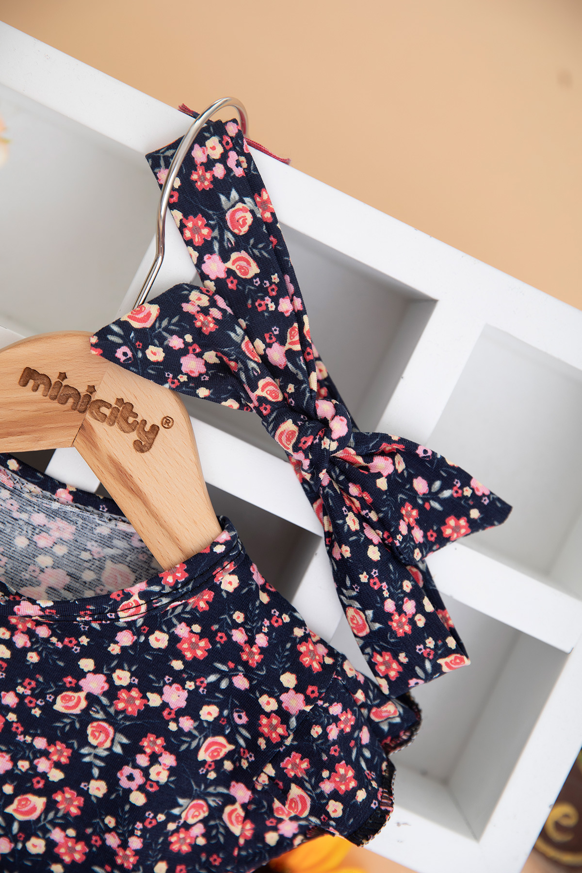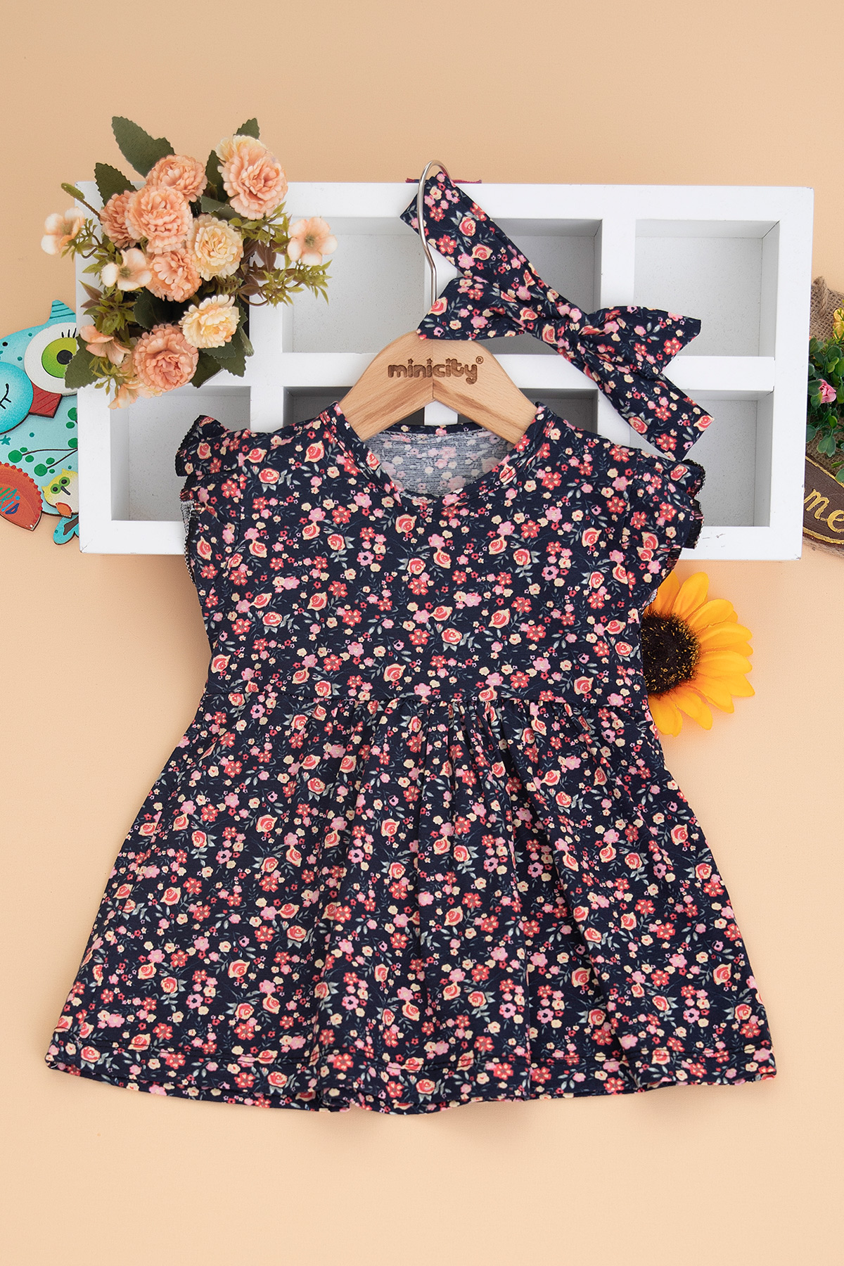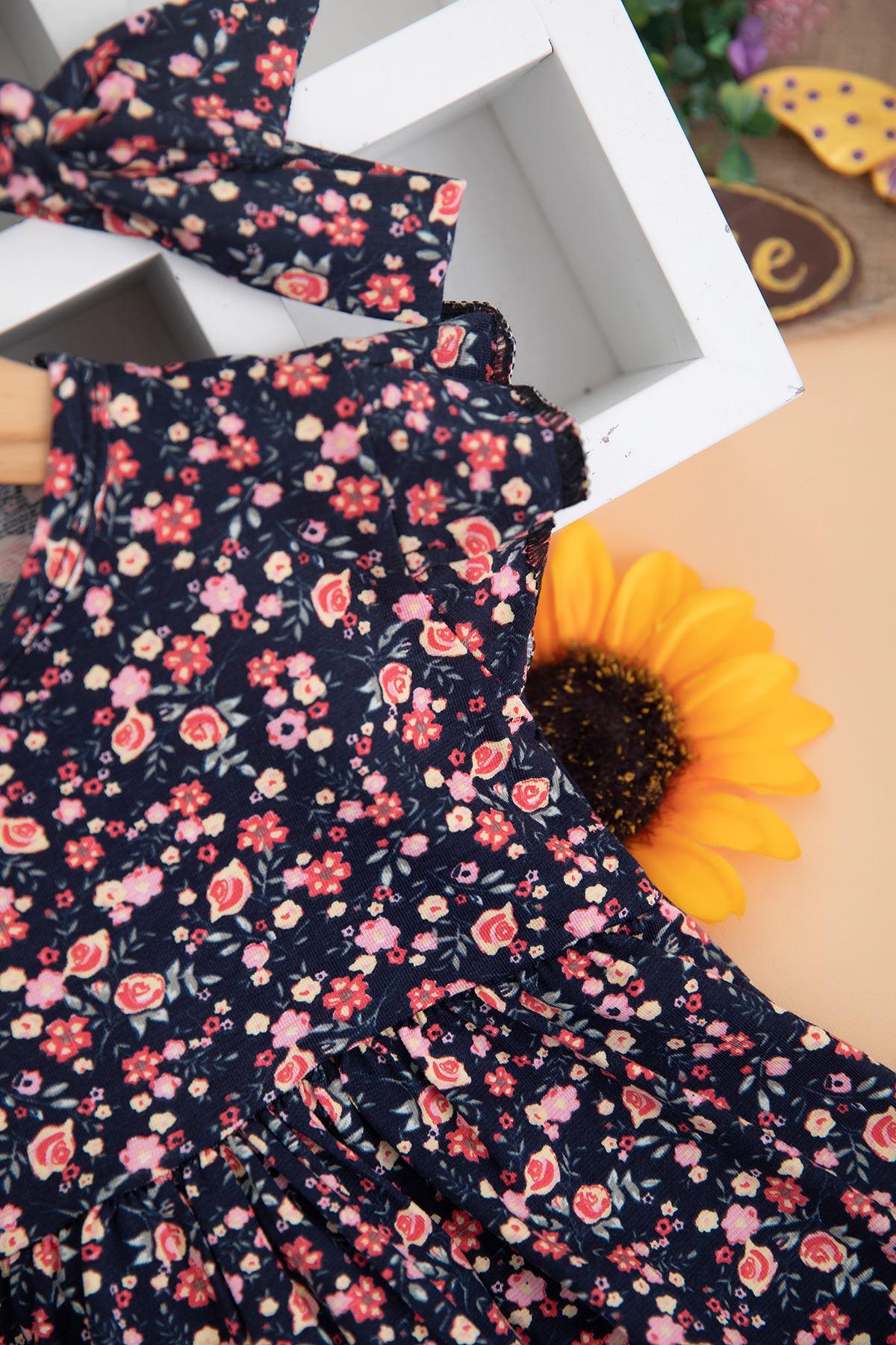Kız Çocuk Çıtır Desenli Kolu Fırfırlı Elbise (1-4 Yaş)