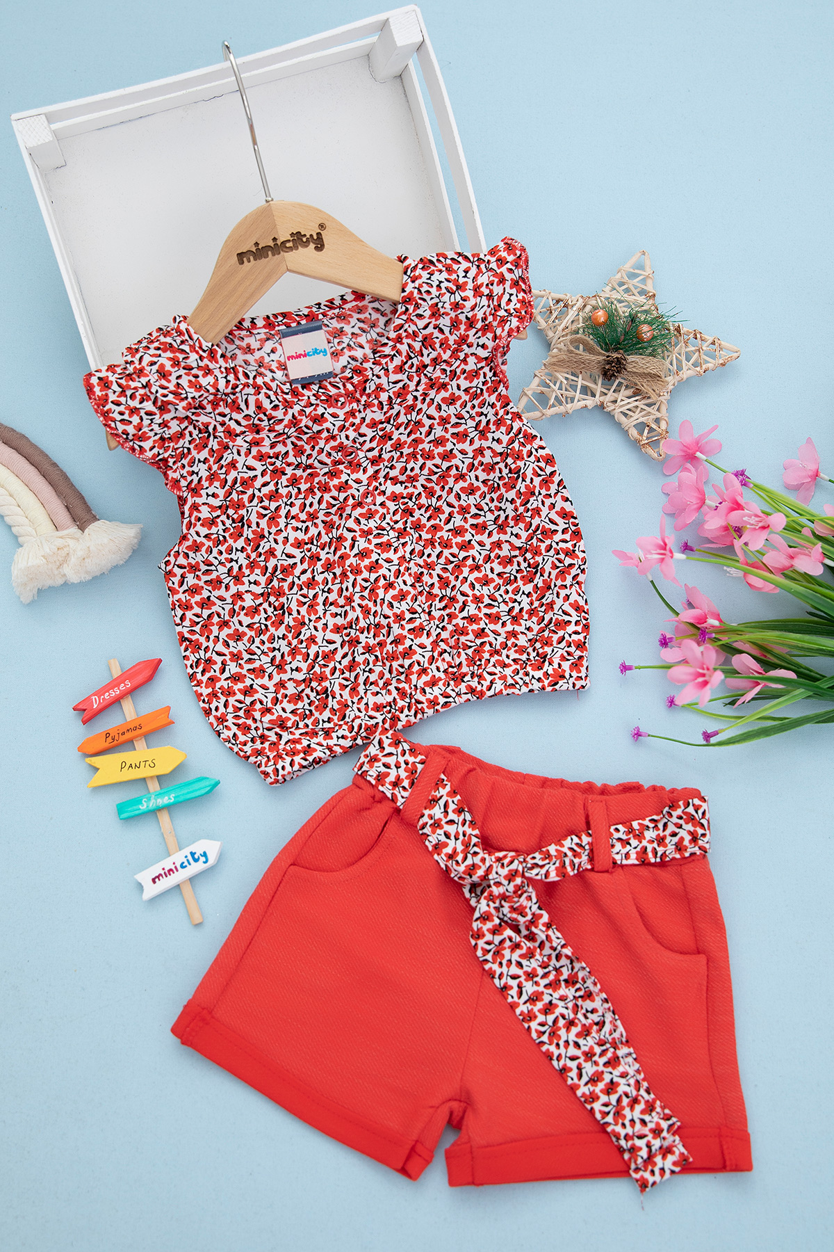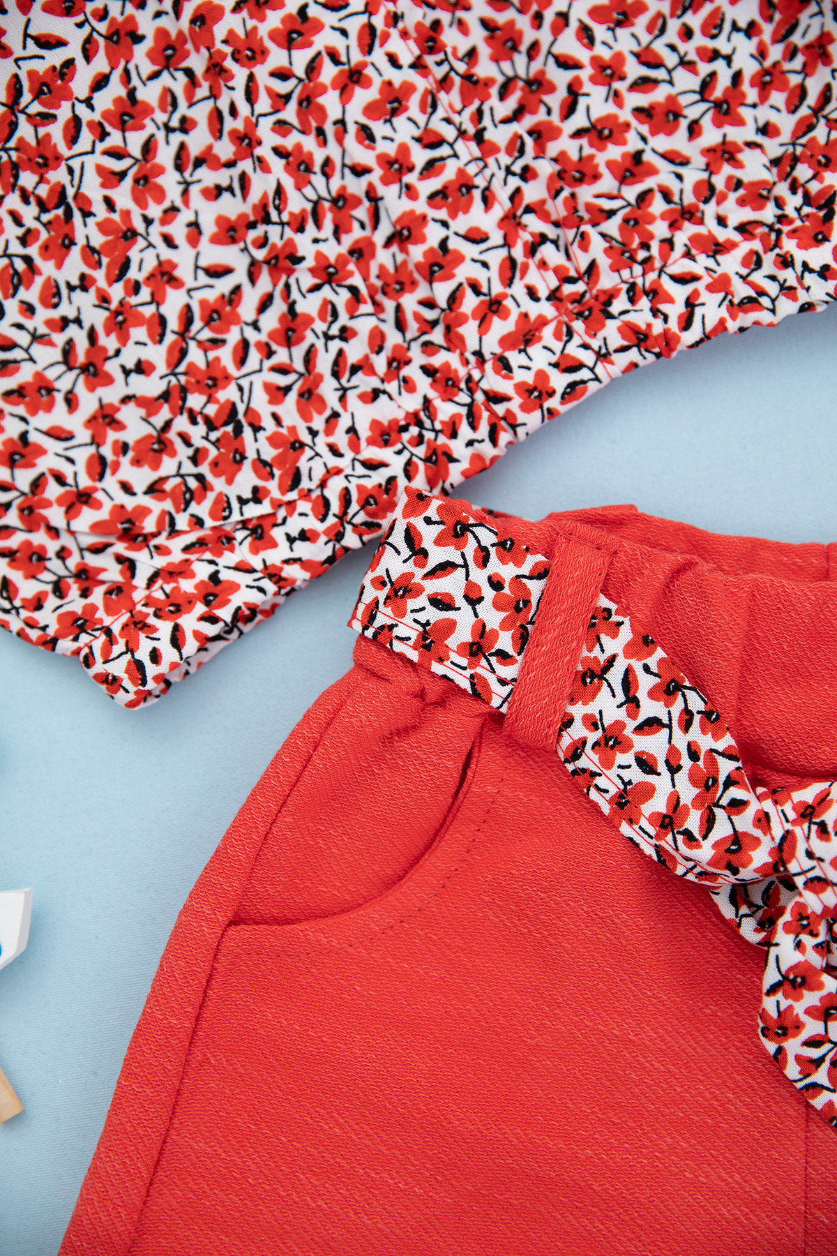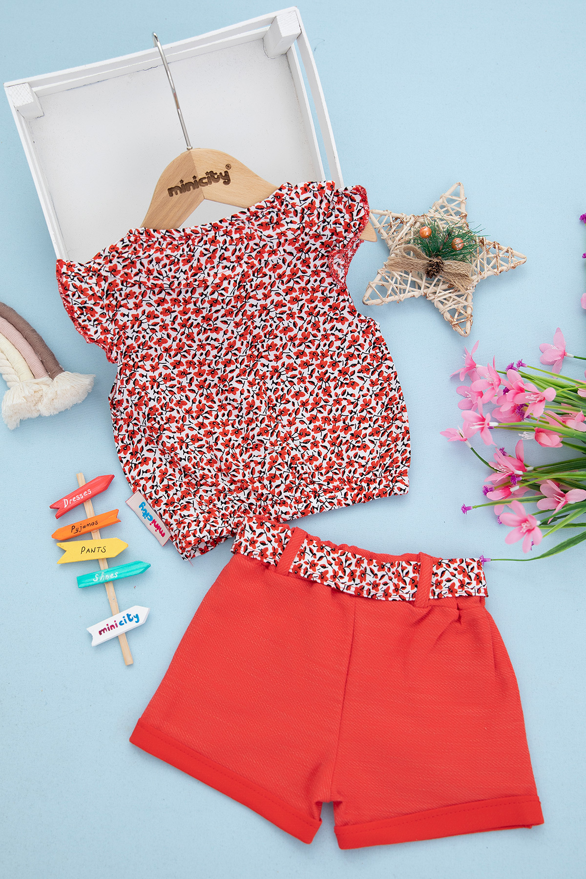 Kız Çocuk Çıtır Desenli Viskon Şortlu Takım - 22157 (3-6 Yaş)