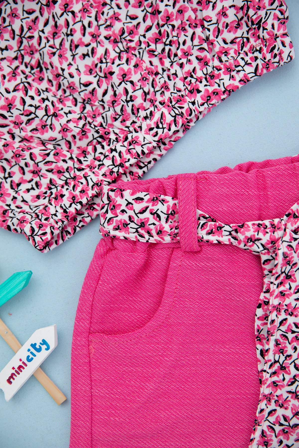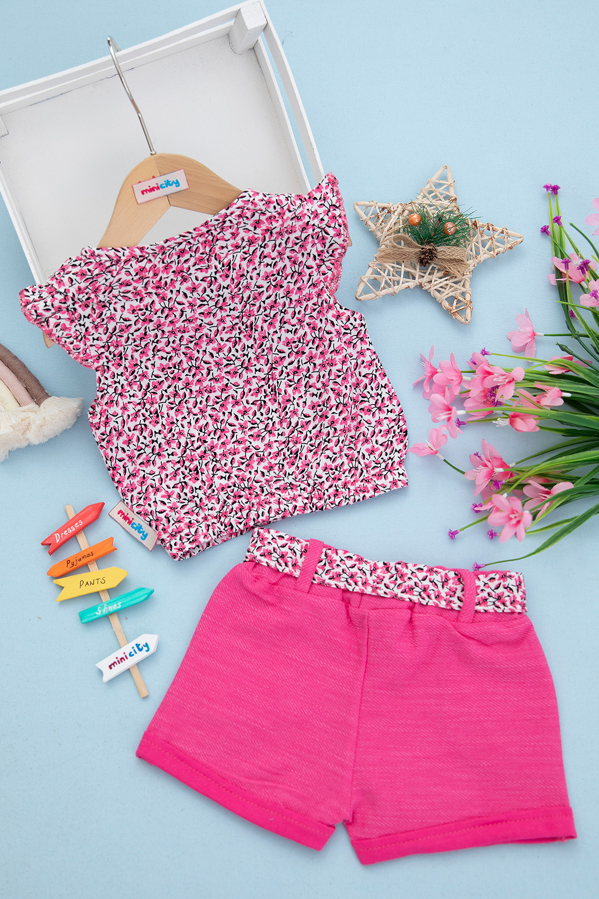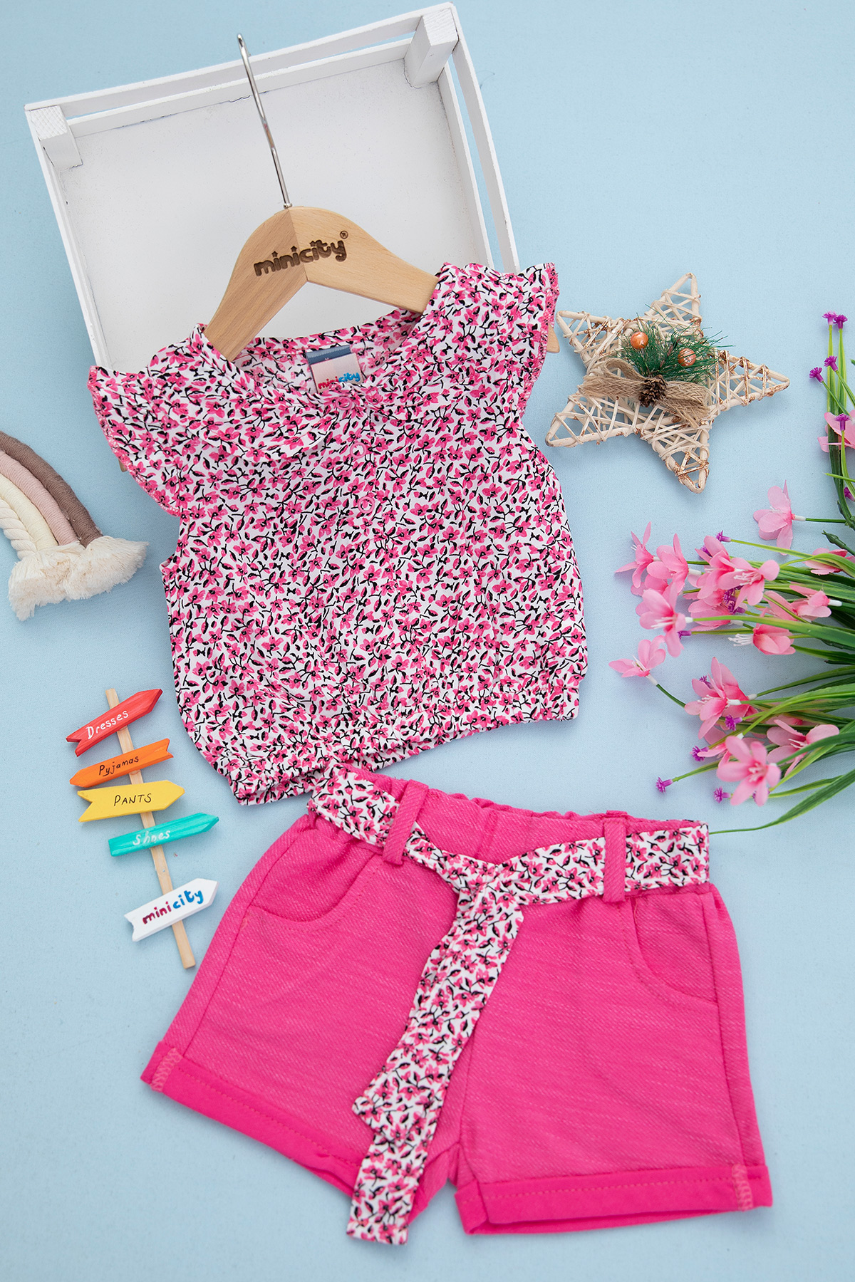 Kız Çocuk Çıtır Desenli Viskon Şortlu Takım - 22157 (3-6 Yaş)