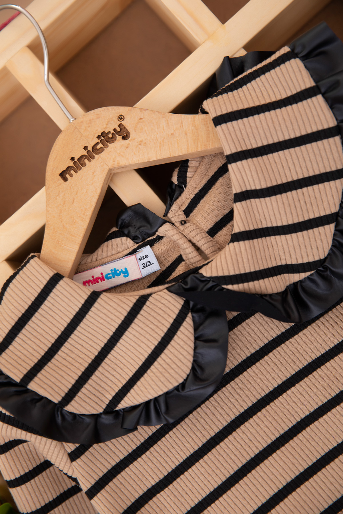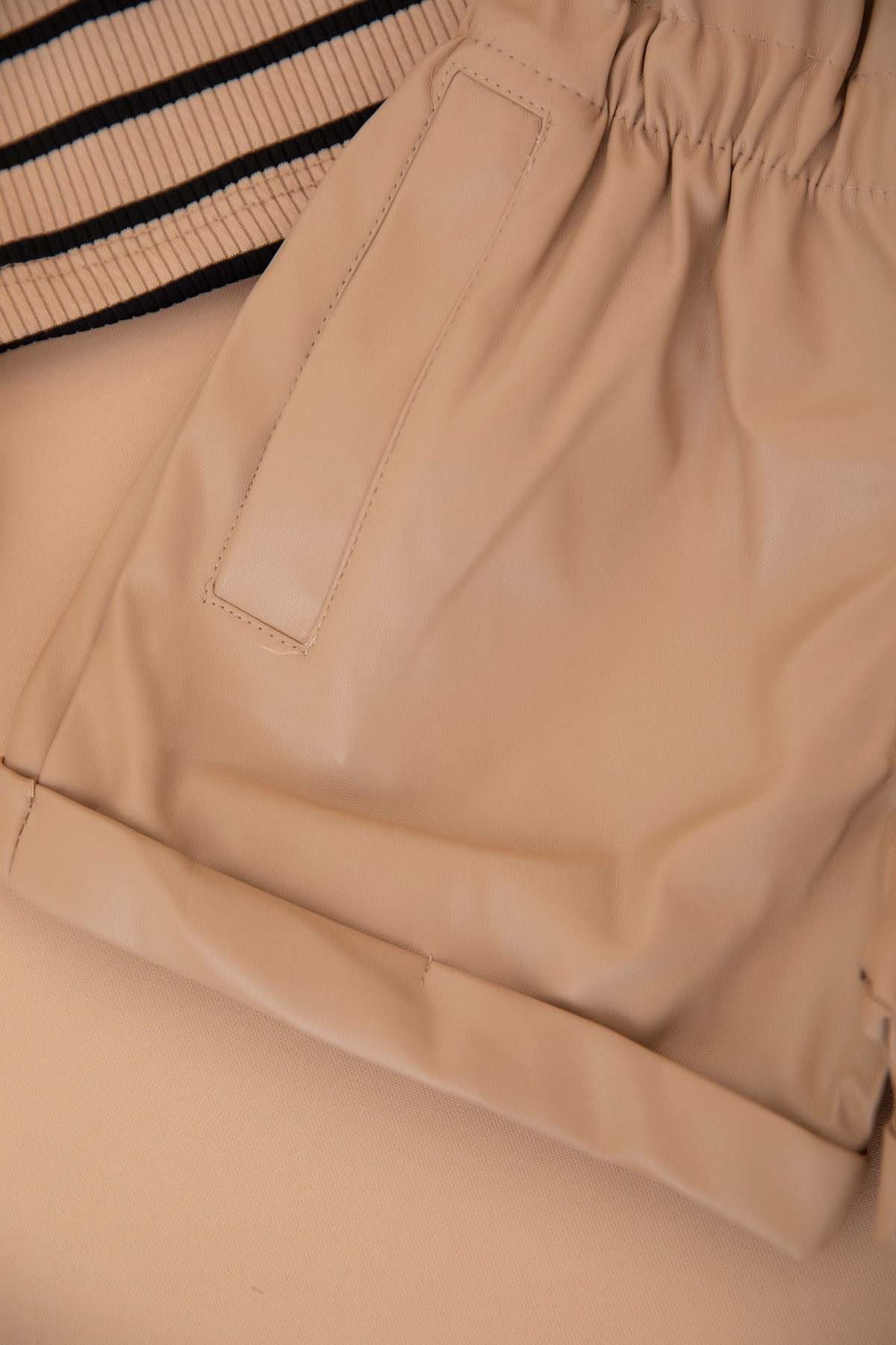 Kız Çocuk Çizgili Badi Deri Şort Takım - (2-8 Yaş)
