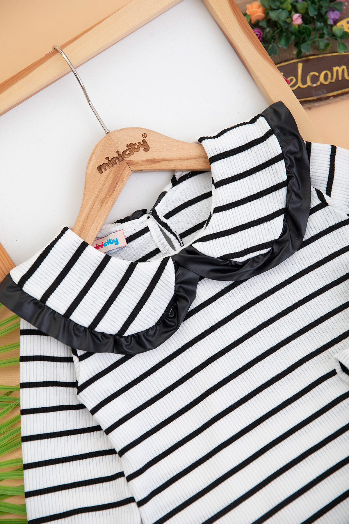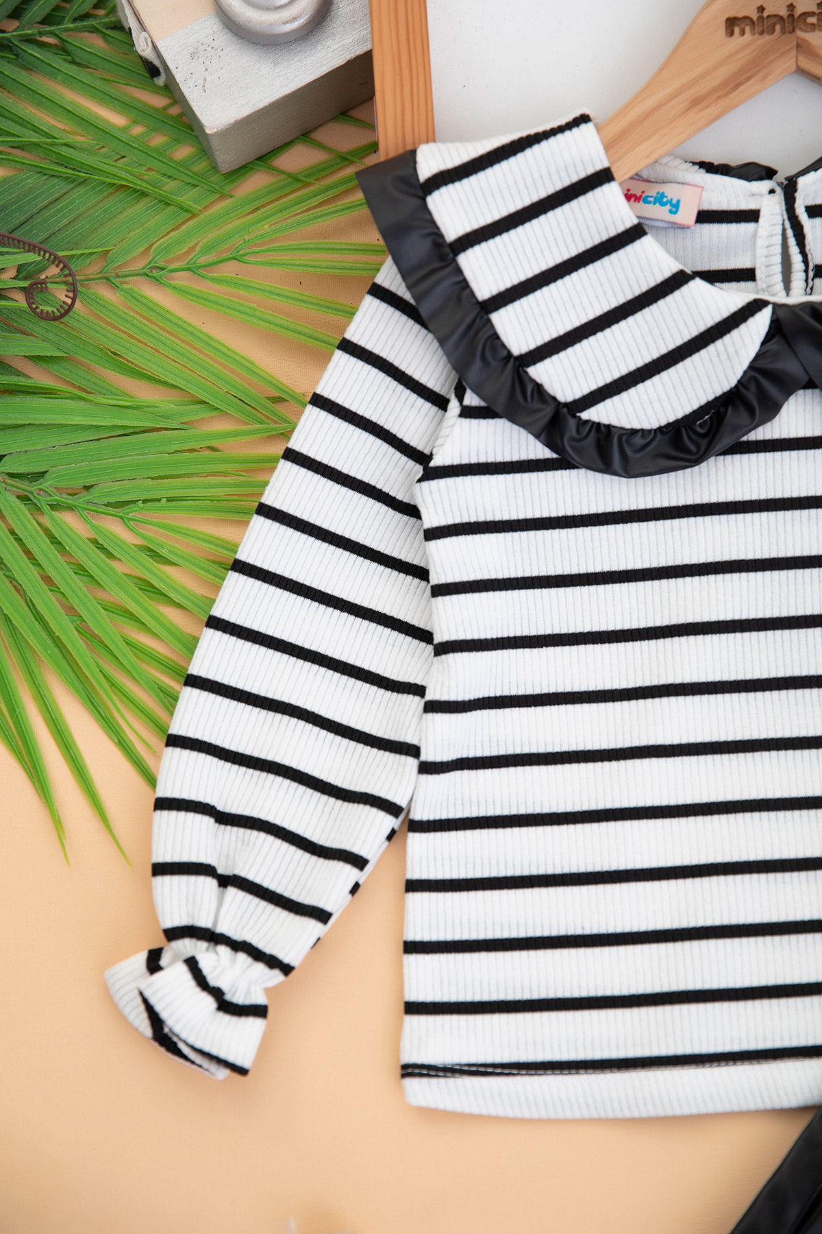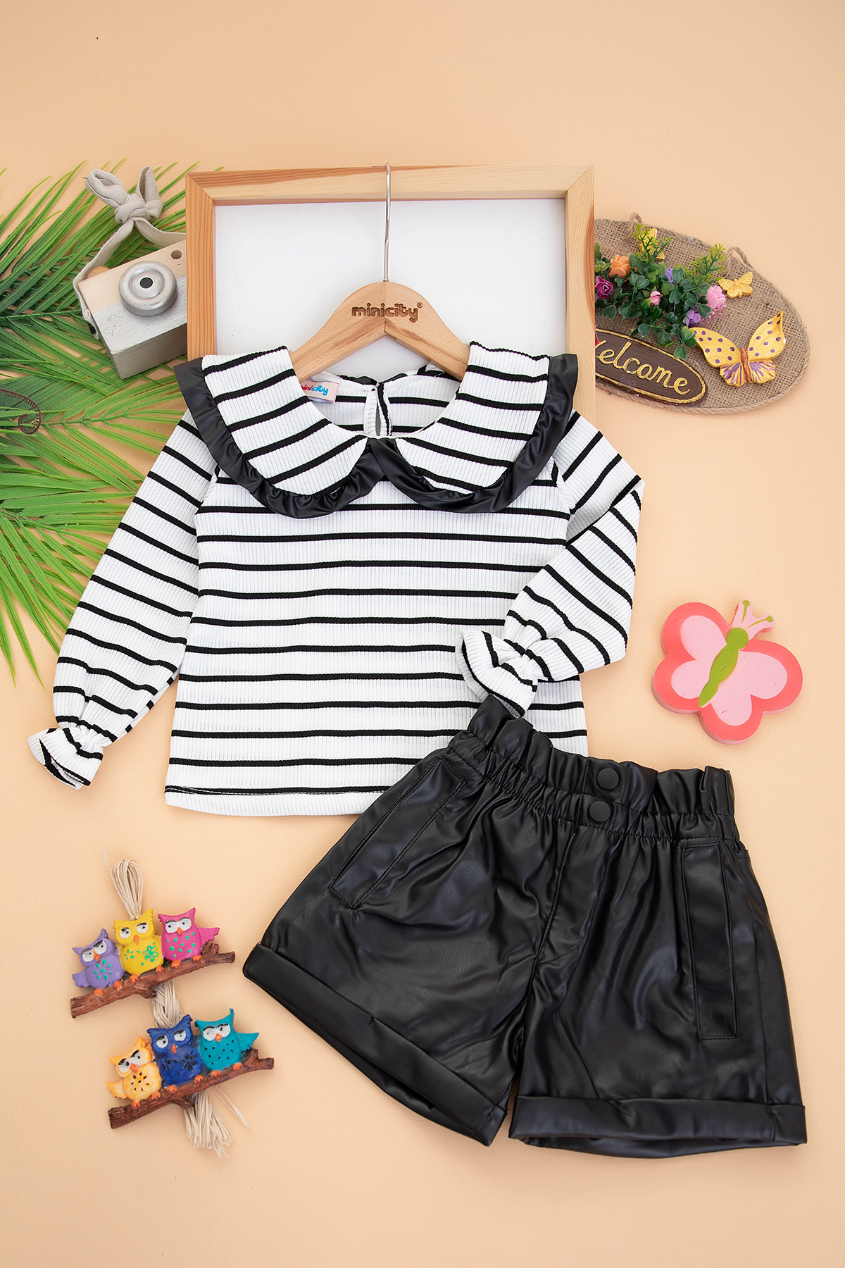 Kız Çocuk Çizgili Badi Deri Şort Takım - (2-8 Yaş)