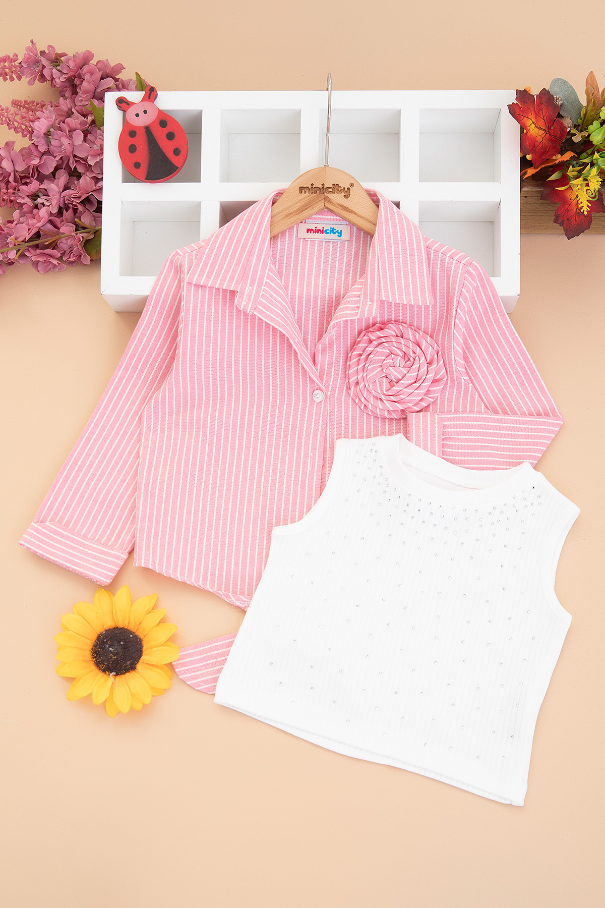 Kız Çocuk Çizgili Bağlamalı Badili Gömlek - 0587 (9-12 Yaş)