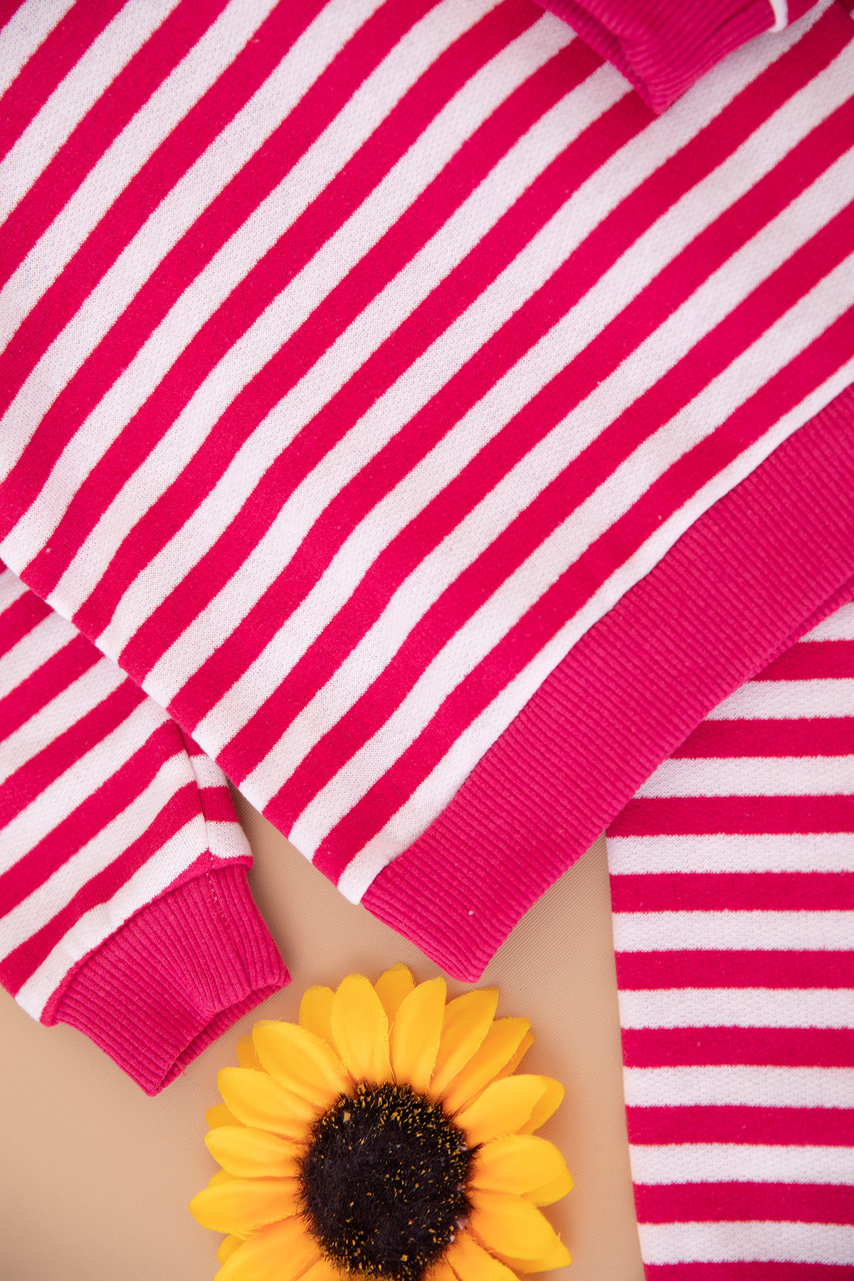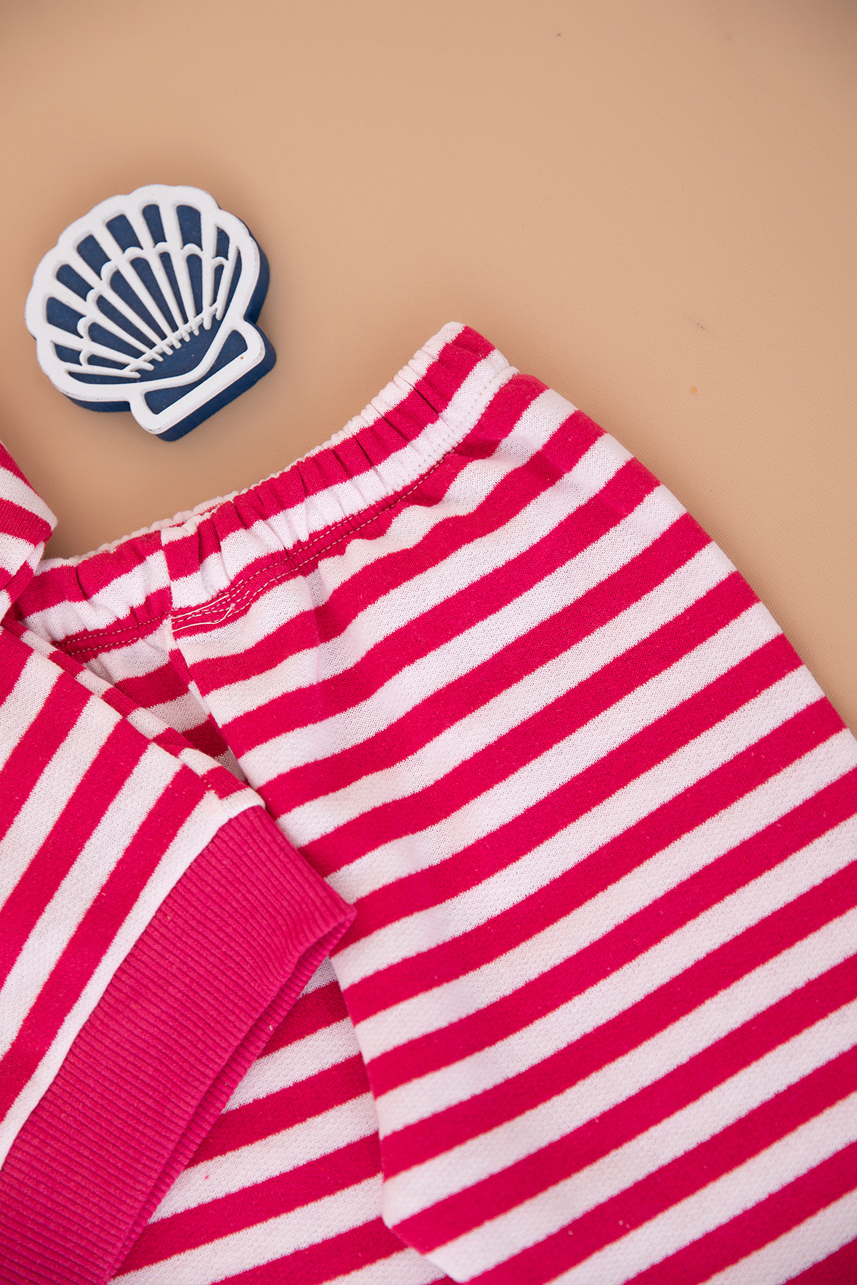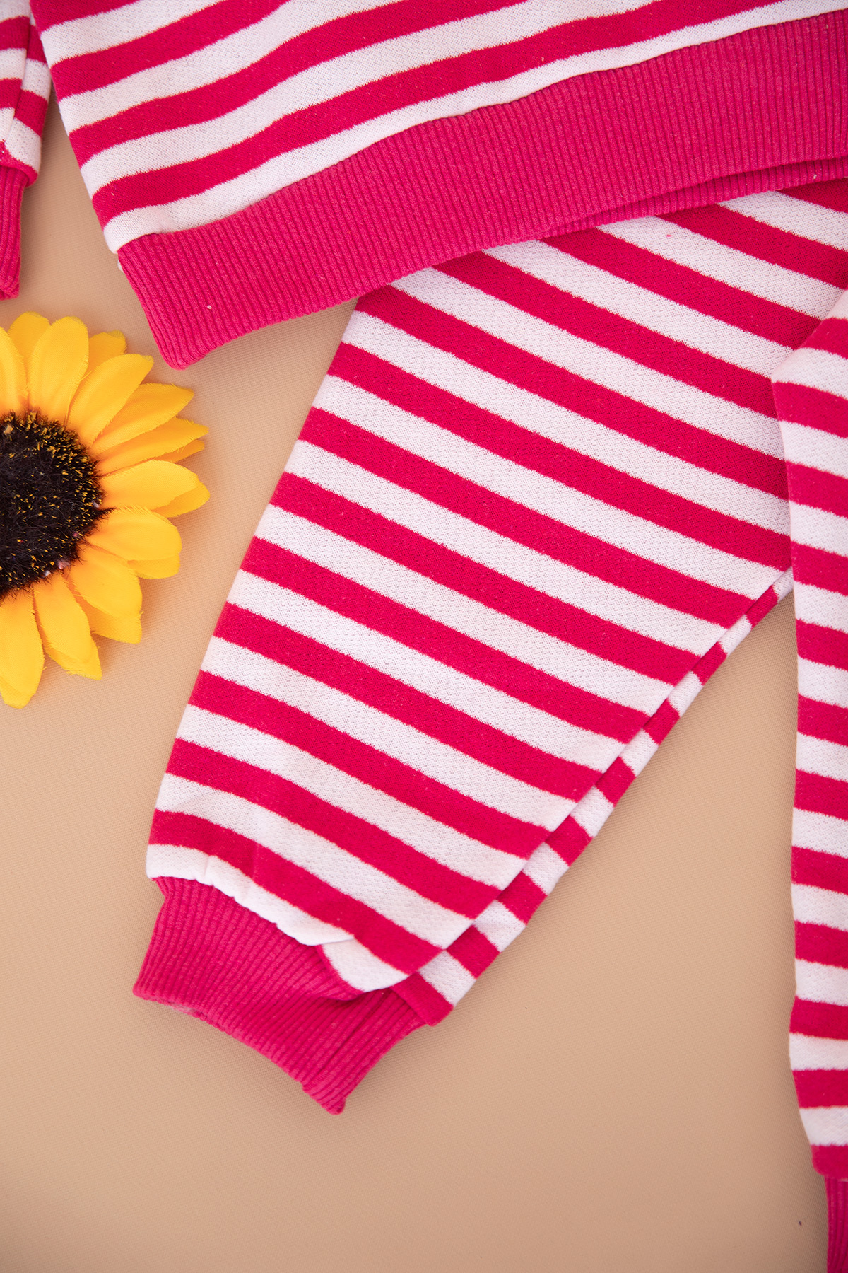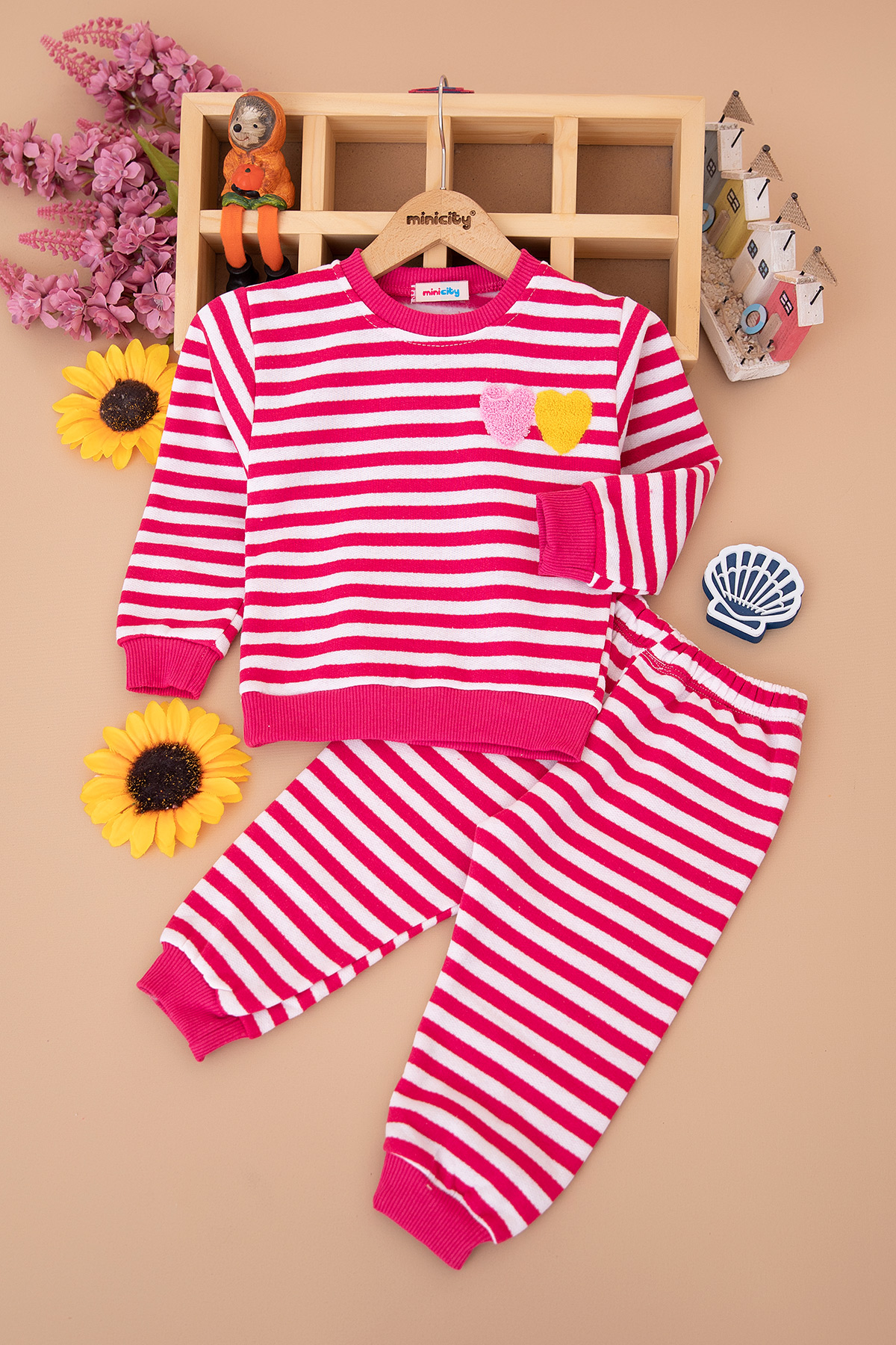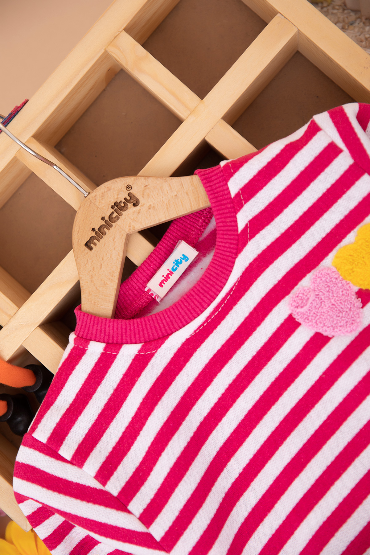 Kız Çocuk Çizgili Baskılı Nakışlı Şardonlu Takım (2-5 Yaş)