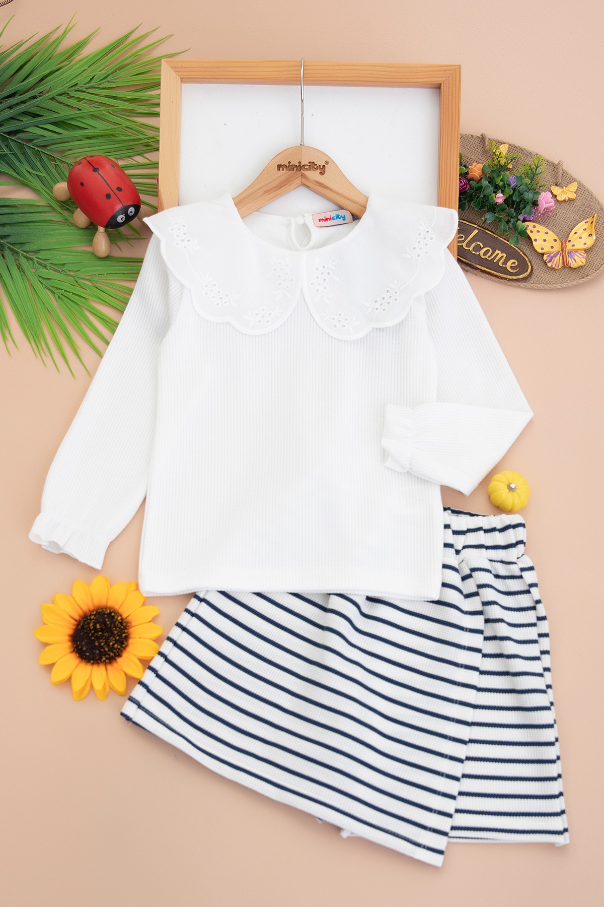 Kız Çocuk Çizgili Burgulu Takım - 3740 (6-10 Yaş)