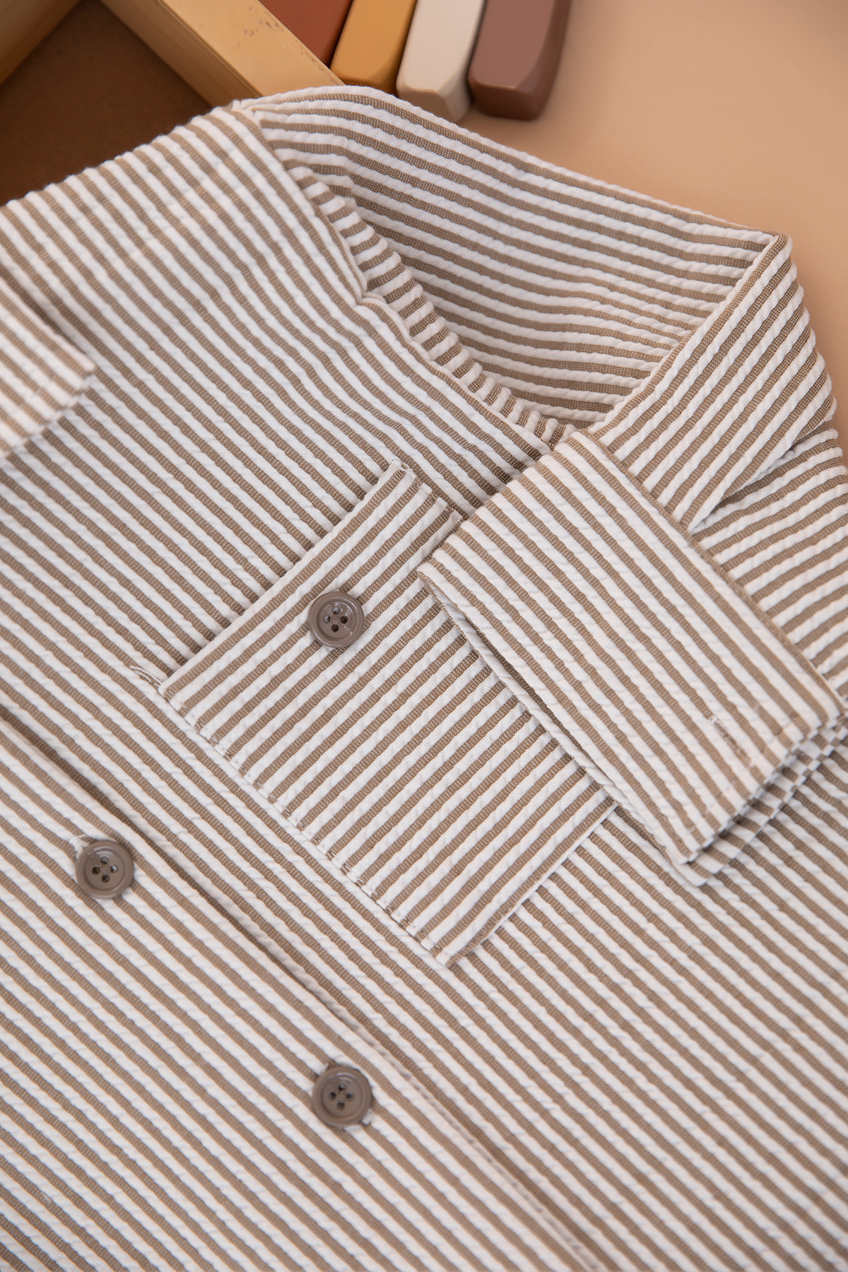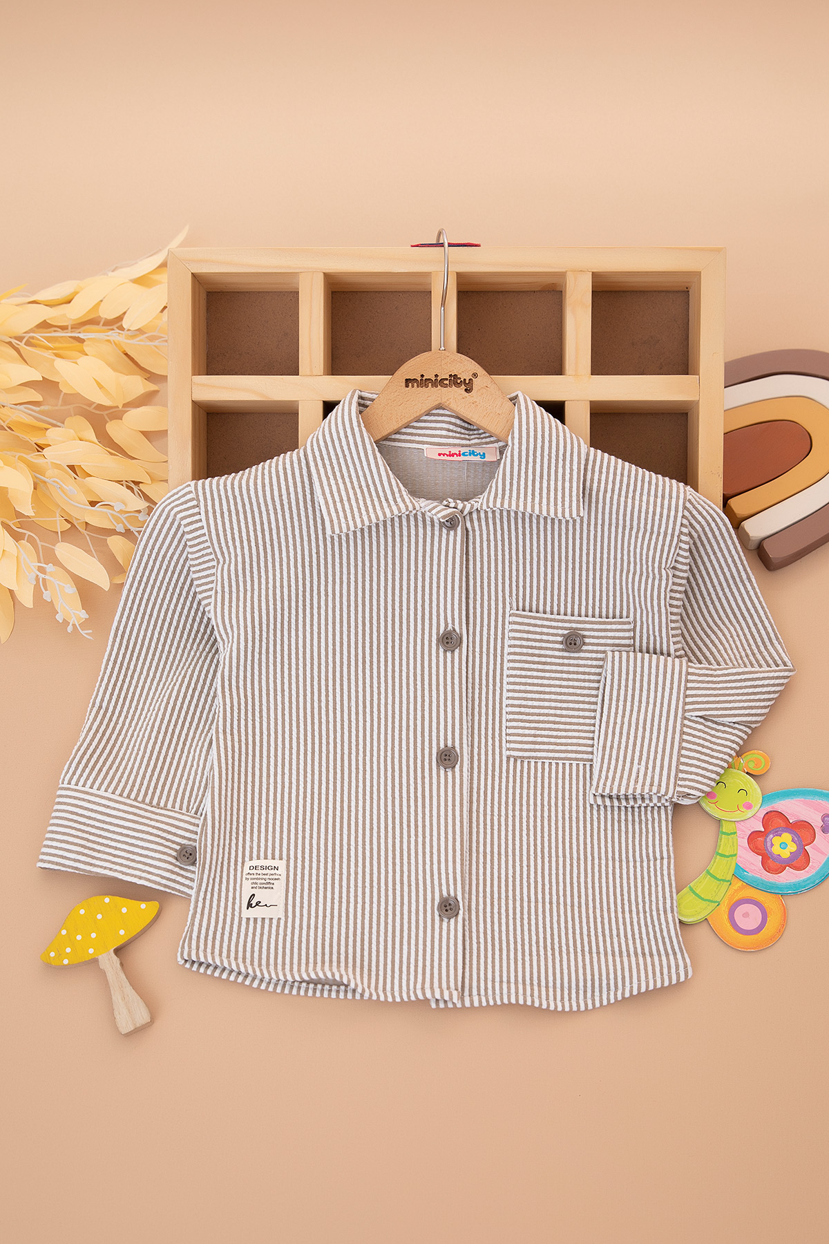 Kız Çocuk Çizgili Cepli Gömlek - 7006 (3-12 Yaş)