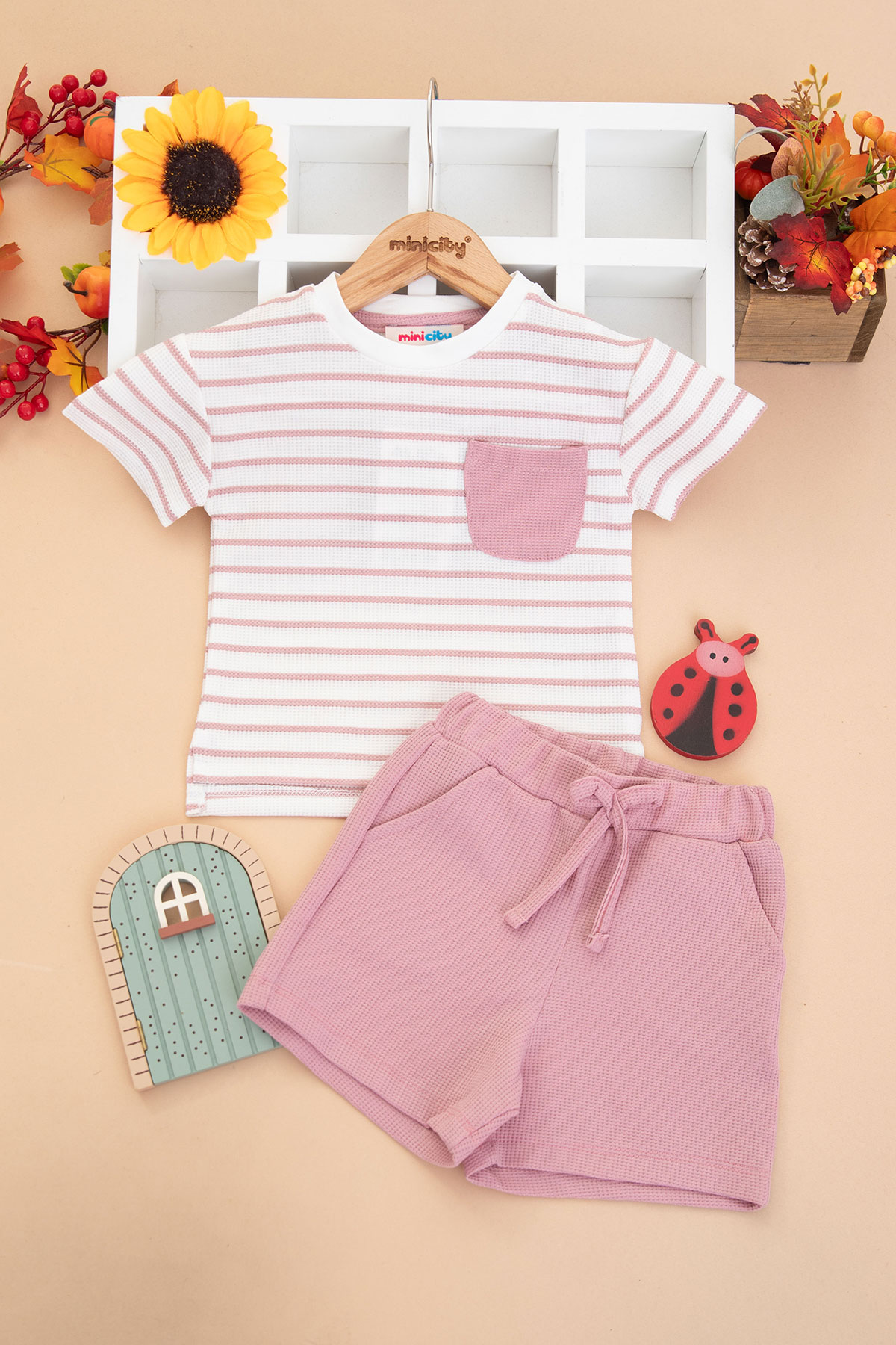 Kız Çocuk Çizgili Cepli Şortlu Takım 525796 (2-5 Yaş)