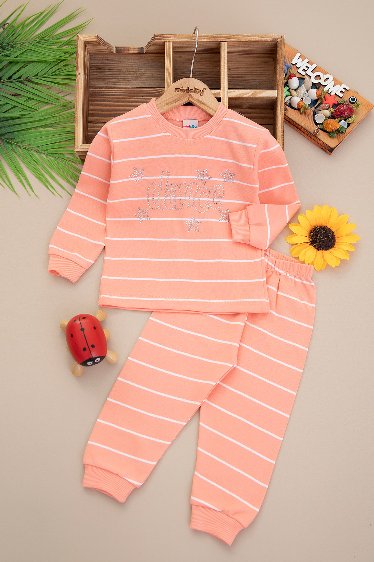 Kız Çocuk Çizgili Dance Taş Baskılı Takım - 5016 (4-6 Yaş)