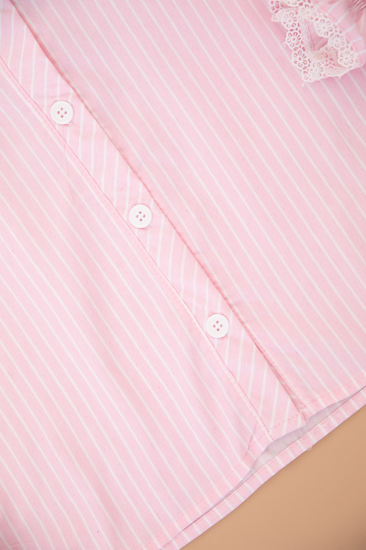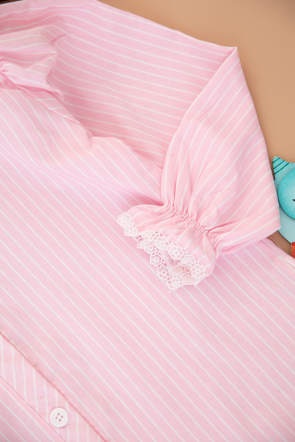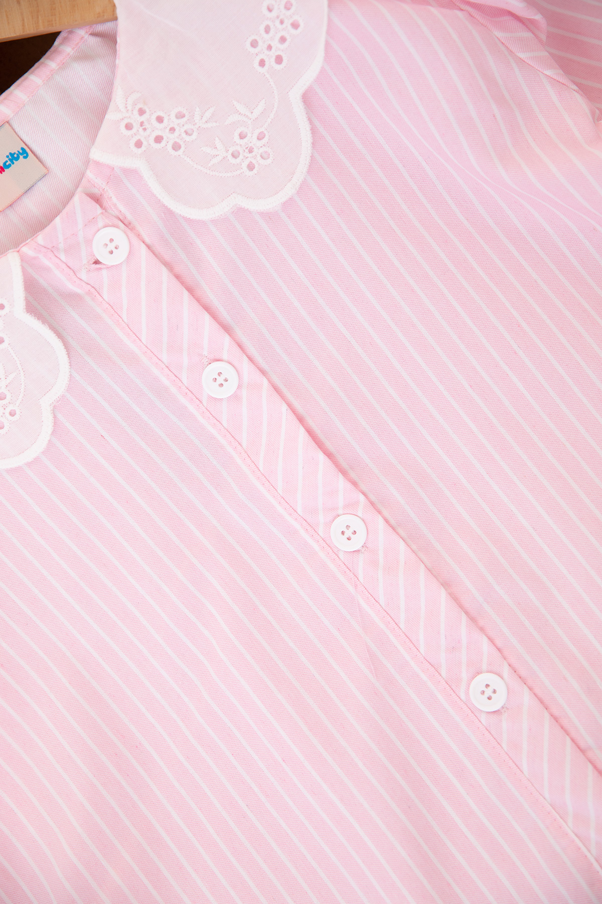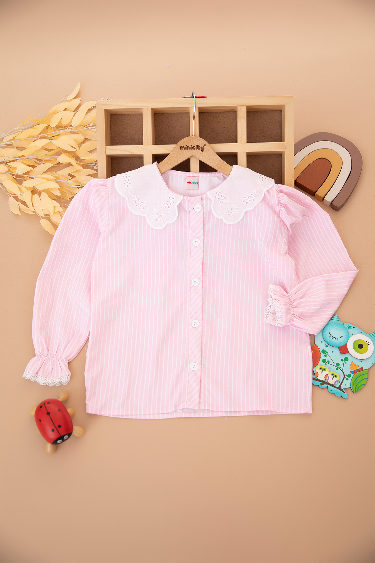 Kız Çocuk Çizgili Dantel Yakalı Gömlek - 12038 (9-13 Yaş)