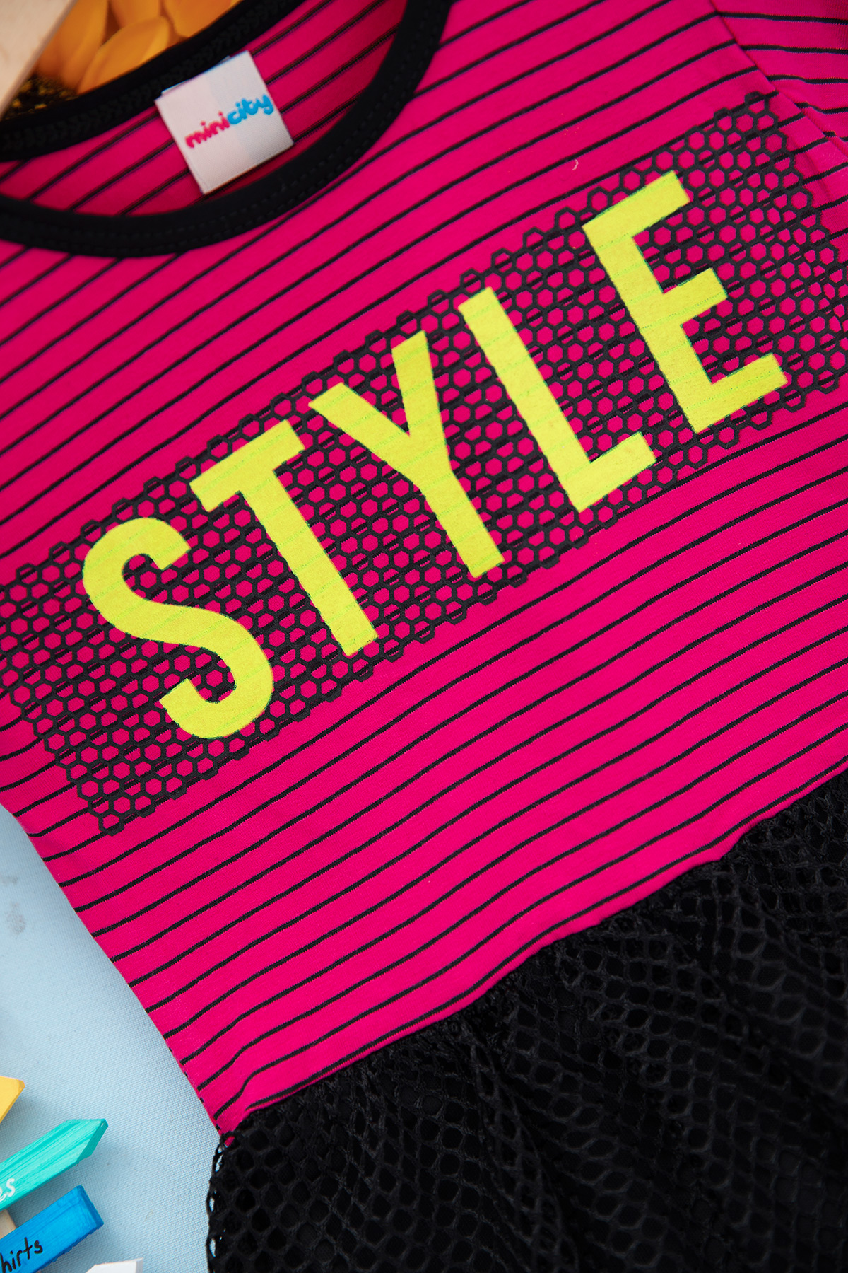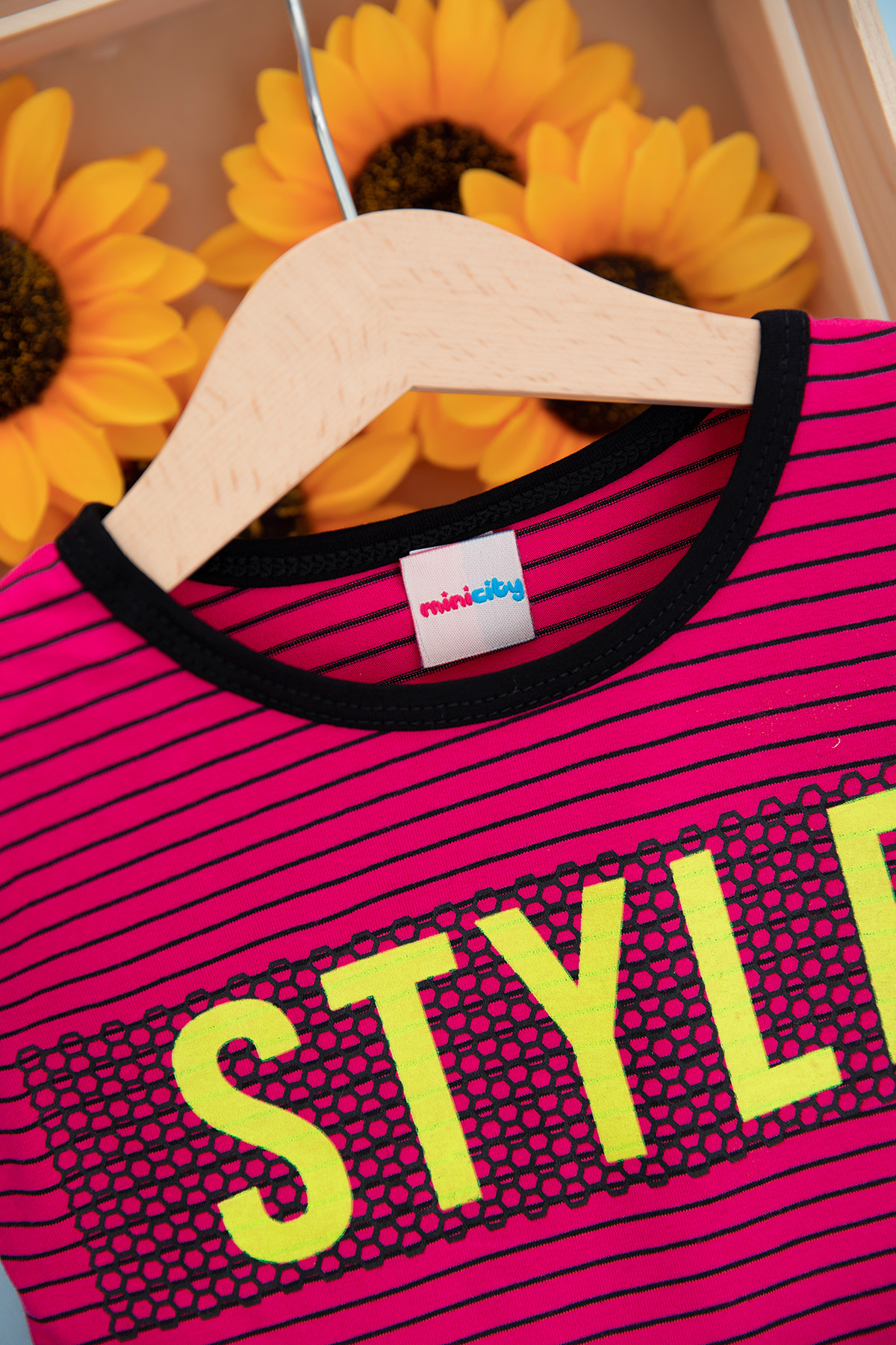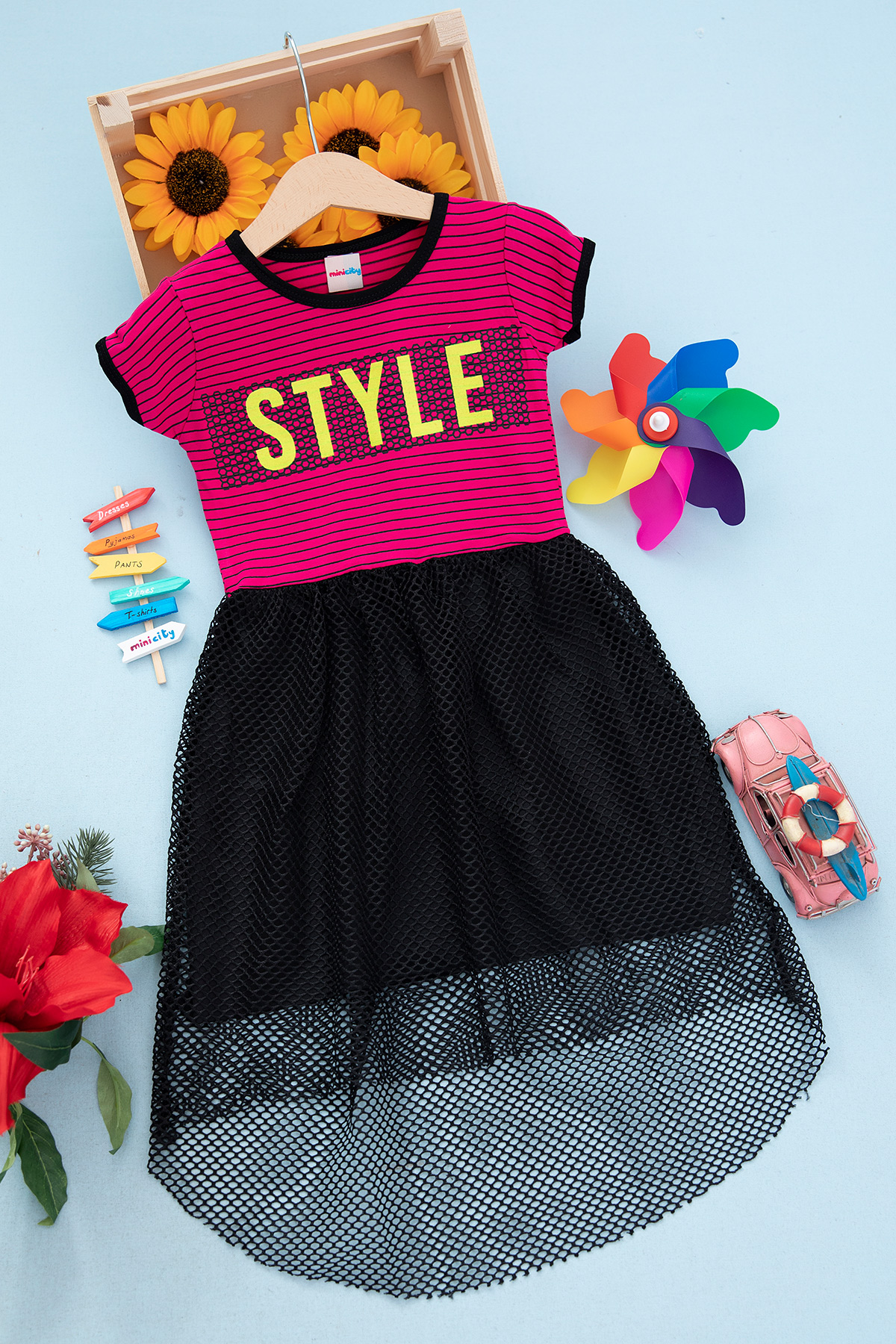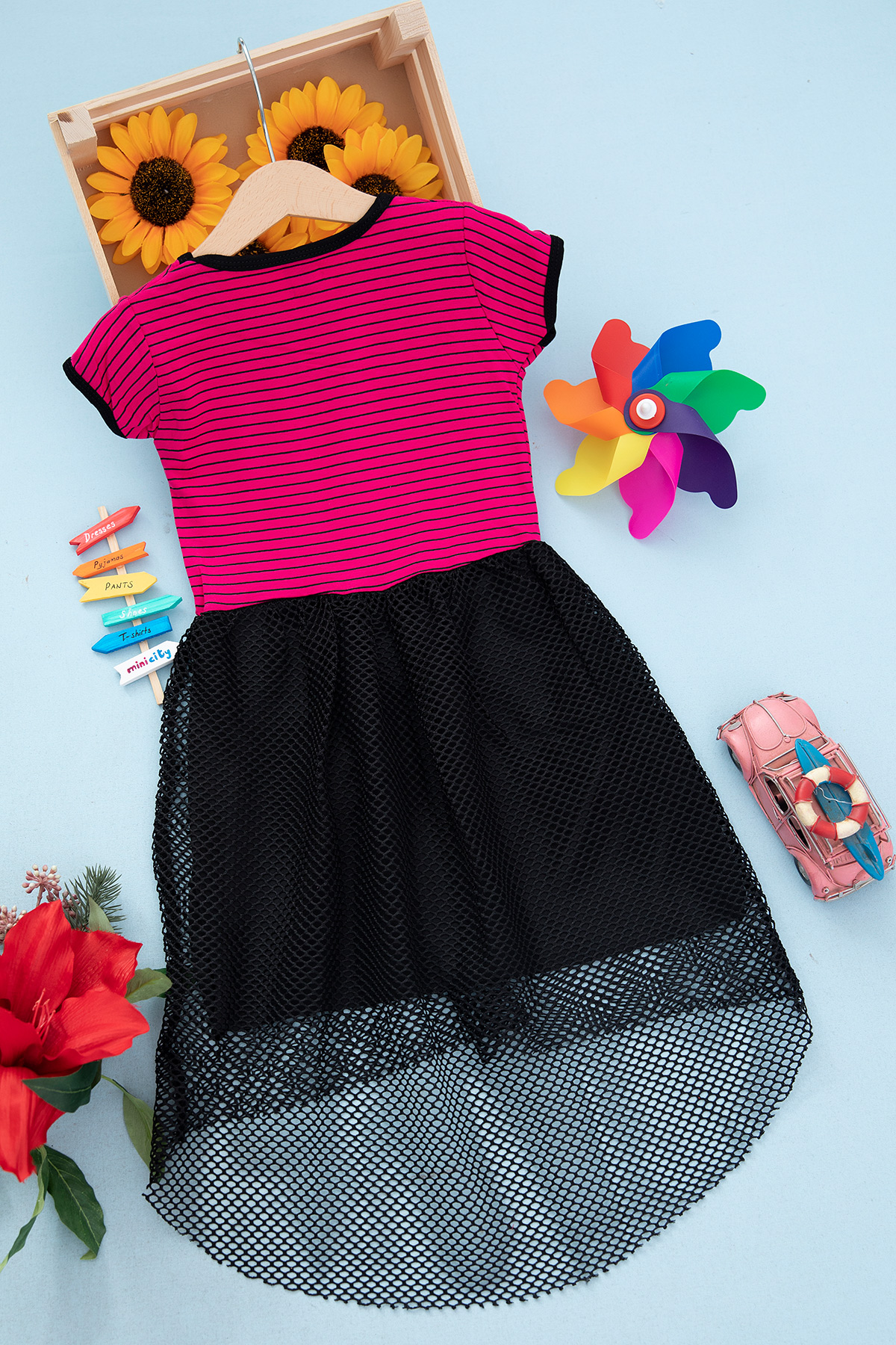 Kız Çocuk Çizgili Fileli Elbise - M-3 (6-10 Yaş)