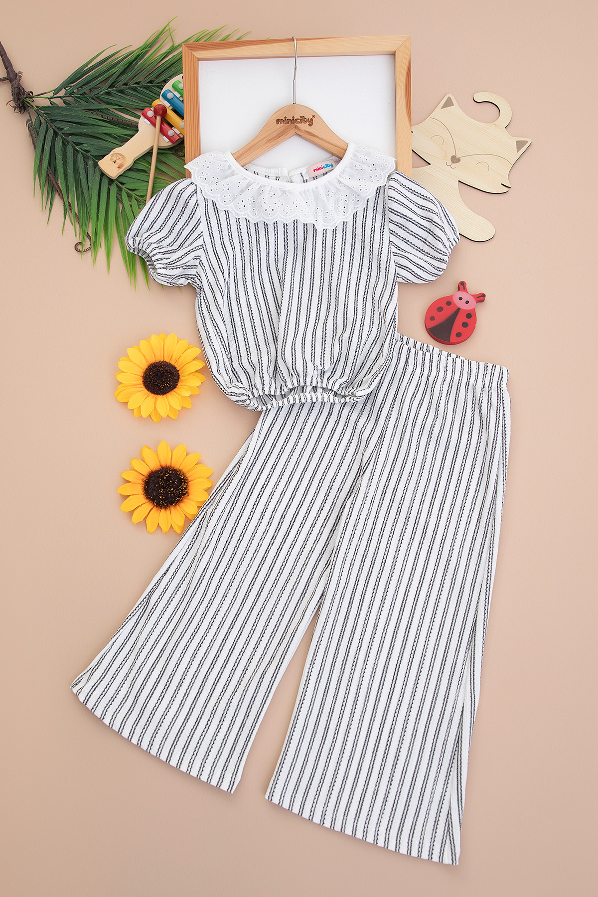 Kız Çocuk Çizgili Fisto Yaka Takım - 2789 (3-12 Yaş)