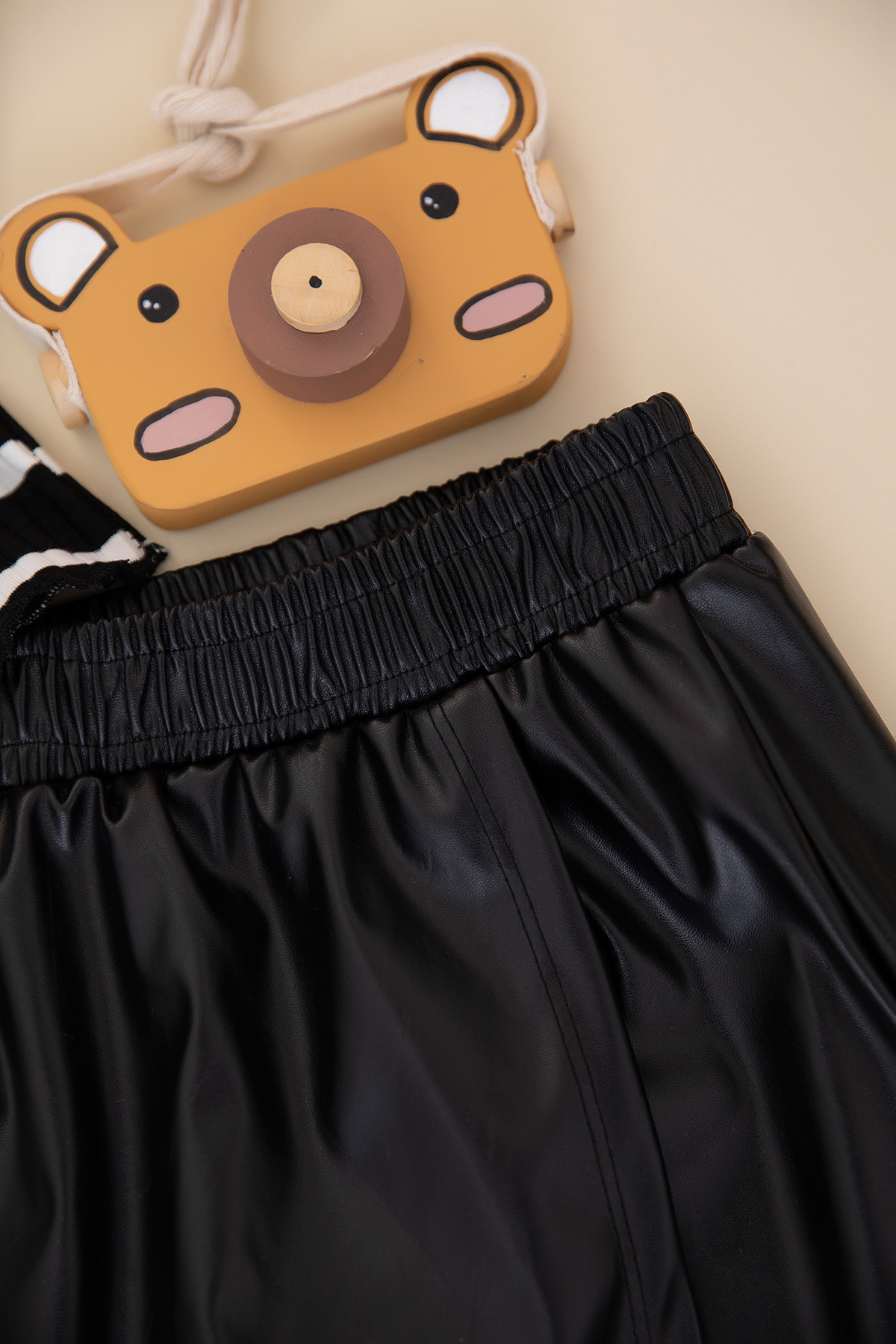 Kız Çocuk Çizgili Fiyonklu Deri Şort Etek Takım - 3776 (3-8 Yaş)