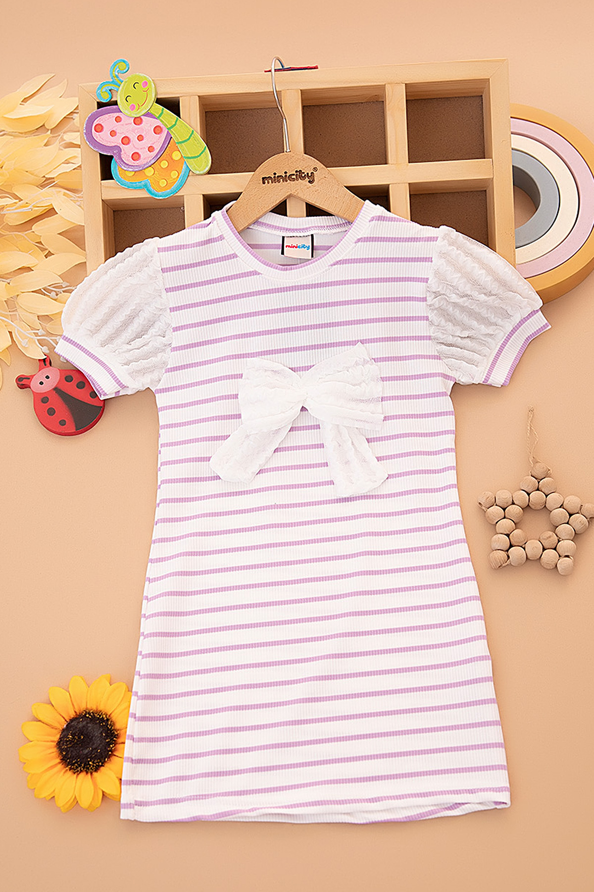 Kız Çocuk Çizgili Fiyonklu Elbise - 4025 (9-12 Yaş)