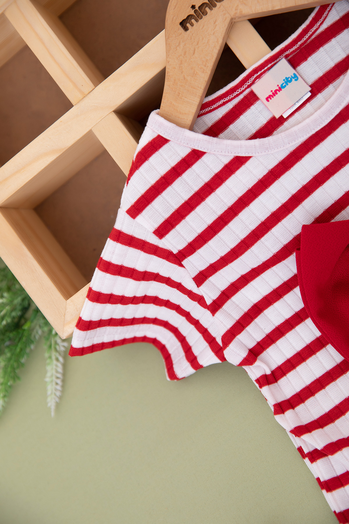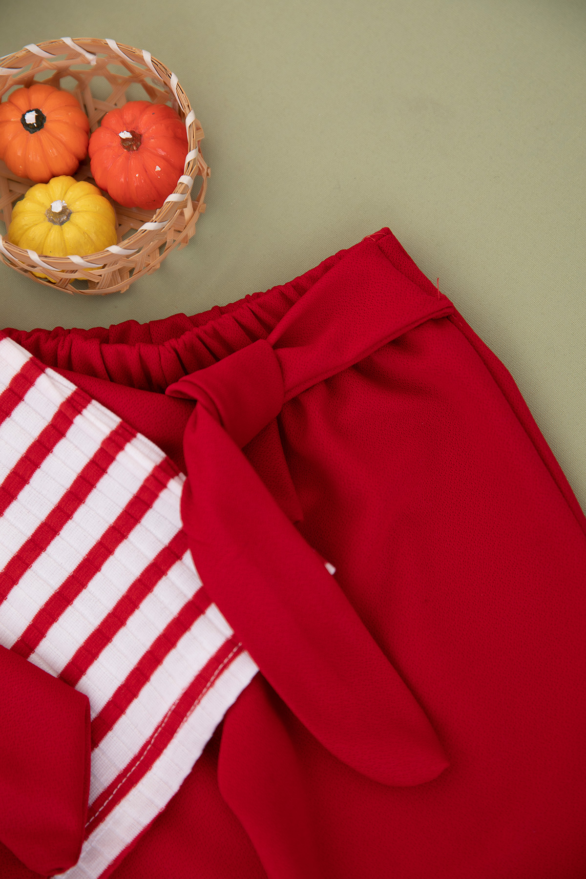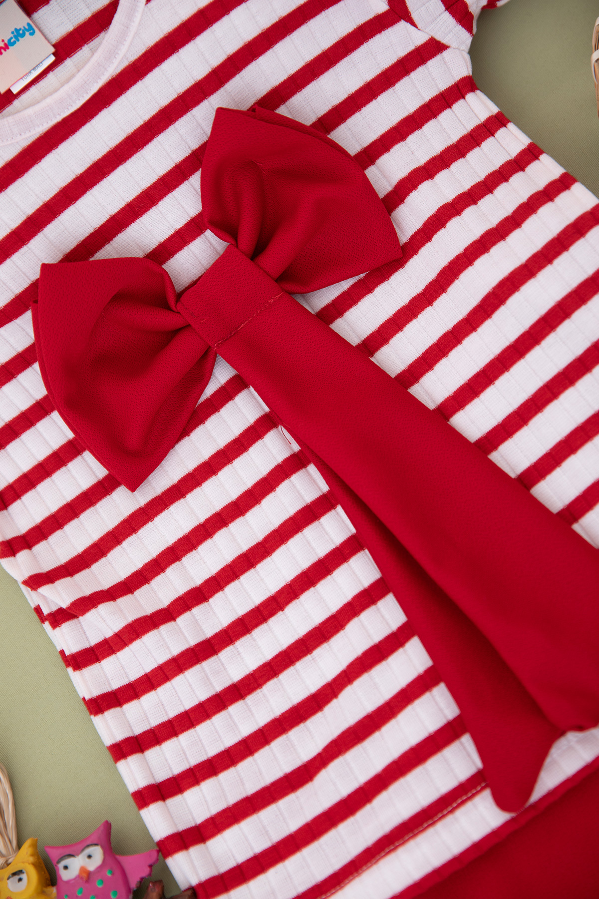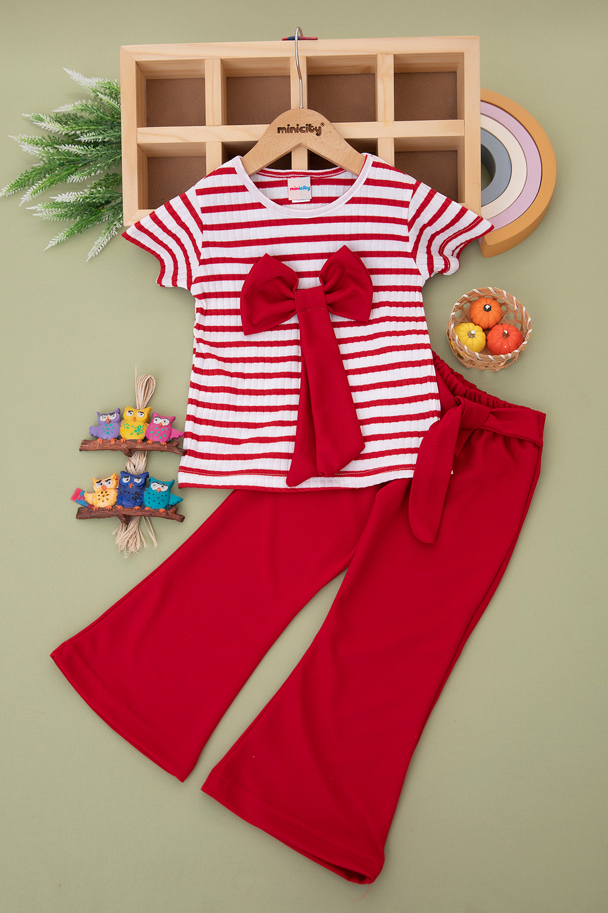 Kız Çocuk Çizgili Fiyonklu Pantolon Takım (3-7 Yaş)