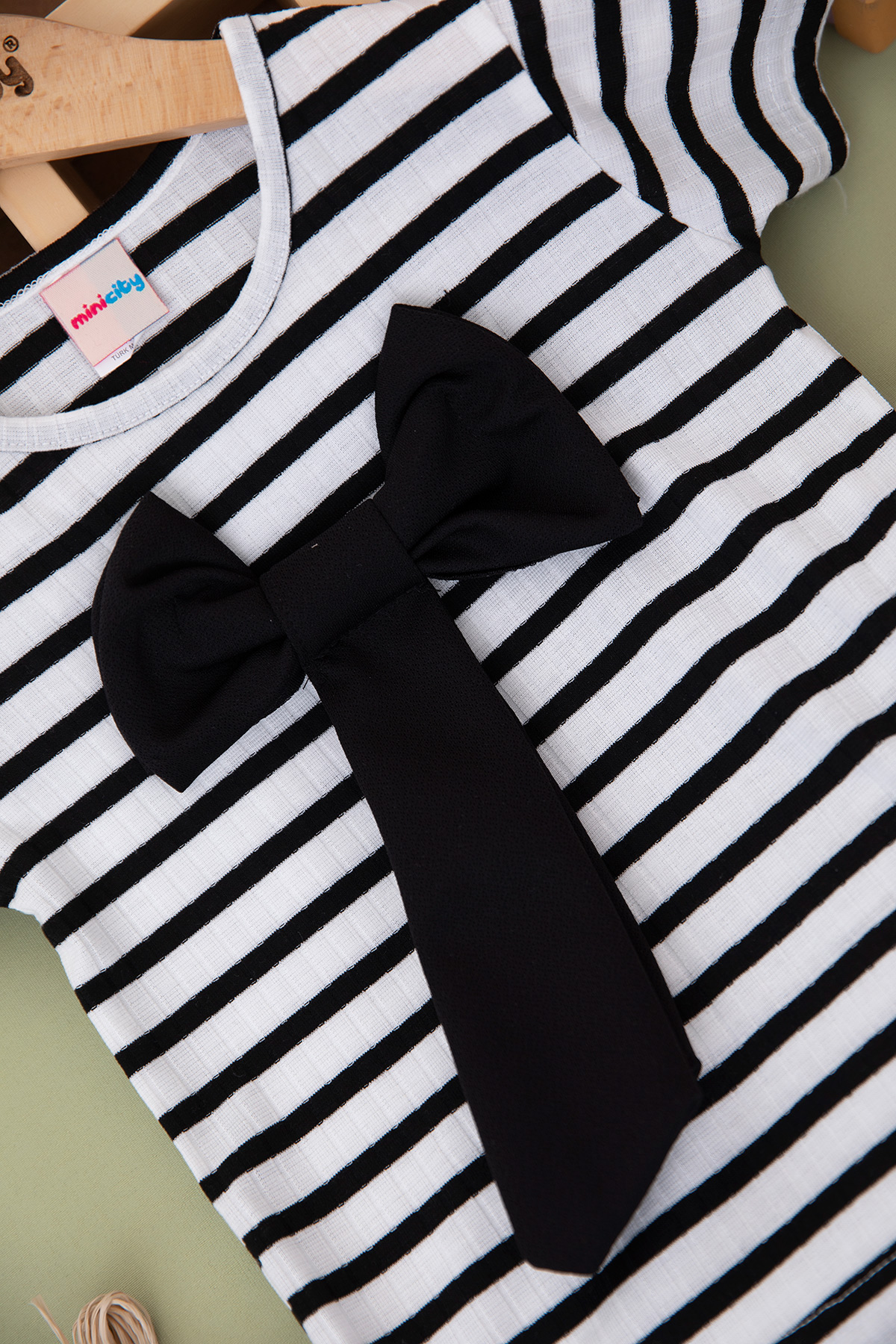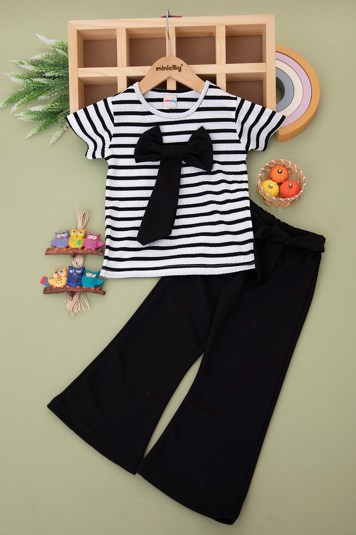 Kız Çocuk Çizgili Fiyonklu Pantolon Takım (3-7 Yaş)