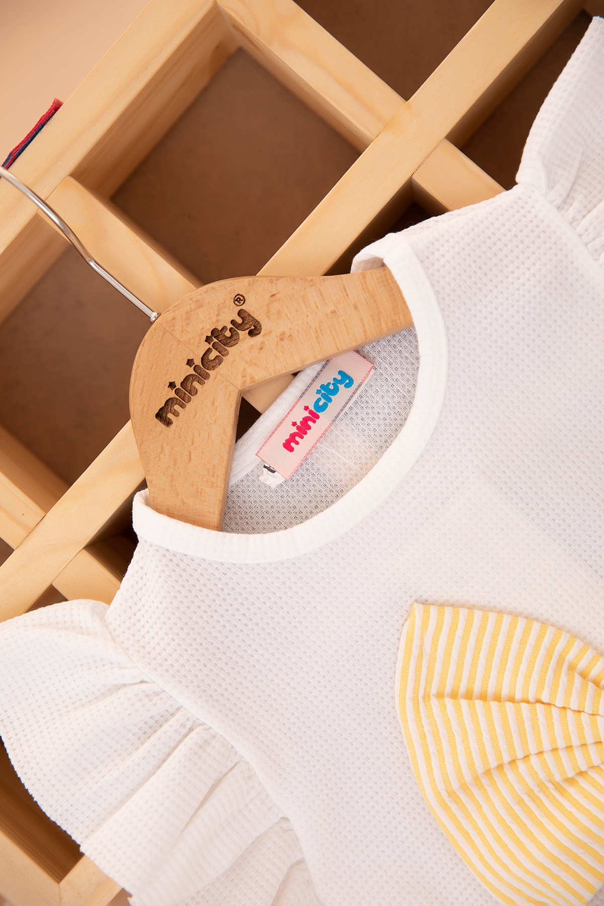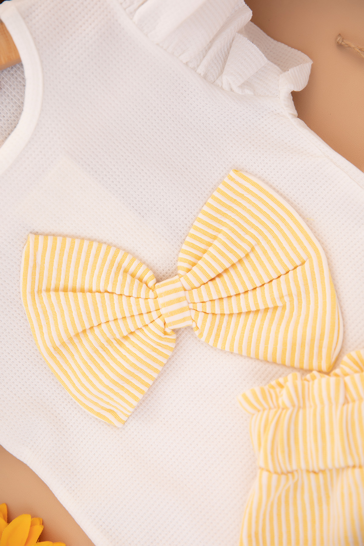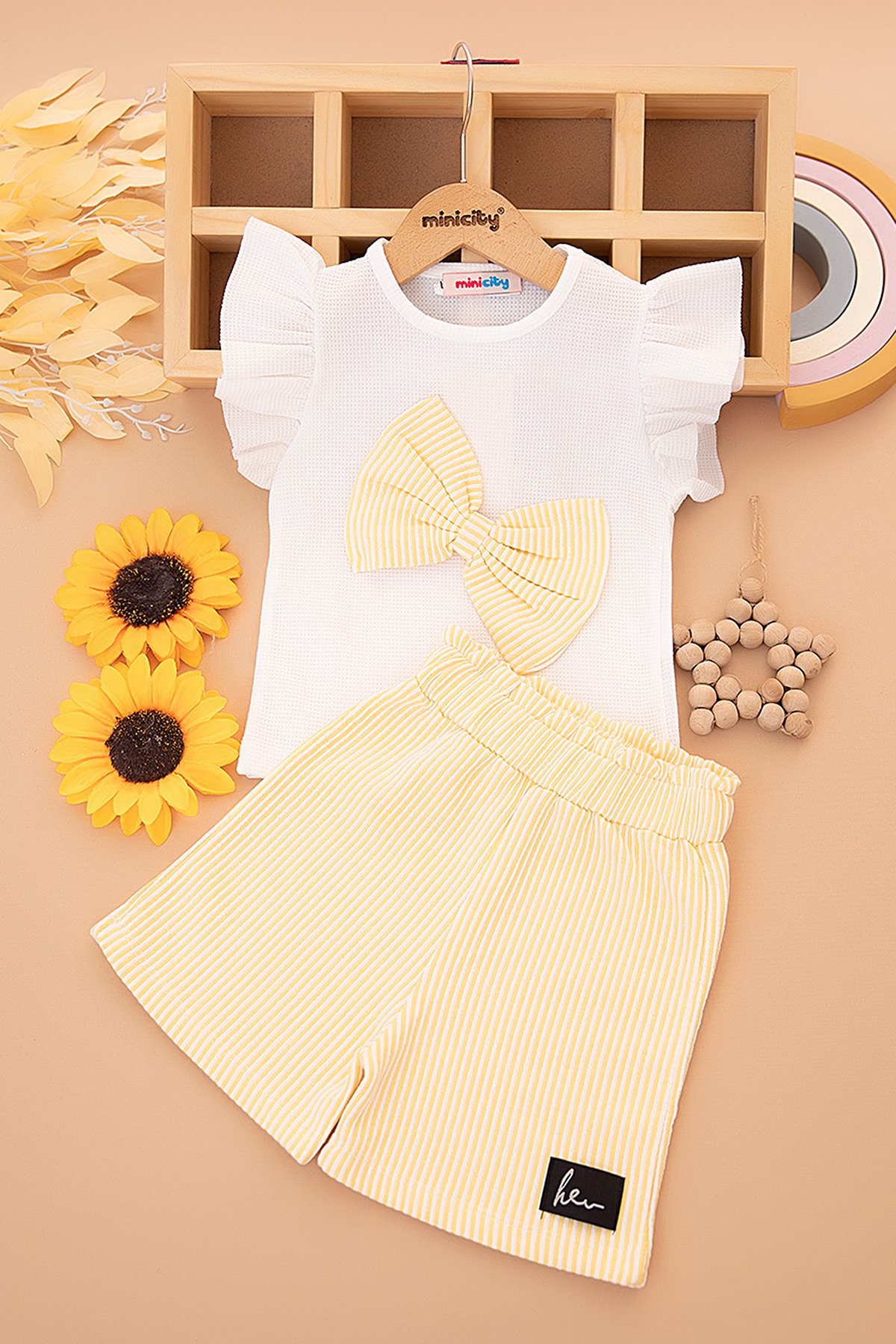Kız Çocuk Çizgili Fiyonklu Waffle Şortlu Takım - 5597 (3-12 Yaş)