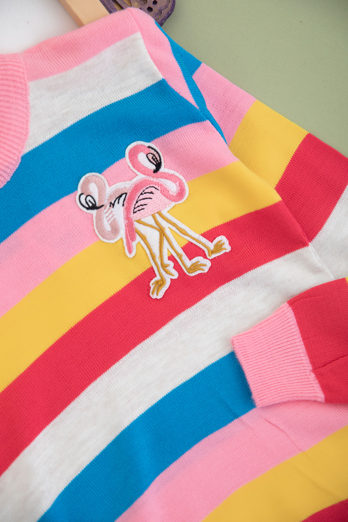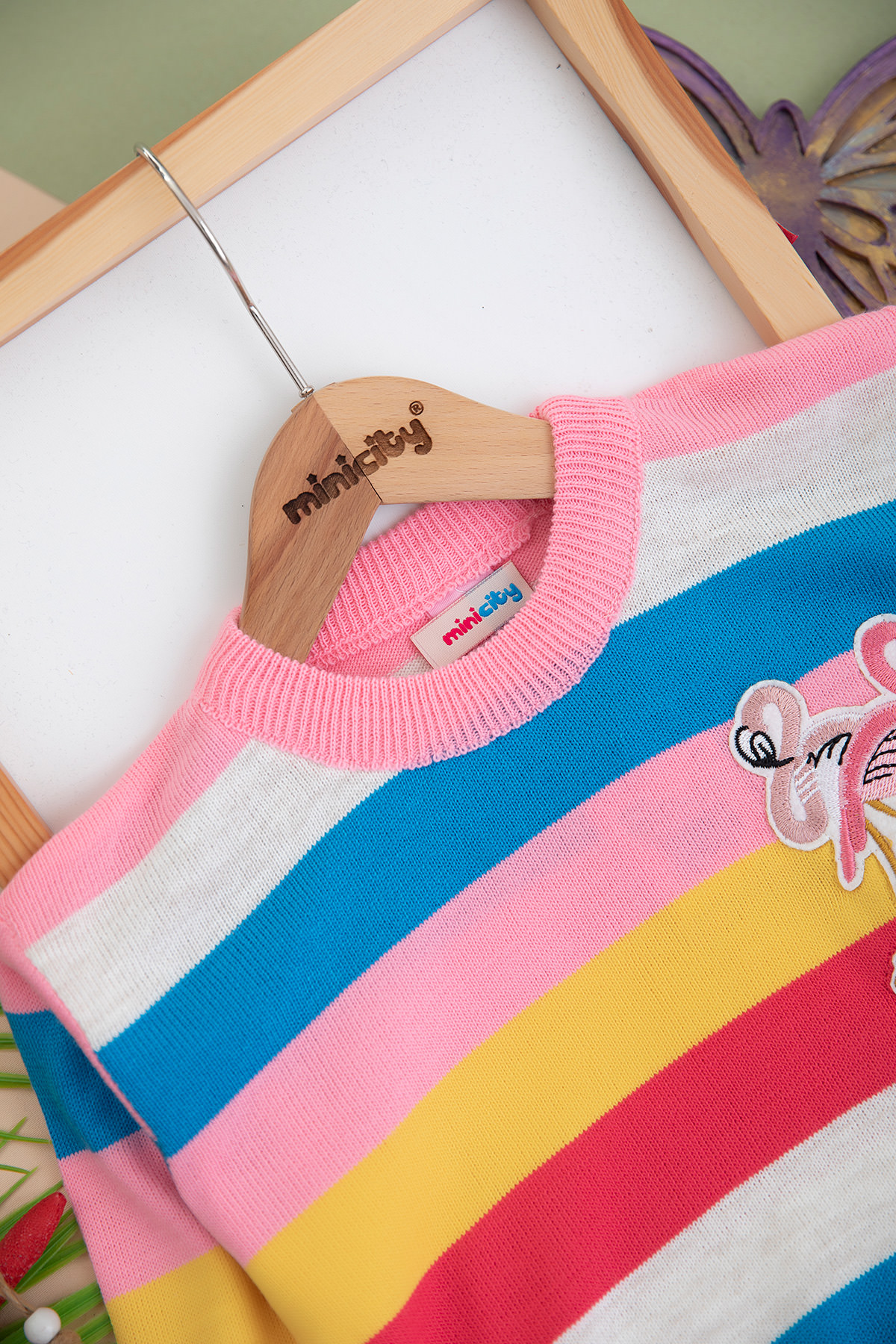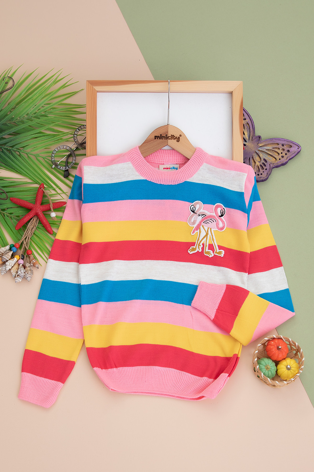Kız Çocuk Çizgili Flamingo Nakışlı Kazak - 2067 - 1033