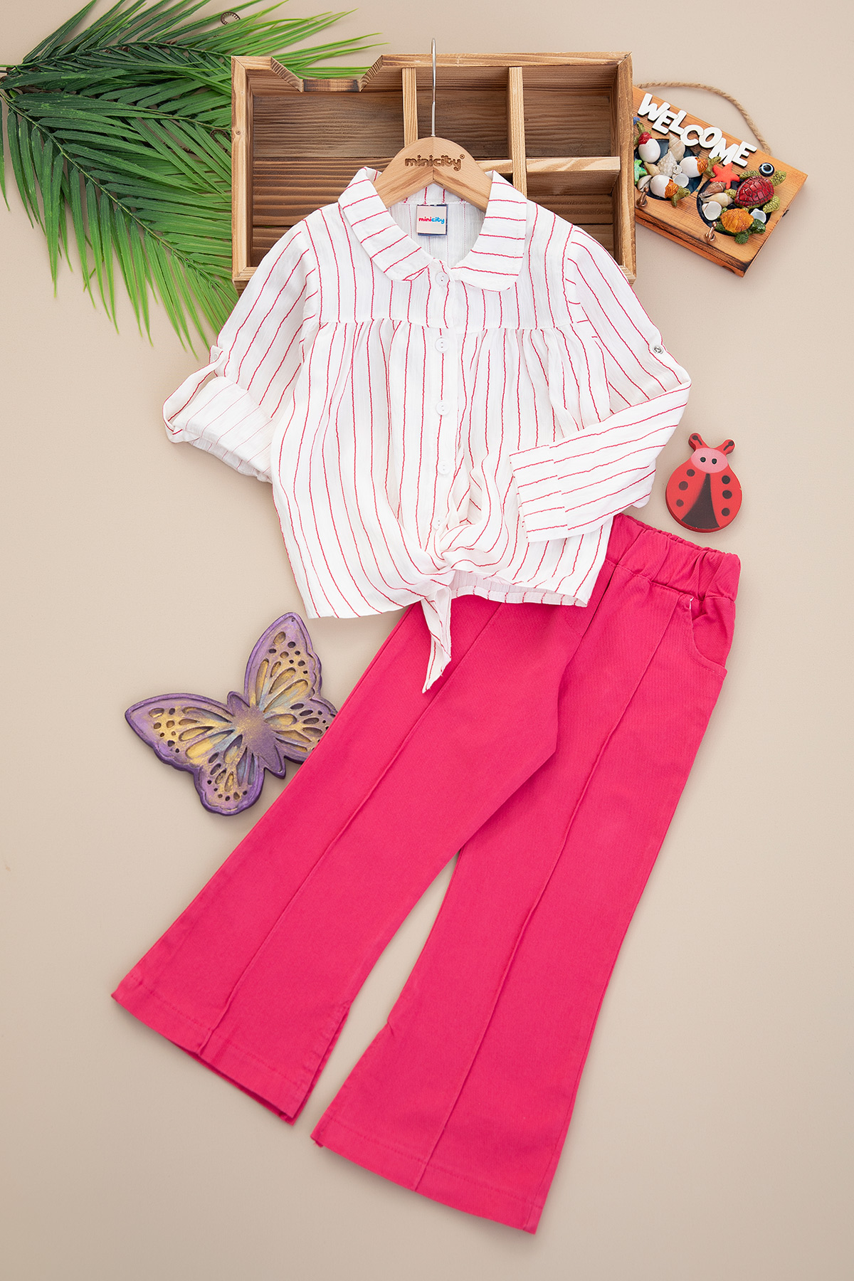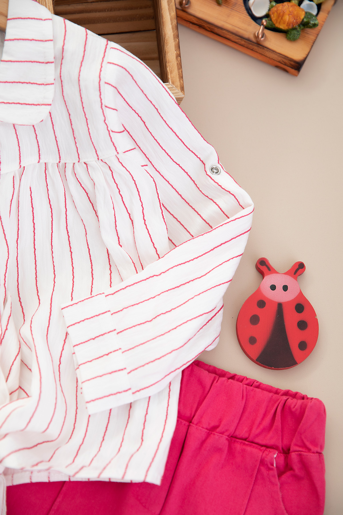 Kız Çocuk Çizgili Gömlek Dokuma Takım - 25104 (3-6 Yaş)
