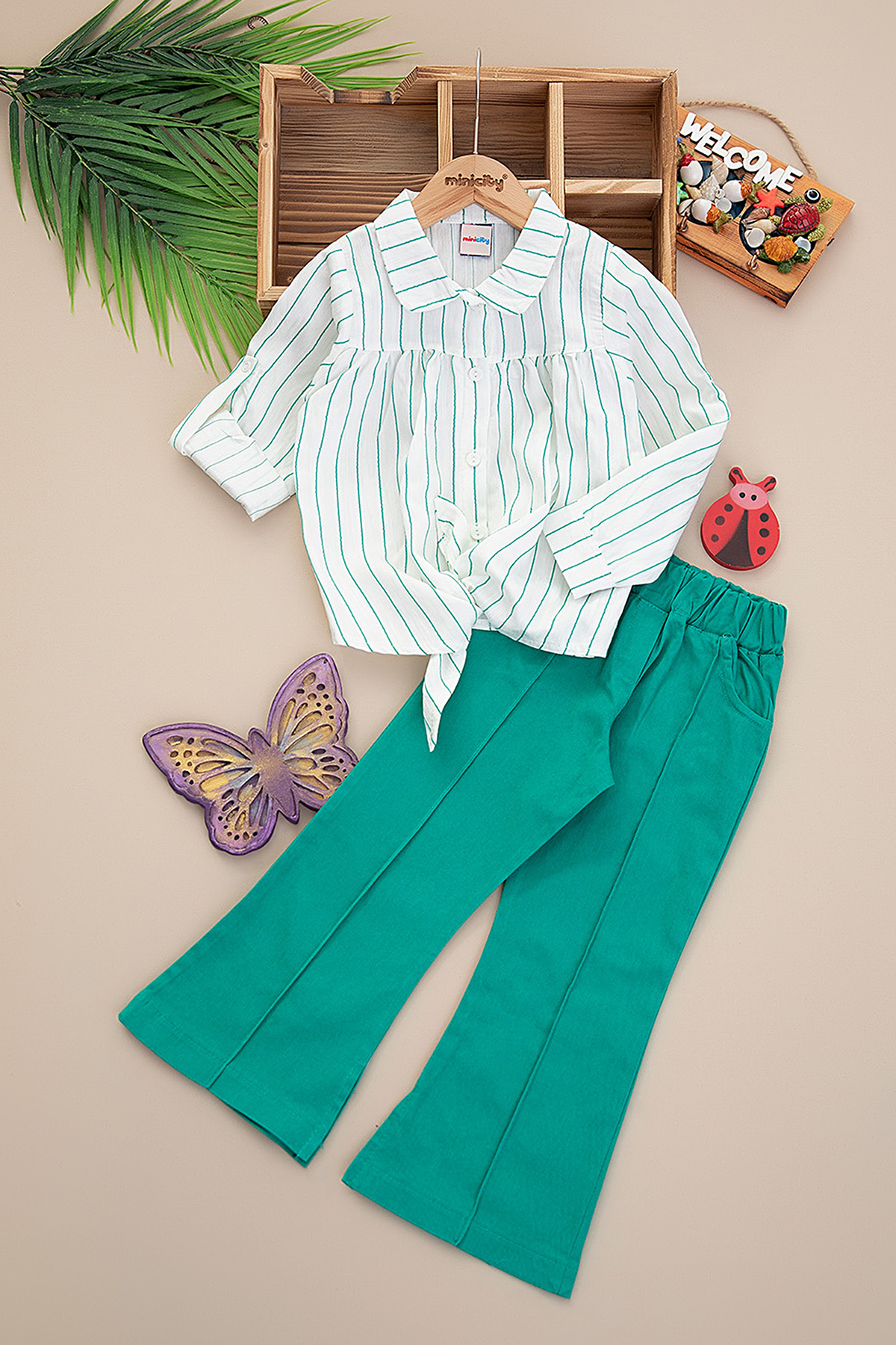 Kız Çocuk Çizgili Gömlek Dokuma Takım - 25104 (3-6 Yaş)