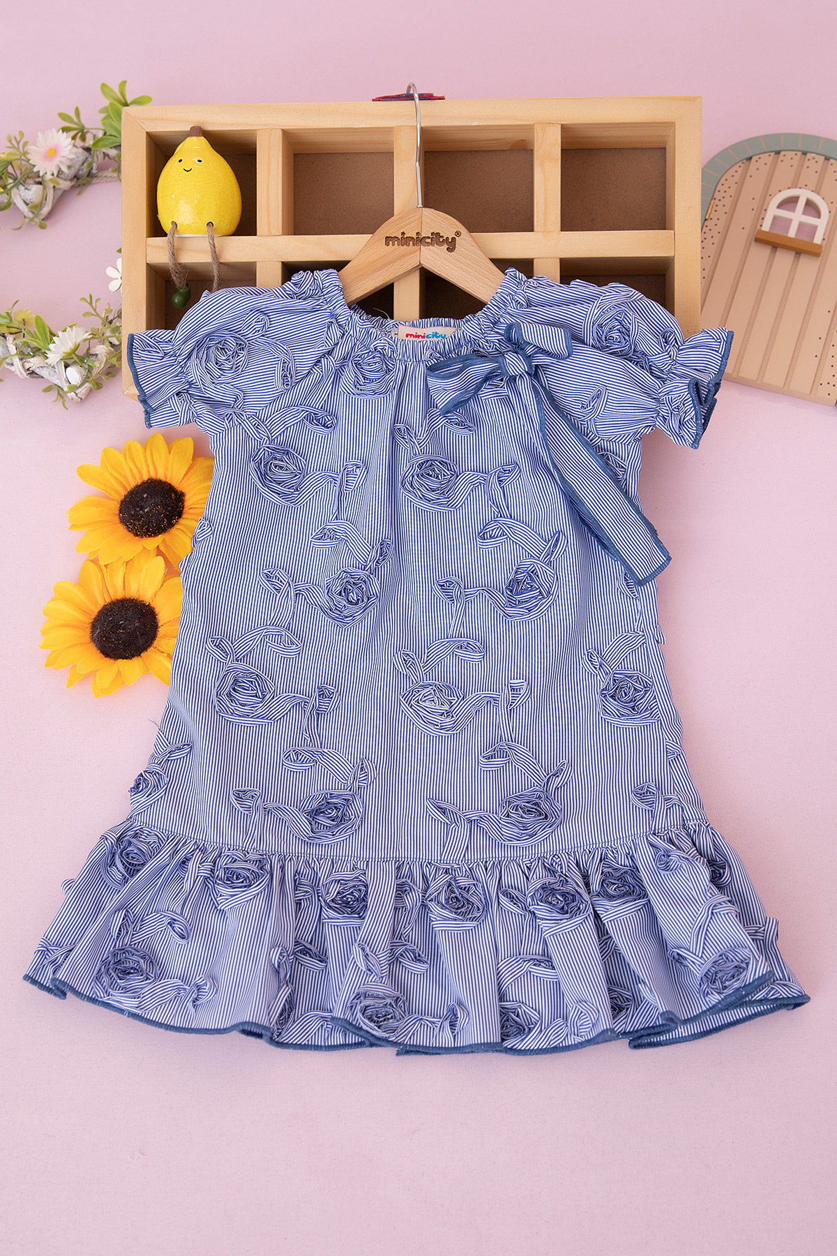 Kız Çocuk Çizgili Güllü Elbise - 380 (3-6 Yaş)