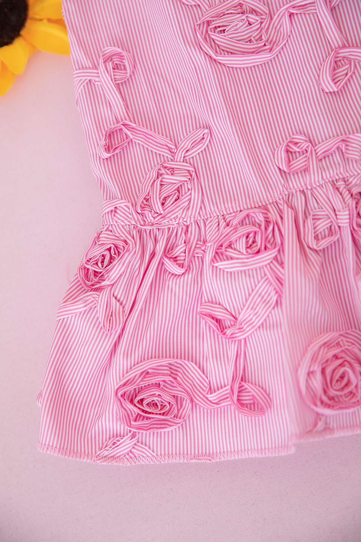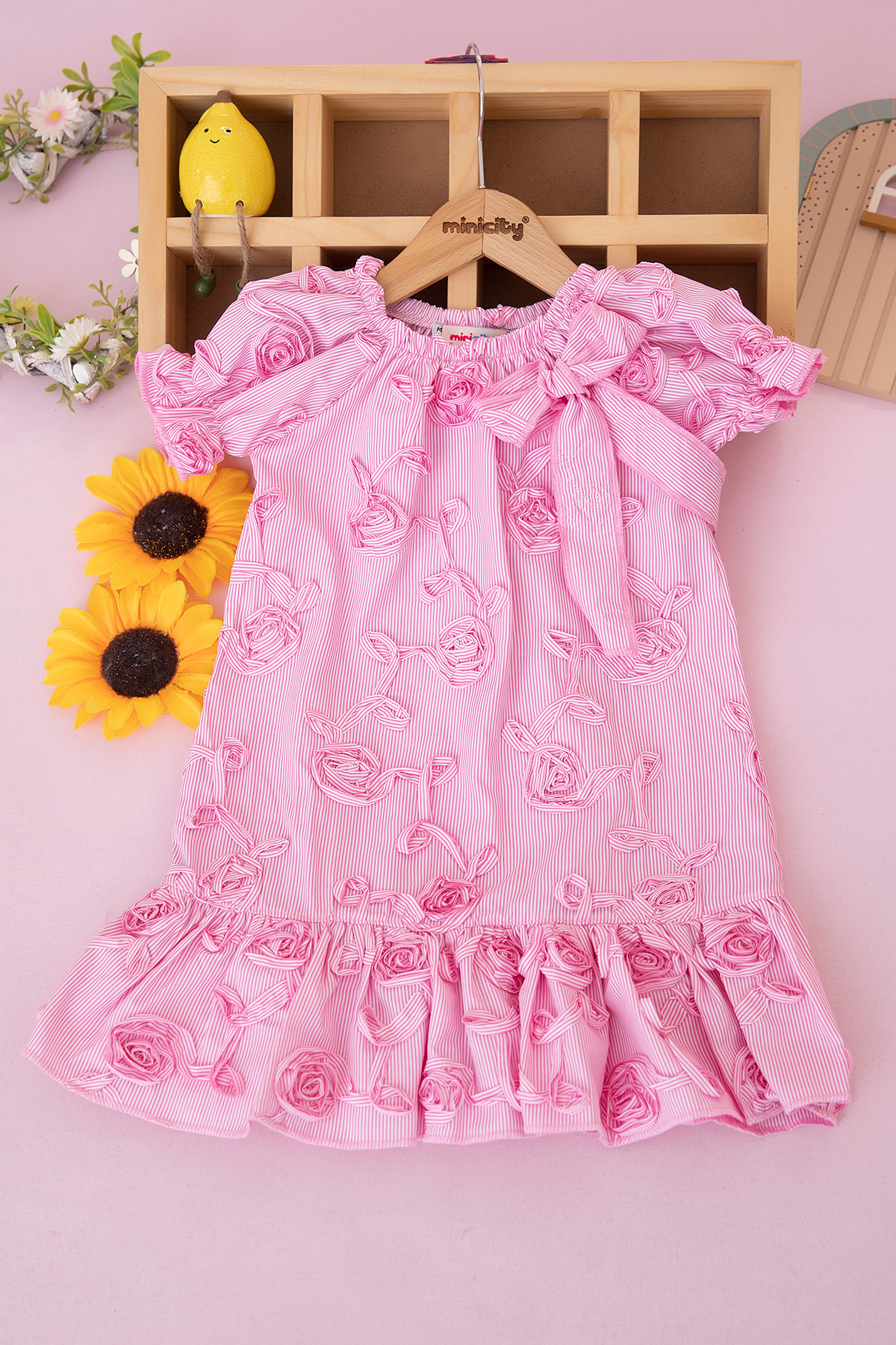 Kız Çocuk Çizgili Güllü Elbise - 381 (7-10 Yaş)