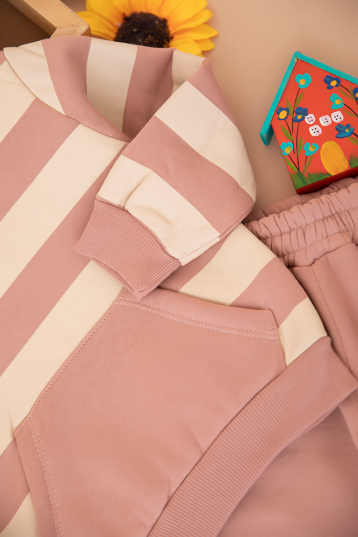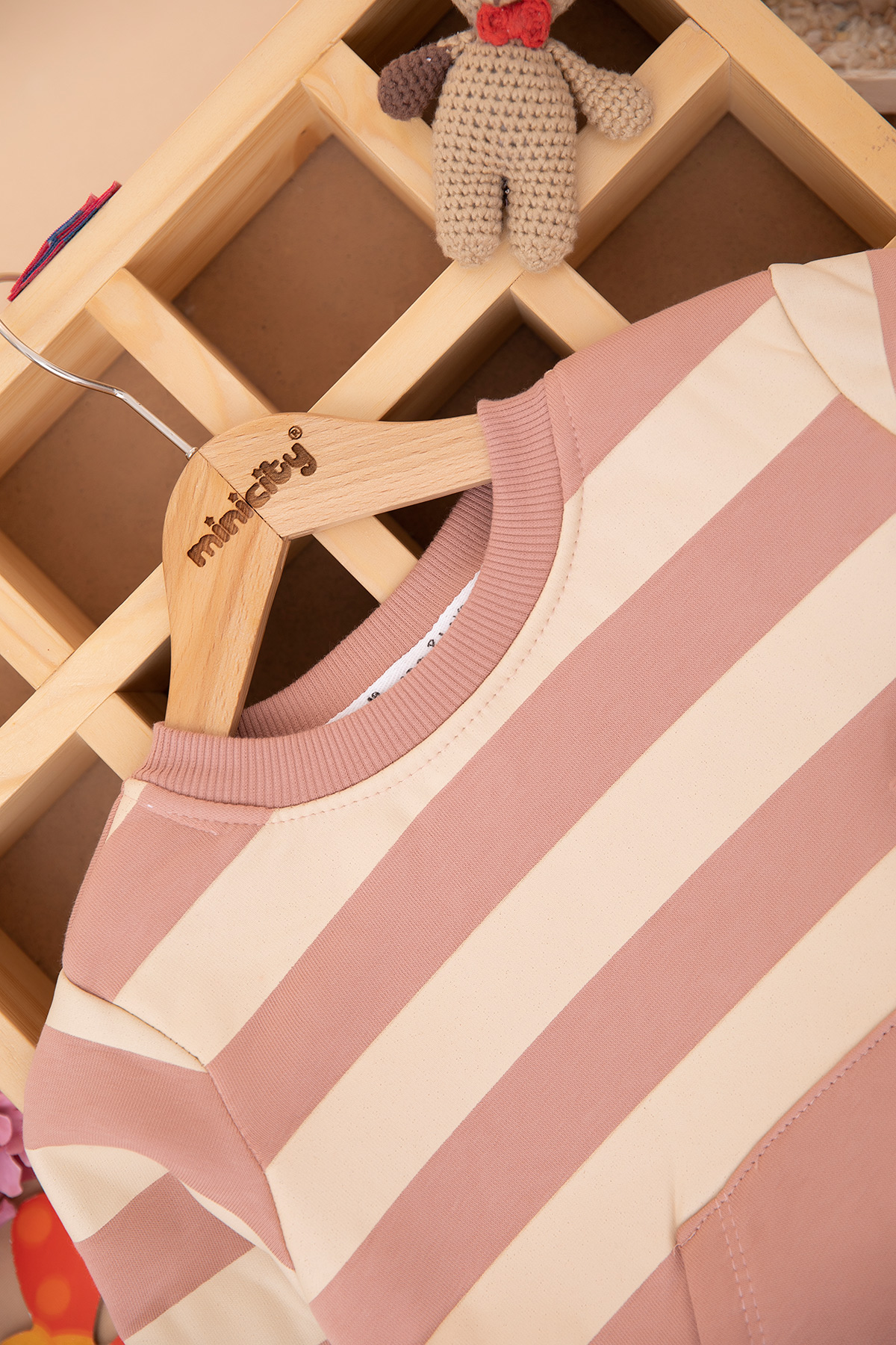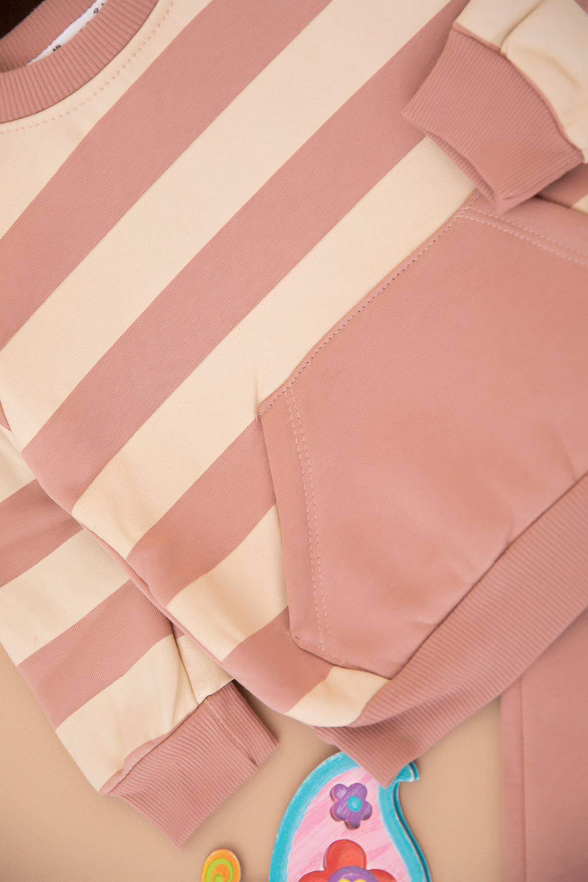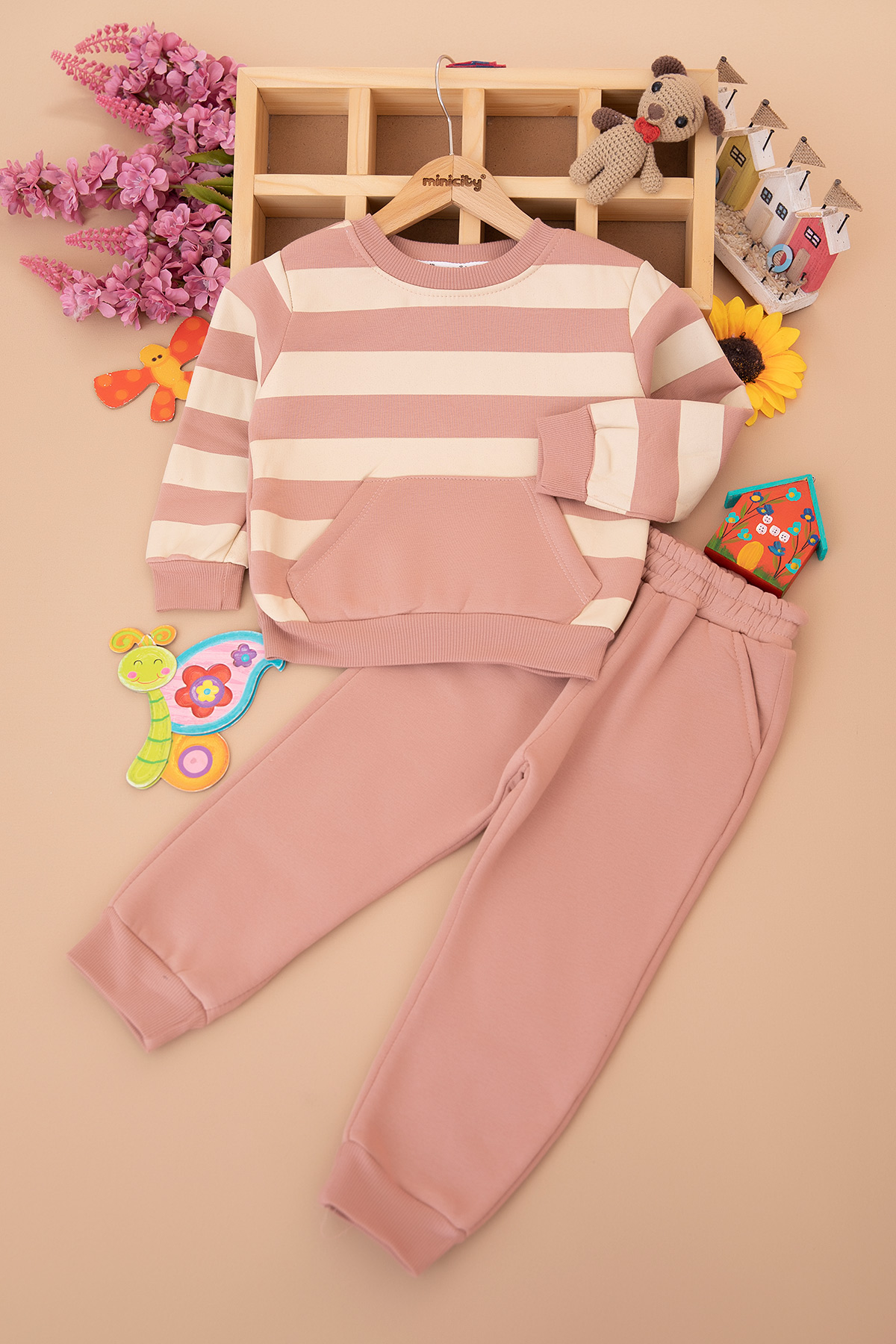 Kız Çocuk Çizgili Kanguru Cepli Üçip Takım - 60275 (2-5 Yaş)