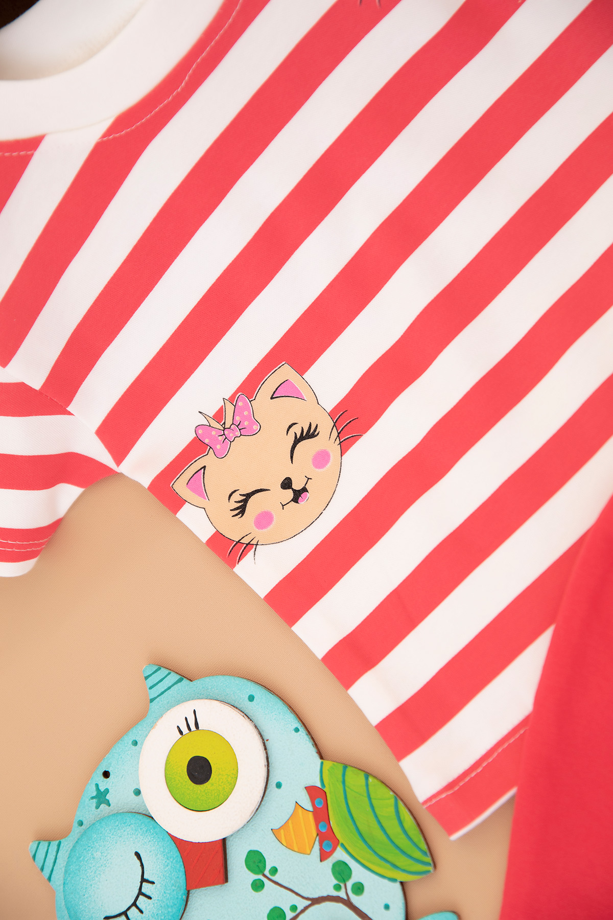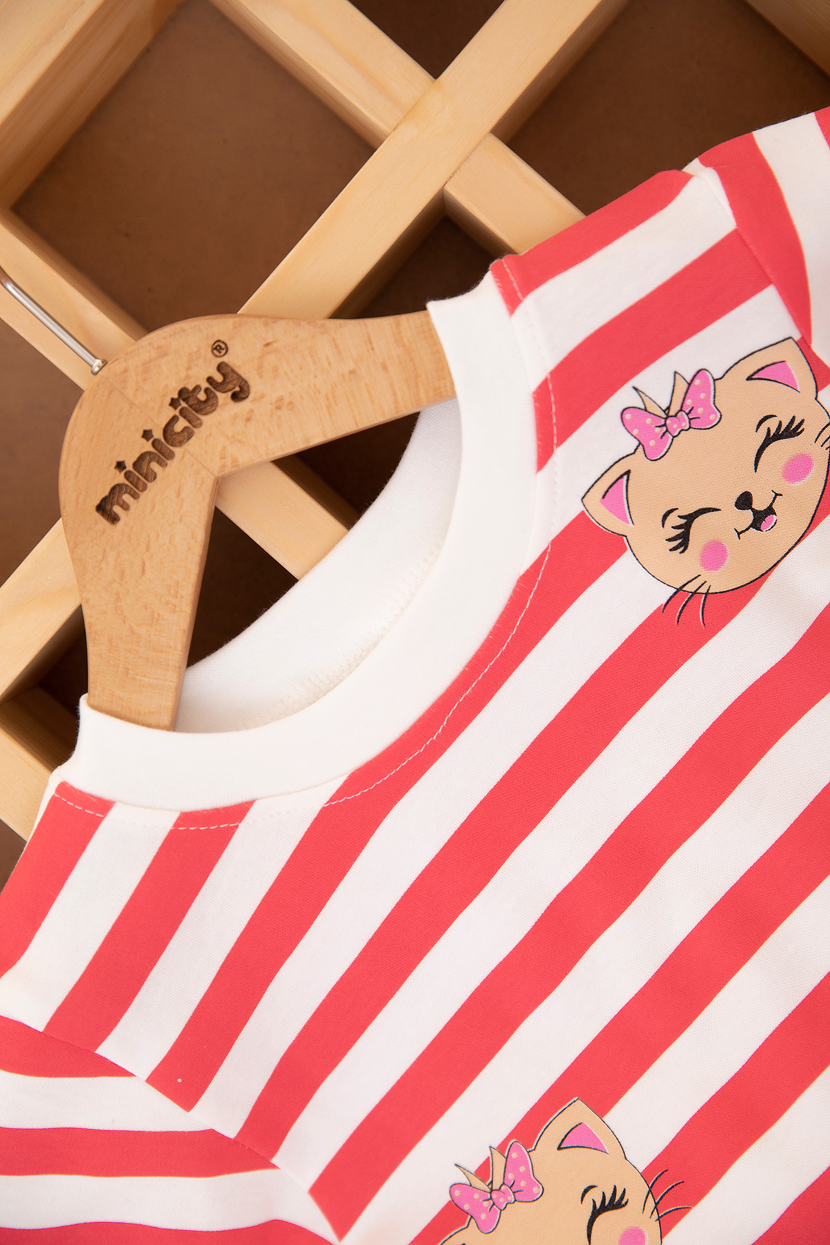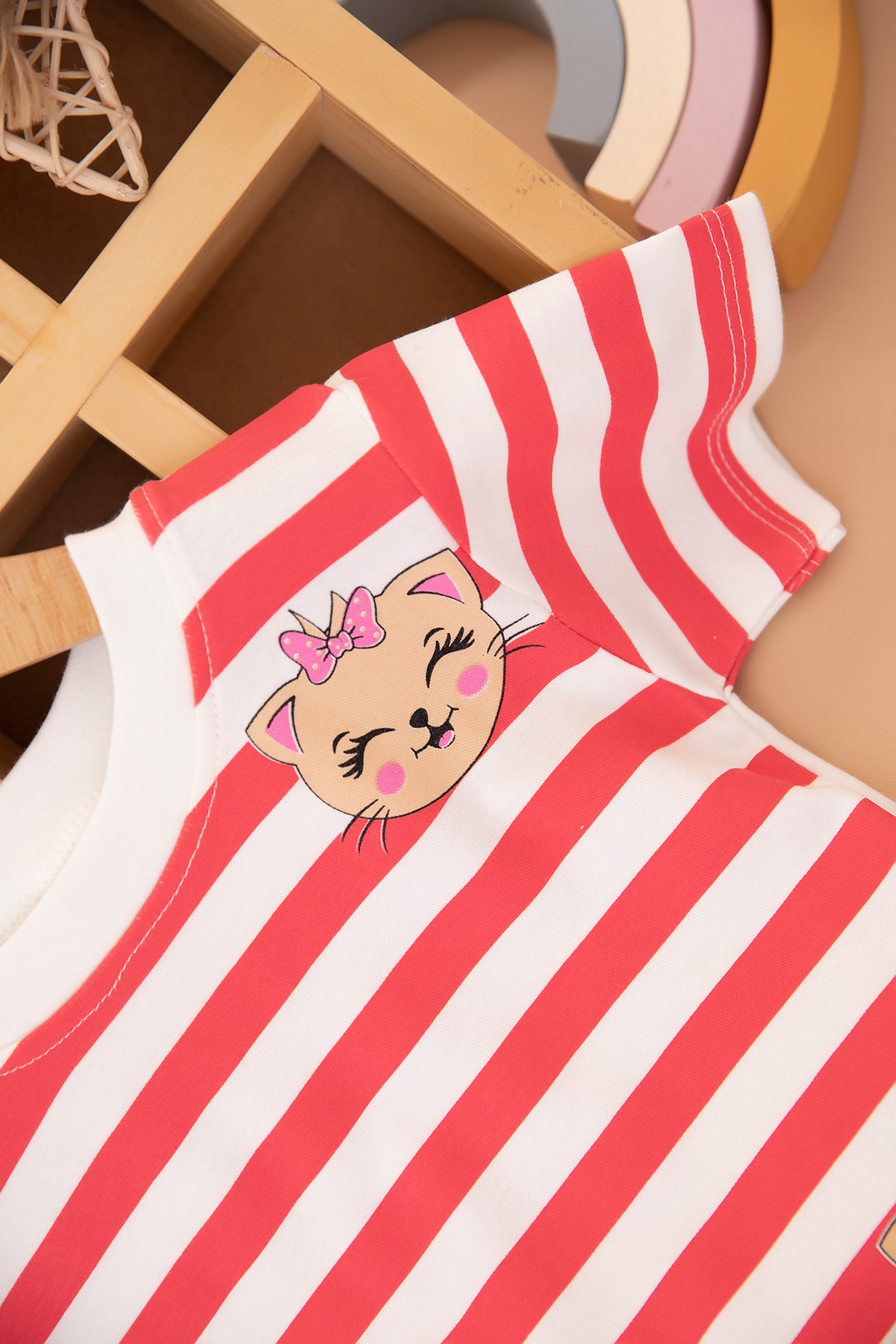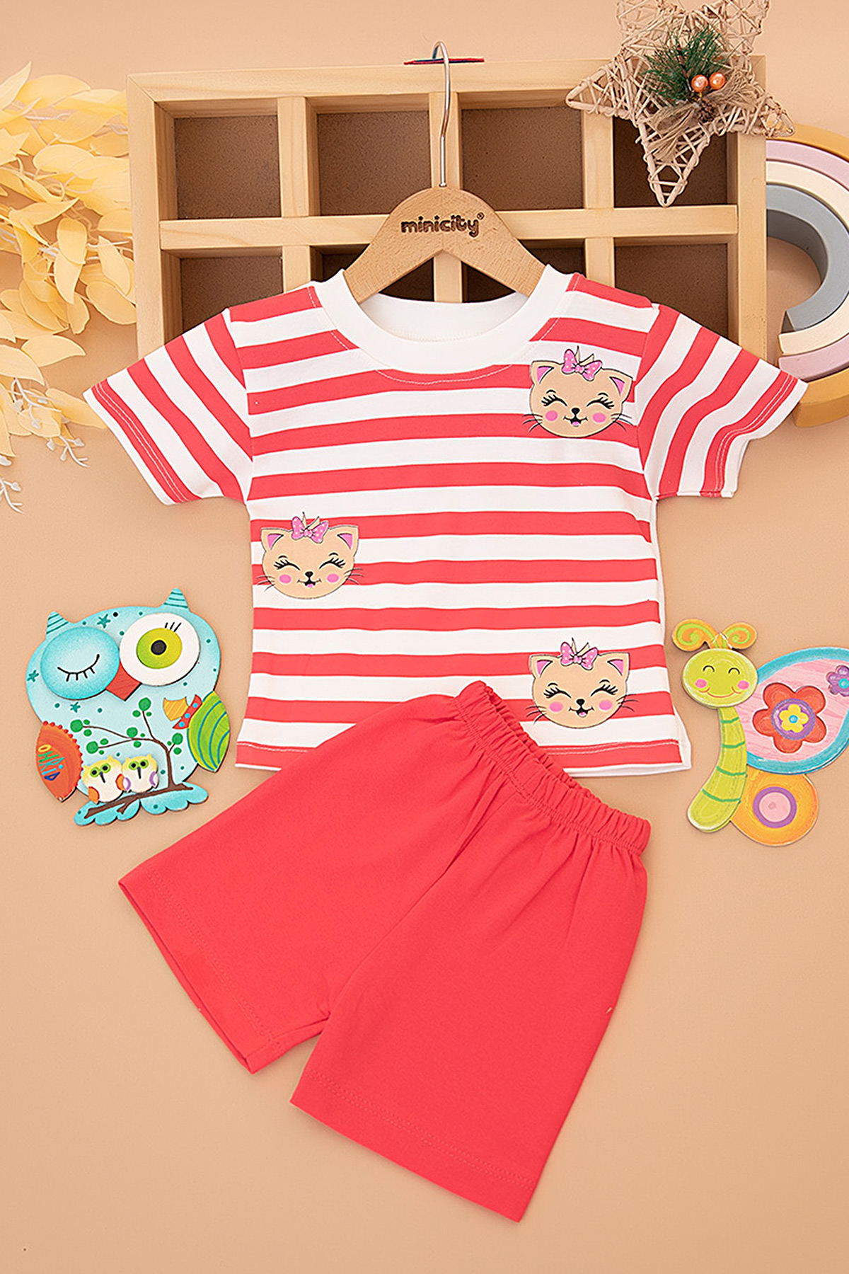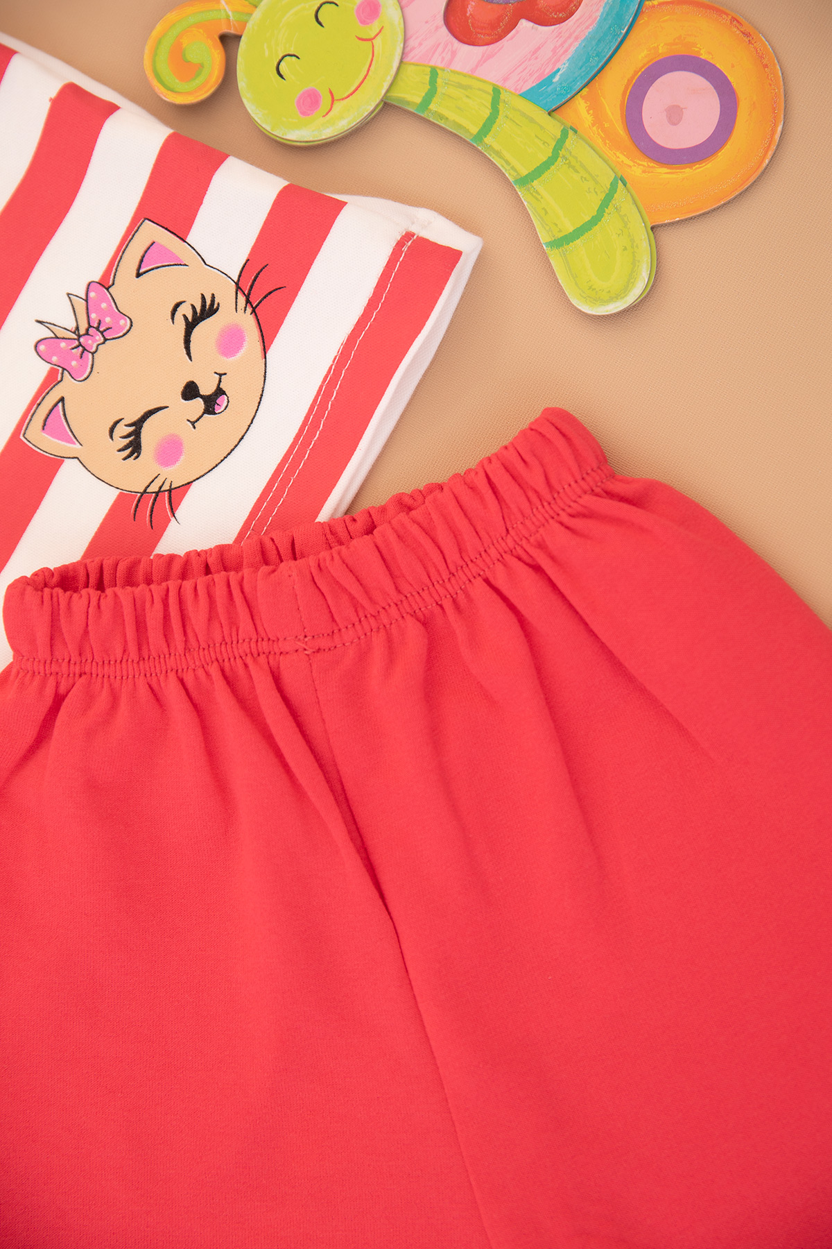 Kız Çocuk Çizgili Kedi Baskılı Şortlu Takım - 3023 (1-3 Yaş)